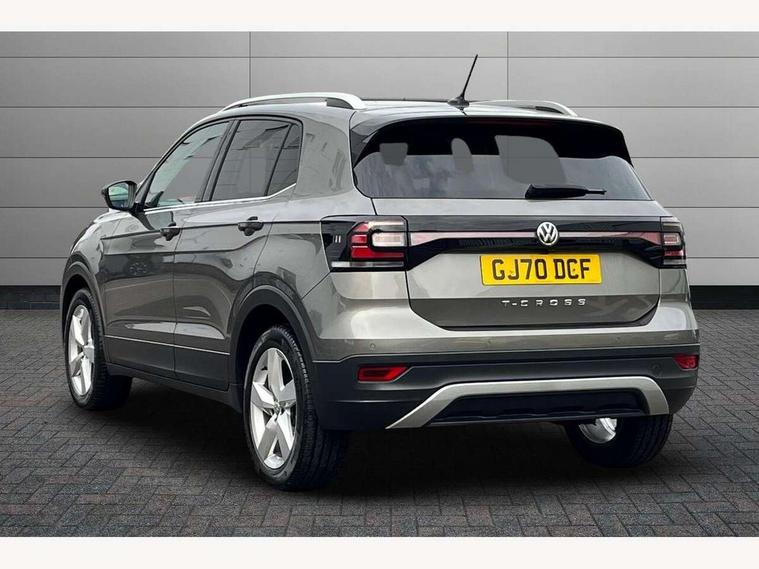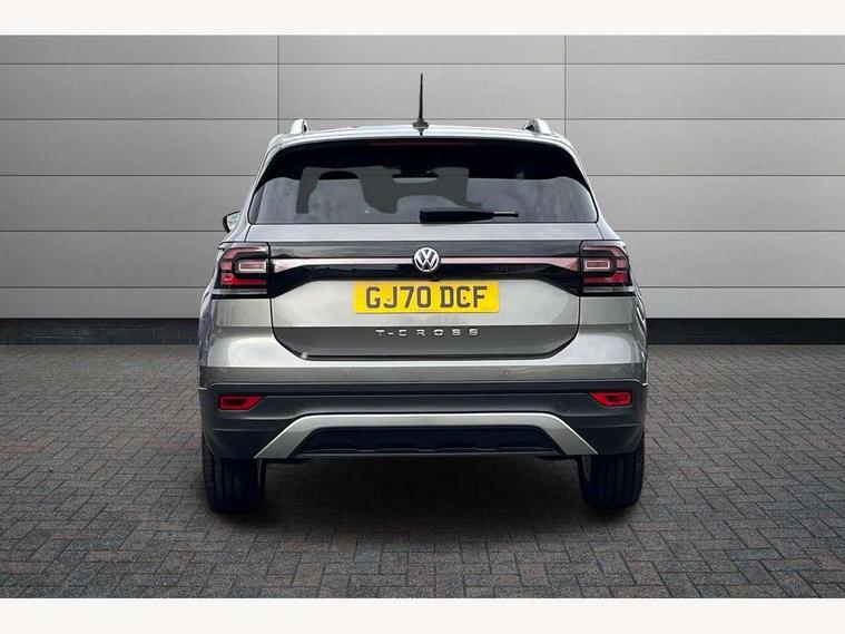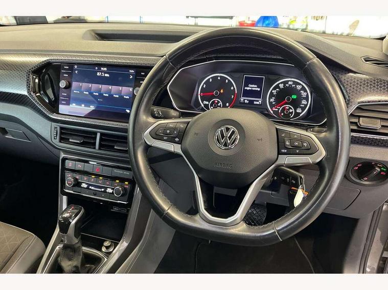 'Lights On' Reminder warning buzzer, Adaptive cruise control including front assist, forward collision warning, autonomous emergency braking, speed limiter, Discover media navigation system with 8" display including streaming and internet, Driver alert system, eCall emergency call system, Lane assist, Multifunction computer with visual gear change recommendation for fuel consumption, Power assisted speed sensitive steering, Speedo, rev counter, electronic odometer, trip, service interval display, exterior temperature and fuel gauge, Stop/start system, Warning sound and light for doors and tailgate open, Warning sound and light for front seatbelts unfastened, We Connect Go Dongle, Wireless Car net app connect with Apple CarPlay, combined functionality of Apple CarPlay/Android Auto and MirrorLink, Battery regeneration during braking, Misfuel prevention device, 2x USB connection with USB charging sockets and in rear centre console, Diversity antenna for FM reception, Premium USB cable for Apple or Android smartphone compatibility, Automatic dimming interior rear view mirror, Automatic hazard lights activation under emergency braking, Body colour door handles, Body coloured bumpers, Dusk sensor + automatic driving lights, Front and rear electric windows, Front fog lights with static cornering function, Galvanised body, Heated rear window, High level 3rd brake light, LED dipped and main beam headlights with automatic range adjustment including separate unique signature LED daytime running lights, Lower door sills and door pillars in black, Manual coming/automatic leaving home lighting function, Radiator grille with high gloss surface and chrome strip, Rain sensor, Rear lights incorporating LED technology, Rear window aerial, Rear windscreen washer and wiper with interval delay, Reflectors in all doors, Silver roof rails, Tailgate with integrated roof spoiler, Windscreen wipers/ intermittent wipe + 4 position delay, 12V Accessory socket in centre console, 2 Front and rear reading lights incorporating LED technology, 2 Zone electronic climate control with automatic air recirculation, 3 rear head restraints and 3 rear three point seat belts with ECE label, 60/40 split folding rear seat backrest, Drawer under drivers seat, Driver and front passenger sunvisor with vanity mirror, Driver's sunvisor with ticket holder, Dust and pollen filter, Front + rear carpet mats, Front centre armrest with storage compartment, Front seat back storage pockets, Glovebox, Heating and fresh air system with 4 stage blower, Height/reach adjust steering wheel, Instrument lighting white adjustable panel illumination, Interior light with delay, Isofix child seat preparation for 2 rear child seats, Luggage compartment cover, Luggage compartment lighting, Moveable and foldable Rear bench seat, Storage compartment in drivers and front passengers door, Variable boot floor, Composition Media infotainment system pack - T cross, Anti-lock Braking System (ABS) with Hydraulic Brake Assist (HBA), Automatic post collision braking system, Driver and front passenger safety-optimised head restraints, Drivers and Front Passengers airbags with front passengers airbag deactivation switch, ESC with EDL, ASR, EDTC and trailer stabilisation function, Extended and proactive pedestrian protection, Front and rear curtain airbags, Front seat side impact airbags, Height adjustable 3 point automatic front seatbelts with pretensioners, Hill start assist, Pre crash preventive occupant protection, Rigid safety cell with front and rear crumple zones, Tyre pressure loss indicator, Volkswagen roadside assistance, Alarm with interior protection and deactivation via infotainment system, Child security locks in rear doors, Remote tailgate unlocking using key fob,