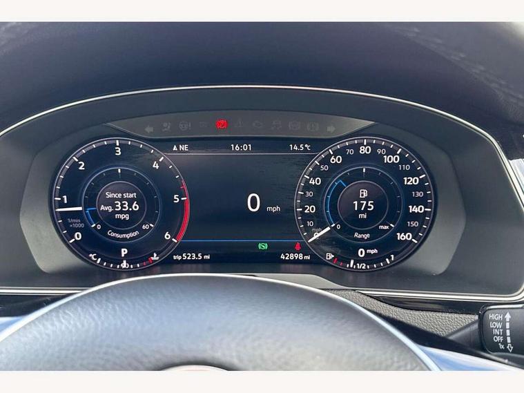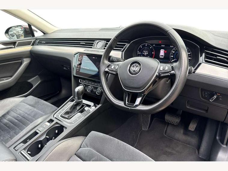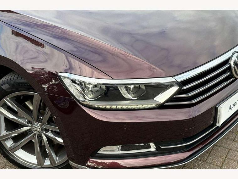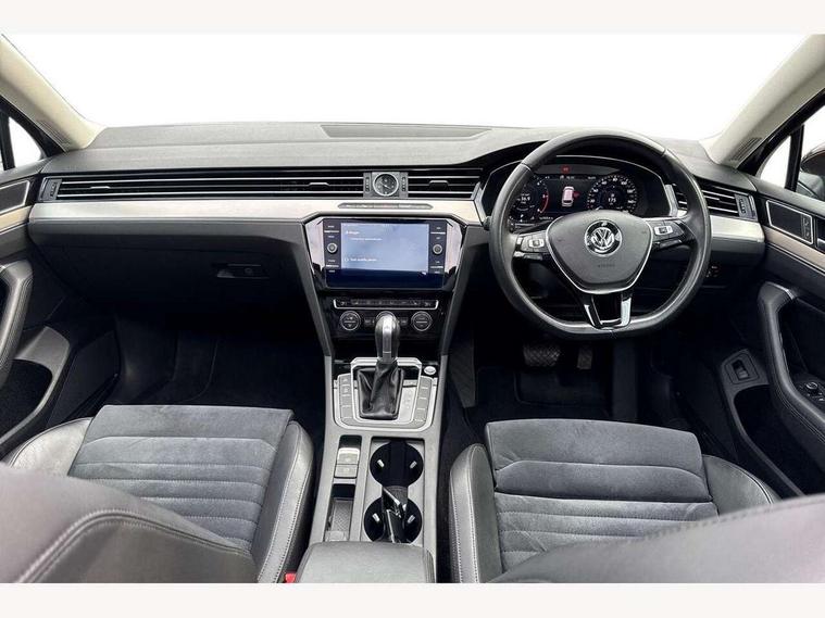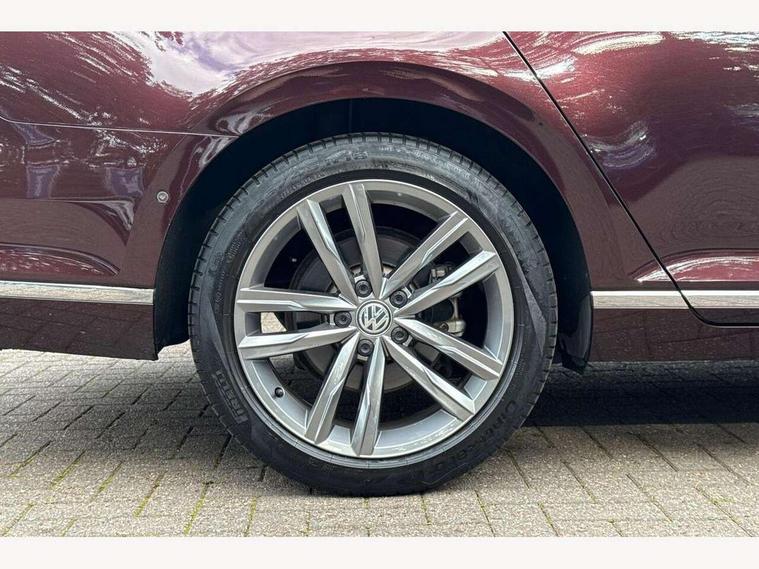 Adaptive cruise control, Analogue clock, App-Connect, Door/tailgate open warning lights, Driver alert system, Driver profile selection, Exterior temperature gauge with frost alarm, Information display, Low washer fluid warning light, Multifunction computer, Remote fuel flap release, Remote tailgate release, Rev counter with fuel gauge, Service interval indicator, Speed limiter, Warning buzzer and light for front seatbelts unfastened, Auxiliary socket for external device, Composition media system with Radio/CD/MP3, DAB Digital radio, MDI with USB/iPod connection cables, SD card slot, Auto dimming driver's door mirror, Auto dimming rear view mirror, Automatic activation of hazard warning lights, Automatic coming/leaving home lighting function, Automatic headlights with dusk sensor, Body colour bumpers, Body colour door handles, Body coloured door mirrors, Chrome fog light surround, Chrome louvres in grille, Chrome side sills, Chrome side window surrounds, Chrome surround for air intake, Electric front windows, Electric panoramic sunroof with sunblind, Electric rear windows, Electrically adjustable and heated door mirrors, Fully galvanised body, Gloss black finish on B pillar, Headlight range control, Heated rear window, LED rear lights, LED rear number plate lights, Load sill protection, Rain sensor, Rear wiper, Reverse activated kerb-view adjustment on passenger's door mirror, Silver roof rails, Trailer stability assist, Windscreen wipers/ intermittent wipe + 4 position delay, 12V Accessory socket in centre console, 12V socket in luggage compartment, 3 rear head restraints, 3 spoke multi-function leather steering wheel, 3 spoke multifunction leather steering wheel including paddle shift, 3 Zone electronic climate control with automatic air recirculation, 4 boot load lashing points, 40:20:40 split folding rear bench seat, Driver's cushion tilt adjust, Entry lights on doors, Front + rear carpet mats, Front and rear interior lighting with delay and dimming function, Front centre armrest with storage compartment, Front comfort seats, Front cupholders x2 with covers, Front door pocket bottle holders, Height adjustable head restraints, Height/reach adjust steering wheel, Leather gearknob, Load through provision, Lockable, illuminated, cooled glovebox, Luggage compartment cover, removable, Luggage compartment lighting, Rear centre armrest with cupholder and storage, Storage compartment in driver's door, Storage compartment in passenger's door, Storage compartment in rear doors, Storage compartment in roof console, Storage pockets in backrests of front seats, Sunvisors with illuminated vanity mirrors, Variable boot floor, Winter pack - Passat - heated front seats, 3 rear 3 point seatbelts, ABS, brake assist and EBD, Automatic post collision braking, Curtain airbags, Door open warning reflectors, Driver/Front Passenger airbags, Driver/Front passenger WOKS head restraints, Drivers knee airbag, Electronic parking brake with auto hold, ESP with EDL + ASR, First aid kit, Front assist including city emergency braking, Front side airbags, Height adjustable front 3 point seatbelts + pretensioners, Hill hold function, Passenger airbag deactivation system, Pre crash system, Rear seatbelt warning indicator, Rear side airbags, Warning triangle, Alarm with interior protection, Electronic engine immobiliser, Keyless Start, Remote central locking with 2 remote folding keys, Chrome air vent and instrument surround, White instrument dials,
