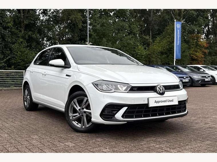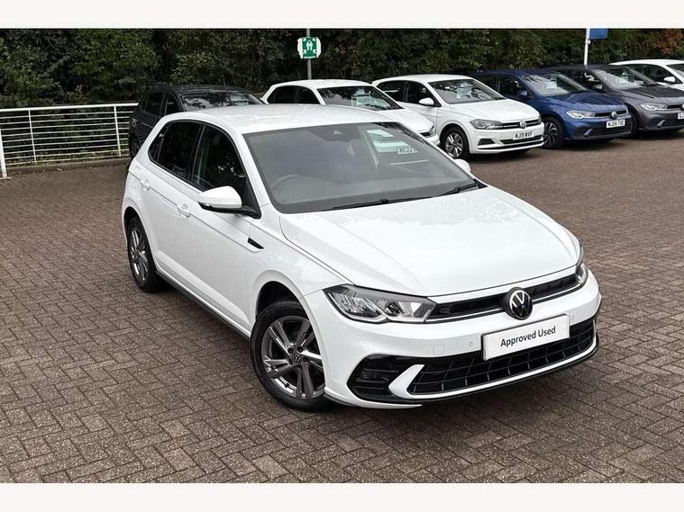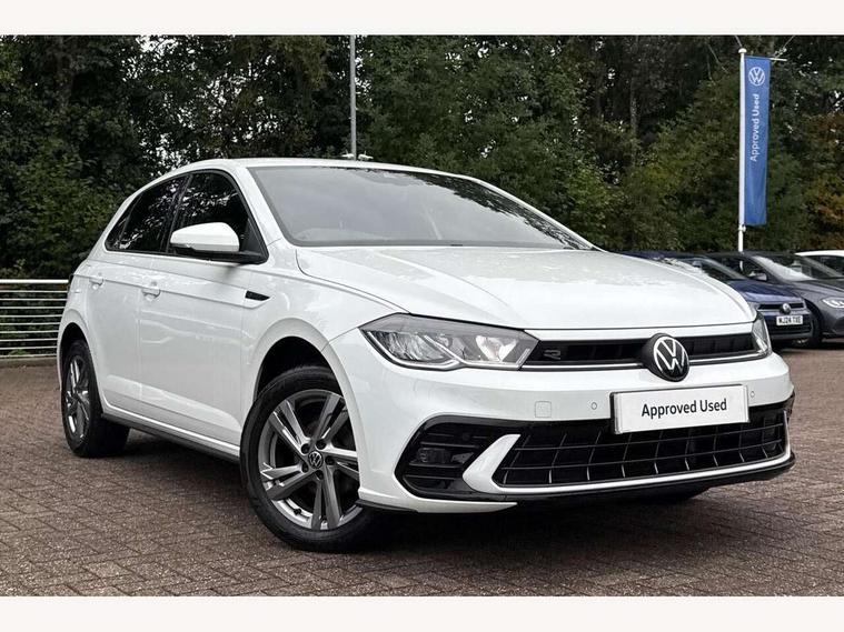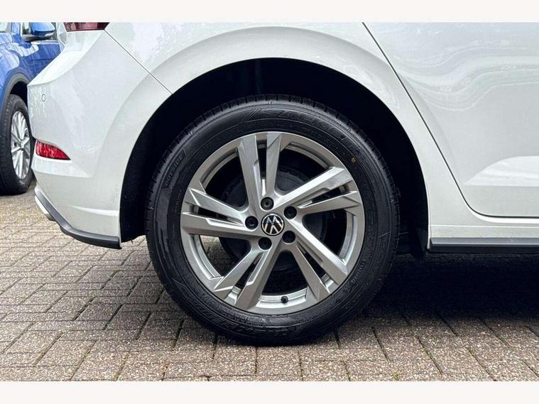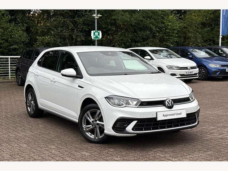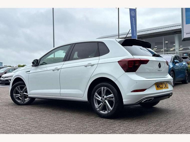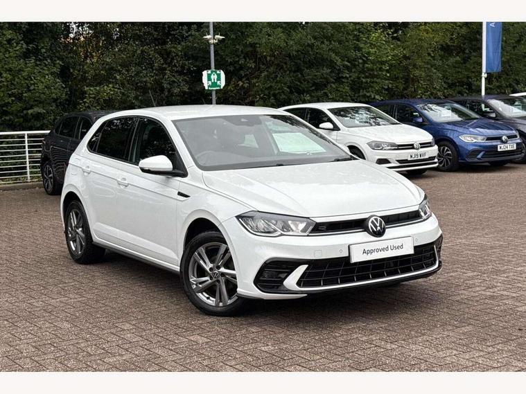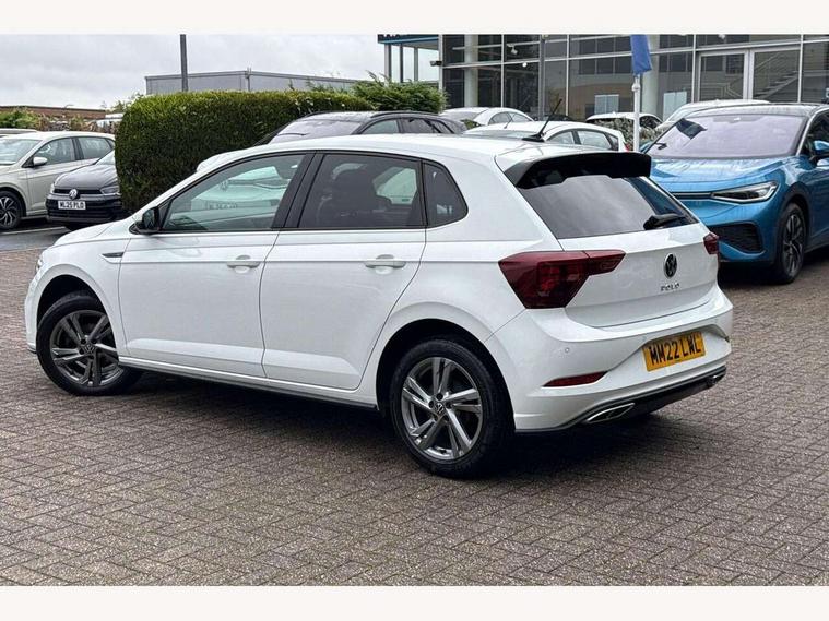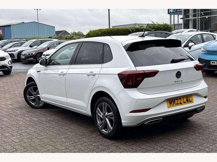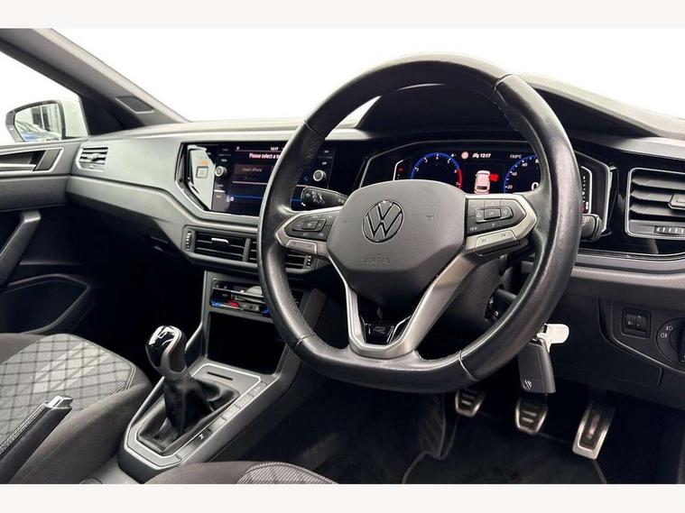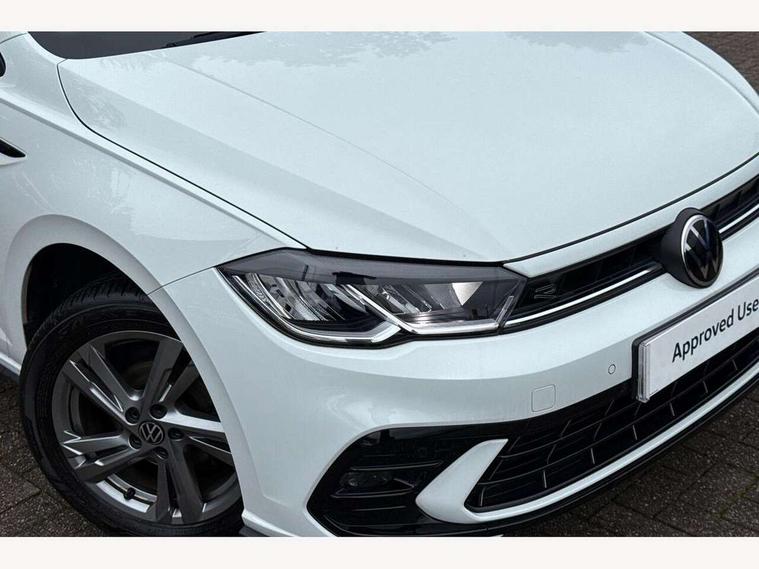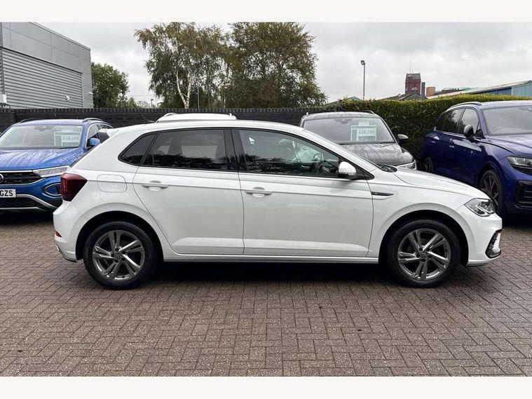 Adaptive cruise control without follow-to-stop and speed limiter, Bluetooth mobile phone interface, Digital Cockpit Pro with 10.25" Display, Driver alert system, Dynamic road sign display, Emergency call service, Power assisted speed sensitive steering, Preparation for We connect and We connect plus, Speedo and rev counter, electronic odometer, trip, service interval display and fuel gauge, Standard rear axle, Travel Assist - Lane keeping system and traffic jam assist, Travel assist including emergency assist, Trip computer, Warning signal and warning light for front and rear seatbelts not fastened, Washer fluid level indicator, Wireless app connect, Front wheel drive, Rear shock absorpion, Start-stop system with battery regeneration (recuperation - energy recovery during braking), DAB Digital radio, Diversity antenna for FM reception, Front and rear 6 speakers, Body colour bumpers, Body colour door handles, Body colour door mirrors, Electric front windows, Front scuff plates with R-Line logo, Heat insulating darkened glass in side and rear windows, Heat insulating glass windscreen, Power folding adjustable/heated exterior mirrors and front passenger exterior mirror lowering function, Rear electric windows, Rear fog light, Rear side wing doors, Rear tinted glass from B-pillar backwards approx 65% tinted, Rear windscreen washer and wiper with interval delay, Third brake light, 12V power socket in centre console, 2 USB-C ports in the front, 2 USB-C charging sockets on the center console in the rear, 3 rear head restraints, 60/40 split folding rear seat and rear seat bench not split, Air care climatronic air conditoning system with active combination filter and 2-zone temperature control, Black roof lining, Ceramique headliner, Chrome plated radiator grille inserts, air vent surrounds and light switch surrounds, Door and side trim panel, Driver and front passenger seat height adjustment, Driver/passenger sunvisors with illuminated vanity mirrors, Front + rear carpet mats, Front centre armrest, Front footwell illumination, Front seat backrest storage pockets, Front sports comfort seats, Handbrake lever handle in leather, Isofix child seat preparation easy-fit (for two outer rear seats, and front passenger seat) compatible with I-size, Karoso artvelours cloth upholstery, Leather trimmed gear knob, LED interior light with switch off delay and dimmer, 2 reading lights front and rear, Luggage compartment cover, Luggage compartment floor, Luggage compartment lighting, Lumbar adjustment for front seats, Multifunction steering wheel, Single front passenger seat, Stainless steel pedals, Standard pedal cluster, Light and sight pack - Polo R-Line/Black Edition, 3 point height adj front seatbelts + pretensioners, 3x3 point rear seatbelts, ABS, Driver and front passenger airbag with front passenger airbag deactivation, Drivers and front passengers safety optimised head restraints, ESC (Electronic stability control) + EDL (Electronic Differntial lock) and ASR (Traction control), Extended and predictive pedestrian/ cyclist protection, Front curtain and side airbags with center airbag, Hill hold control, Manual child lock in rear doors, Single tone horn, Tyre pressure loss indicator, Alarm with interior protection, Anti-theft alarm system with interior monitoring, backup horn, and towing protection, Anti-theft wheel bolts, Electronic engine immobiliser, Chrome applications on rotary light, mirror adjustment, window regulator switches, outlet with frame in black, Dark grey anodised matt decorative inserts in dash and front door panels, Low rolling resistance tyres,