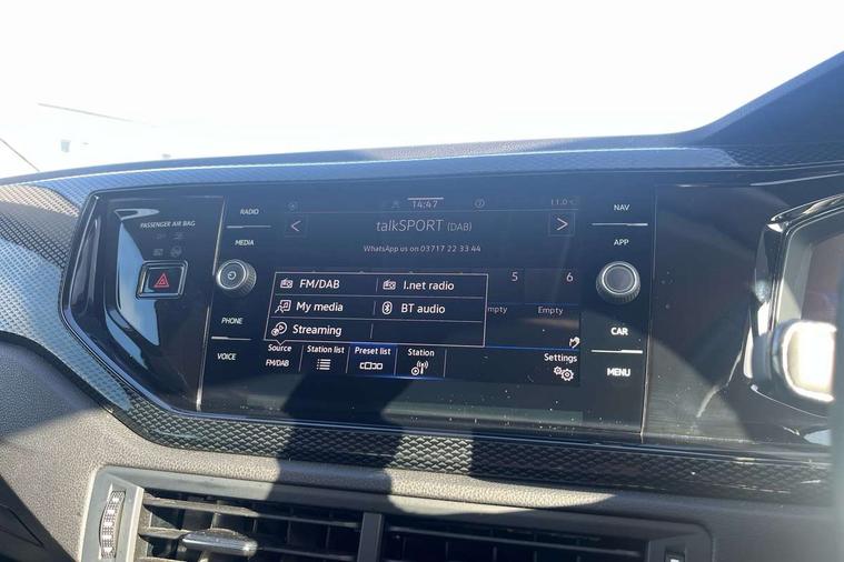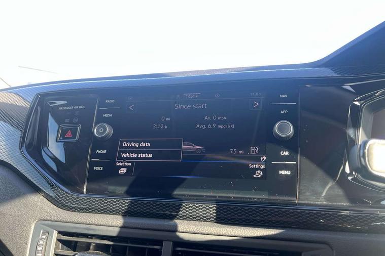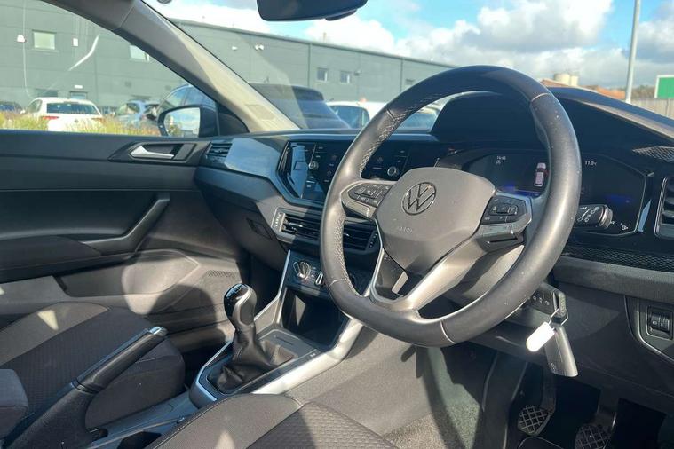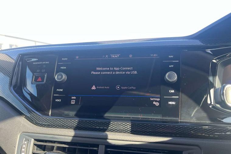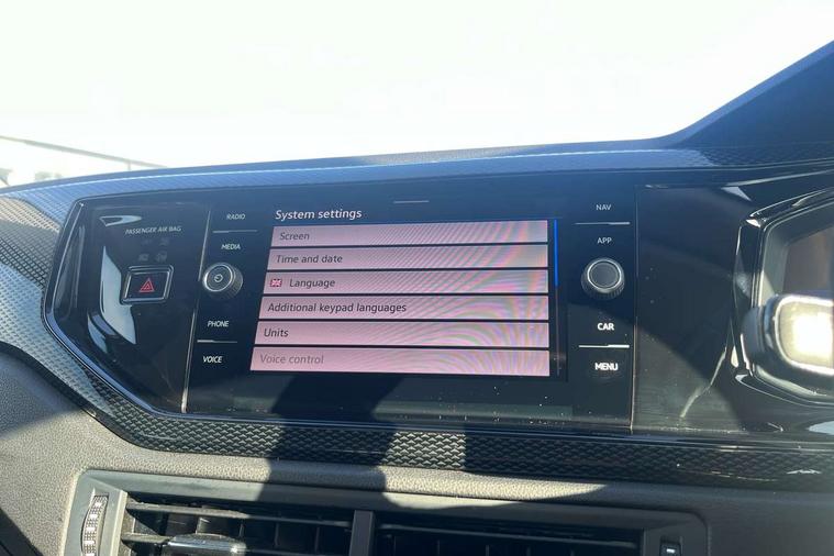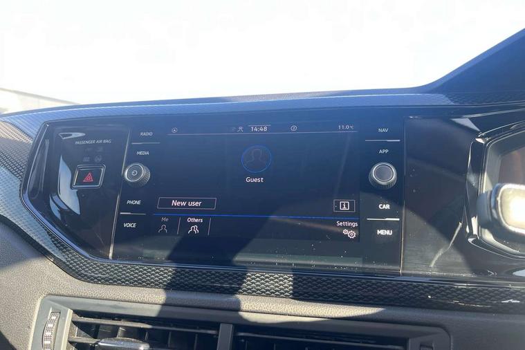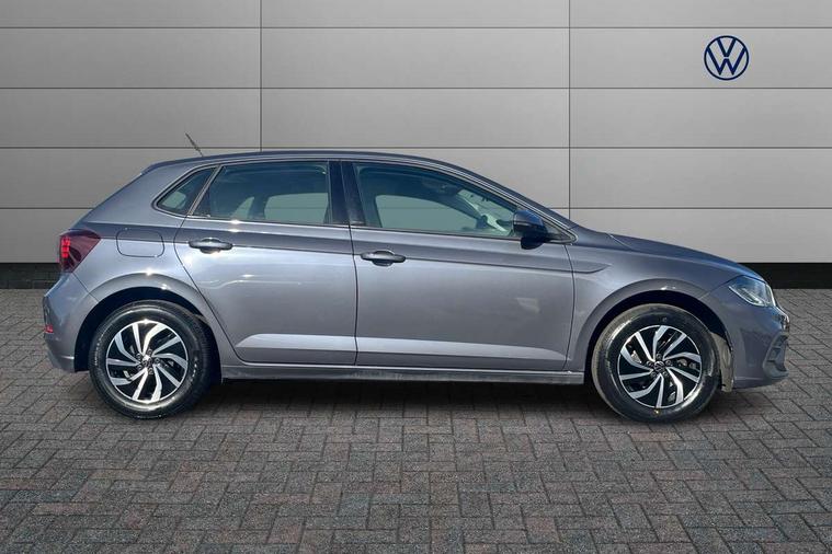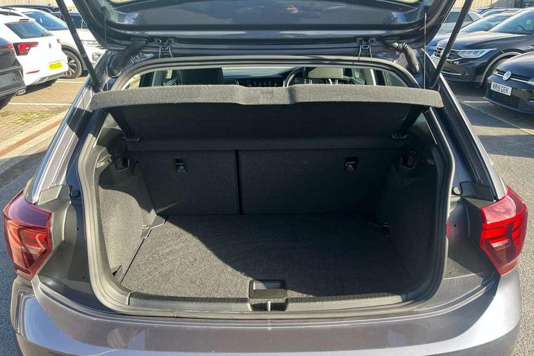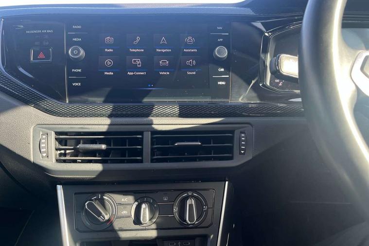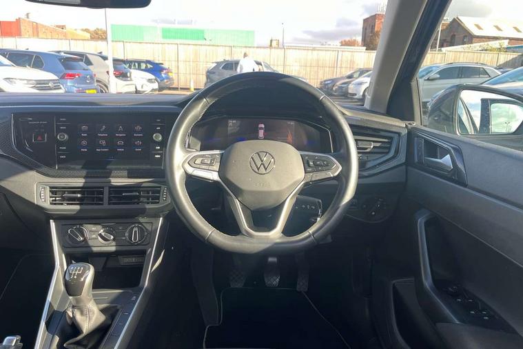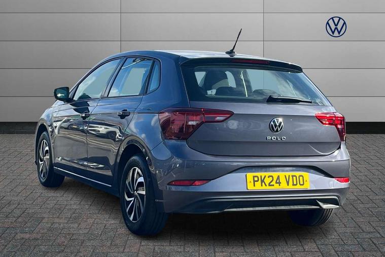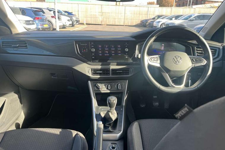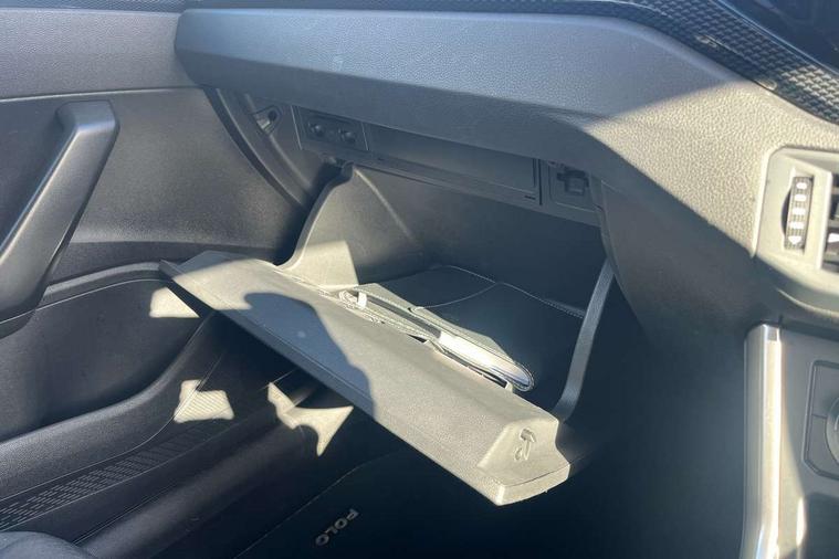 Adaptive cruise control without follow-to-stop and speed limiter, Advanced driver attention and drowsiness monitor, Bluetooth mobile phone interface, Dynamic road sign display, Emergency call service, Power assisted speed sensitive steering, Preparation for navigation system with media and internet package, Preparation for We connect and We connect plus, Speedo and rev counter, electronic odometer, trip, service interval display and exterior temperature gauge, Standard rear axle, Travel Assist - Lane keeping system and traffic jam assist, Travel assist including emergency assist, Trip computer, Warning signal and warning light for front and rear seatbelts not fastened, Washer fluid level indicator, Wireless app connect, Front wheel drive, Rear shock absorpion, Start-stop system with battery regeneration (recuperation - energy recovery during braking), DAB Digital radio, Diversity antenna for FM reception, Front and rear 6 speakers, Automatic dimming interior rear view mirror, Automatic headlight control with LED separate daytime running lights with coming/leaving home function, Body colour bumpers with chrome inserts, Body colour door handles, Body colour door mirrors, Electric front windows, Engine badge deletion, Headlight range adjustment, Heat insulating and laminated safety glass windshield, Heat insulating darkened glass in side and rear windows, Heat insulating glass windscreen, LED Headlights, LED rear combination lamps, Power folding adjustable/heated exterior mirrors and front passenger exterior mirror lowering function, Rain sensor, Rear electric windows, Rear fog light, Rear side wing doors, Rear windscreen washer and wiper with interval delay, Third brake light, 12V power socket in centre console, 2 front and 2 rear reading lights with switch off delay and dimmer, 2 USB-C ports in the front, 2 USB-C charging sockets on the center console in the rear, 3 rear head restraints, 60/40 split folding rear seat and rear seat bench not split, Ceramique roof lining, Chrome plated radiator grille inserts, air vent surrounds and light switch surrounds, Door and side trim panel, Driver and front passenger seat height adjustment, Driver/passenger sunvisors with illuminated vanity mirrors, Front centre armrest, Front seat backrest storage pockets, Front standard seats, Handbrake lever handle in leather, Hartley/Thomas cloth upholstery, Headliner in recycled material, Isofix child seat preparation easy-fit (for two outer rear seats, and front passenger seat) compatible with I-size, Leather trimmed gear knob, Luggage compartment cover, Luggage compartment lighting, Removable luggage compartment floor, Single front passenger seat, Standard climatic zones, Standard pedal cluster, Three spoke leather wrapped multifunction steering wheel, Light and vision pack - Polo, 3 point height adj front seatbelts + pretensioners, 3x3 point rear seatbelts, ABS, Driver and front passenger airbag with front passenger airbag deactivation, Drivers and front passengers safety optimised head restraints, ESC (Electronic stability control) + EDL (Electronic Differntial lock) and ASR (Traction control), Extended and predictive pedestrian/ cyclist protection, Front assist with autonomous emergency braking (for Adaptive Cruise Control ACC up to 130 mph), Front curtain and side airbags with center airbag, Front disc brakes, Hill hold control, Manual child lock in rear doors, Rear drum brakes, Single tone horn, Tyre pressure loss indicator, Alarm with interior protection, Anti-theft alarm system with interior monitoring, backup horn, and towing protection, Anti-theft wheel bolts, Electronic engine immobiliser, Lava stone black gloss/matt decorative inserts in dash and front door panels, Low rolling resistance tyres,