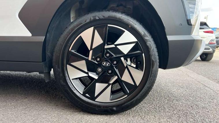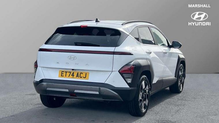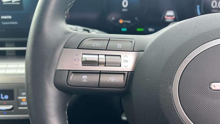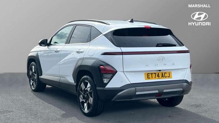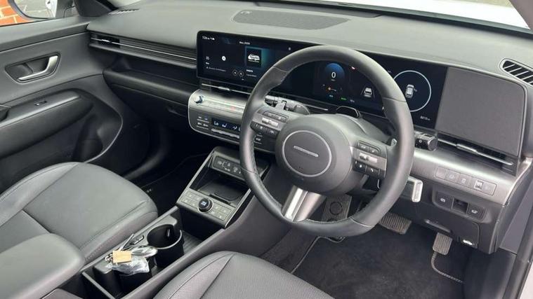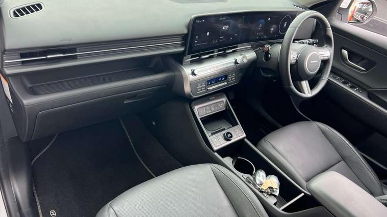 12.25" digital instrument cluster, 12.3" touchscreen centre console display satellite navigation with bluelink, live services and mapcare, Blind spot collision avoidance assist, Blind spot view monitor, Bluetooth connectivity with voice recognition, Driver status monitor (DSM), Driver supervision instrument cluster with 12.3" LCD display, eCall emergency call system, Feature on demand - Enabled, Forward collision avoidance assist (FCA 1.5) - Car, pededstrian, cycle and junction turning, Front parking sensor, HDA - Highway Drive Assist Level 1.5, Height adjustable power tailgate, Intelligent speed limit assist, Lane follow assist, Lane keep assist, Leading vehicle departure alert (LVDA), Parking Collision Avoidance Assist-Reverse (PCA-R), Parking distance warning - side, Parking system with rear camera and guidance system, PAS, Rear cross traffic collision avoidance (RCCA), Rear parking sensor, Rear view camera with dynamic guidelines, Roadside assistance, Safe exit warning (SEW), Smart cruise control with stop and go functionality, Surround view monitor, Wireless phone charging pad, Wireless Smartphone Integration includes Apple CarPlay and Android auto, 2 front USB C and 2 rear USB C charging points, Bose Premium Audio system with 7 premium speakers + subwoofer, DAB Digital radio, Steering wheel audio, phone and cruise controls, Auto dimming rear view mirror, Automatic headlights with dusk sensor, Automatic windscreen wipers with rain sensor, Black painted wheel arch inserts, Body colour exterior door handles, Body coloured door mirrors, Door mirror LED indicator lights, Electric front windows with anti-trap mechanism and one touch control, Electric rear windows, Electric sunroof, Electrically adjustable and heated door mirrors, Horizon centre LED DRL, LED projector headlights, LED taillights, LED upper and lower rear lights, Power folding door mirrors, Privacy glass - Rear windows and tailgate, Rain sensor, Rear roof spoiler with integrated LED brake light, Rear side wing doors, Rear skid plate - silver, Rear wiper, Roof rails, Solar glass with front door glass and windscreen, Tinted glass in front and rear doors, Windscreen auto defog function, 12V power outlet in front console, 2 zone climate control, 3 seat bench in 2nd row, 40/20/40 split folding rear seat, Adjustable head restraints, Ambient lighting, Driver and passenger front seat pockets, Driver's seat electric adjustments, Driver's seat lumbar support, Driver/passenger sunvisors and illuminated vanity mirrors, Floor mats, Front passenger's seat electric adjustments, Heated front seats, Heated rear seats, Heated steering wheel, Height/reach adjustable steering column, Leather steering wheel, Leather upholstery, LED centre interior light, LED front interior light, Luggage compartment LED lighting, Luggage net, Luggage shelf, Metal paint effect interior door handles, Rear centre armrest with cupholders, Shift by wire SBW, Single front passenger seat, Ventilated front seats, Vertical adjustment rear head restraints, Trailer wiring package - Kona, Airbag - front, front side, curtain and centre front airbag, Anti-lock brake system (ABS), Childproof rear door locks, Downhill brake control, Electric parking brake, Electronic stability control, Fixed 3 point for second row centre passenger seatbelt, Hill start assist control (HAC), Rear seat alert, Tyre pressure monitoring system, Alarm/immobiliser, Rear occupant alert, Remote central locking, Smart key with keyless entry and start/stop button, Five year annual vehicle health checks, 18" Alloy wheels, Temporary mobility kit (TMK),