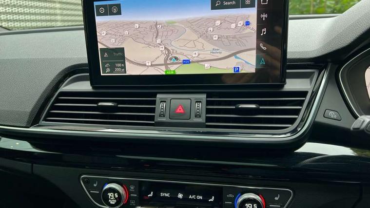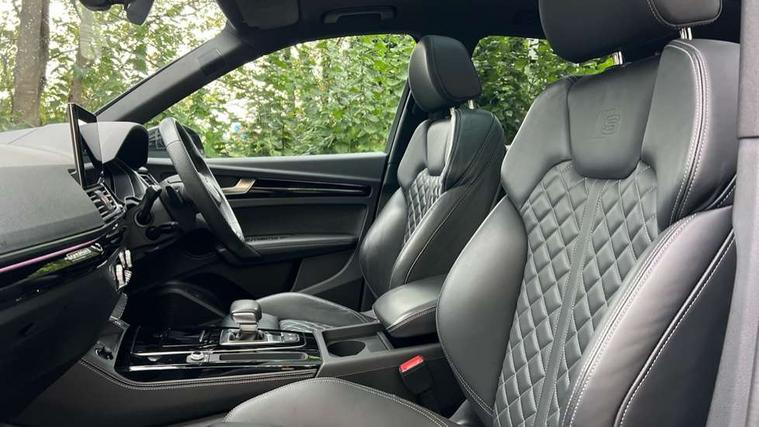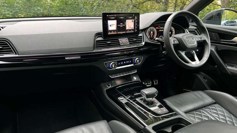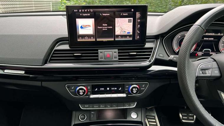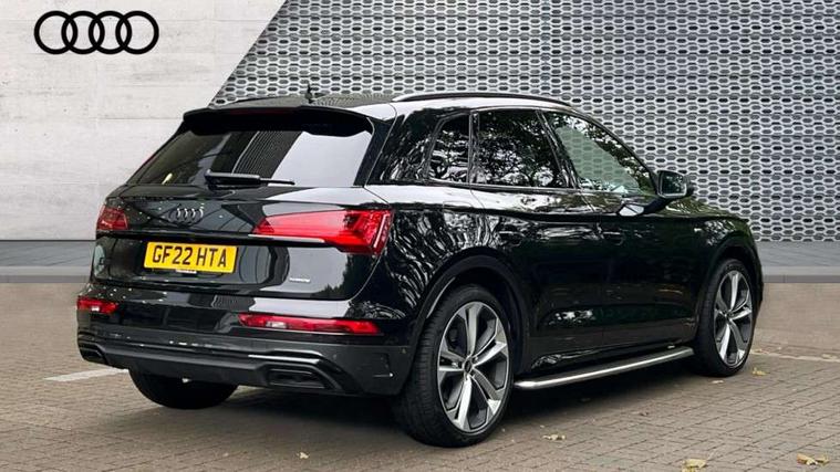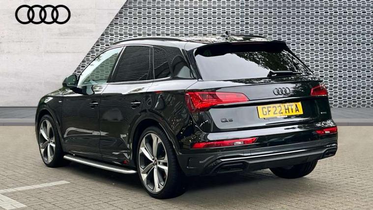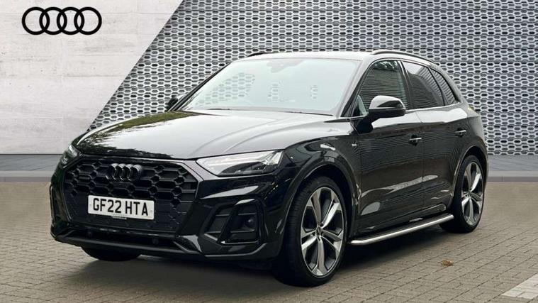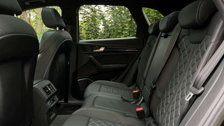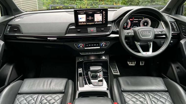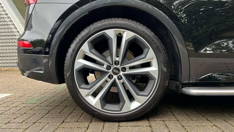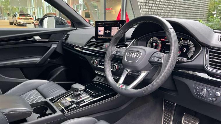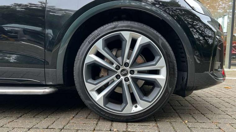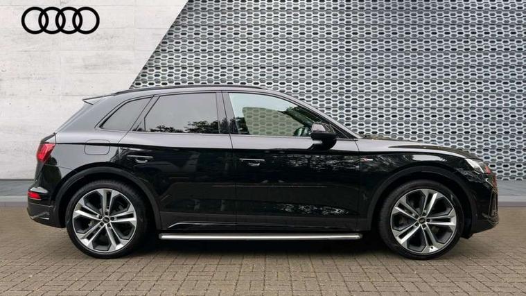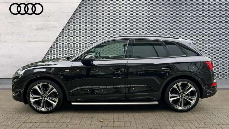 360 degree camera with top view, Advanced key with electric hands free boot opening system, Audi connect safety and service (e-call), Audi connect with Amazon Alexa Integration, Audi drive select, Audi virtual cockpit plus with 12.3" screen and three different layout designs, Audi wireless smartphone interface, Automatic start-stop system with coasting functionality and efficiency programme, Electro - mechanical power assisted steering, Head up Display, MMI navigation plus with 10.1" touch screen, Mobile telephone preparation - bluetooth interface, Park assist with parking aid plus, Power tailgate, Service interval indicator, Voice control system with Audi hotword activation "Hey Audi", Adaptive air suspension, Diesel particulate filter, Quattro on demand, 2 x USB charging port with aux input socket, Bang + Olufsen sound system, DAB Digital radio, Acoustic windscreen, Audi beam with 'Vorsprung' logo, Auto dimming door mirrors, Auto dimming rear view mirror, Automatic headlights and windscreen wipers, Black roof rails, Body colour bumpers, Body colour underbody protection, Chrome plated exhaust trims, Daytime running lights, Door sills in Selenite silver, Electric adjustable/heated/folding door mirrors, Front air inlet surrounds in titanium black, Front and rear electric windows, Gloss black finish for Audi rings and Q5 logos without engine badging, Headlight washers, High gloss black B pillar trims and triangular rear door trim, High level LED brake light, Lower bumpers painted in contrast Manhattan grey, Matrix LED headlights with dynamic front and rear indicators, Rear chrome trim strip below lights, Rear privacy glass and rear side windows, Rear side wing doors, Rear wiper, Roof bars, Running boards, S Line rear spoiler, 3 rear headrests, 3 spoke heated leather multi-function steering wheel, 4 way electric lumbar support for driver and front passenger, 40:20:40 split folding 3 rear bench seat in 2nd row with rear centre armrest, Black cloth headlining, Comfort front centre armrest, Contrast stitching on seats, steering wheel and gear lever gaiter, Deluxe 3 zone electronic climate control, Electrically adjustable front seats with driver memory, Fine Nappa leather upholstery with diamond pattern contrast stitching + front sport seats with S embossed logo, Front/rear floor mats, Gear lever in black leather, Heated front and outer rear seats, Height adjustable front head restraints, Illuminated door sill trims with aluminium inlays, ISOFIX child seat mounting and top tether, Massage function for front seats, Rear seat bench plus, Removable luggage compartment floor, Single front passenger seat, Stainless steel pedals, Sunvisors with vanity mirrors, Black styling package - Q5, City Assist pack - Q5, Extended interior upholstery pack - Q5, Extended LED Interior multi coloured Lighting Pack - Q5, Tour pack - Q5, 3 point seatbelts on all seats, 6 airbags - Driver, front passenger, curtain and side airbags, Electrically operated child locks on rear doors, Electromechanical parking brake, Electronic stabilisation control including ABS, ASR and EDL, Front passenger airbag deactivation, Hill descent control, Hill hold assist, Multi collision brake assist, Pop-up bonnet for pedestrian protection, Pre sense city, Seat belt force limiter, Seatbelt monitoring, Tyre pressure warning, Warning triangle and first aid kit, Anti theft alarm, Anti-theft wheel bolts, Keyless Go access/ignition system, Remote central locking, Piano black finish inlay, Tool kit, Tyre repair kit,