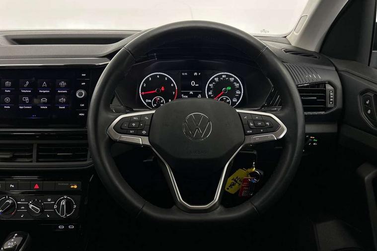 'Lights On' Reminder warning buzzer, Adaptive cruise control including front assist, forward collision warning, autonomous emergency braking, speed limiter, Blind spot monitoring, Bluetooth telephone and audio connection for compatible devices, Car information display, Digital cockpit, Driver alert system, eCall emergency call system, Lane assist, Low washer fluid warning light, Multifunction computer with visual gear change recommendation for fuel consumption, Operating permit alteration, Power assisted speed sensitive steering, Speedo, rev counter, electronic odometer, trip, service interval display, exterior temperature and fuel gauge, Stop/start system, Warning sound and light for doors and tailgate open, Warning sound and light for front seatbelts unfastened, We Connect Go Dongle, Wireless Car net app connect with Apple CarPlay, combined functionality of Apple CarPlay/Android Auto and MirrorLink, Battery regeneration during braking, Misfuel prevention device, 2x USB connection with USB charging sockets and in rear centre console, DAB Digital radio receiver, Diversity antenna for FM reception, Multi device interface (MDI) with USB connection, Music playback - MP3, WMA and AAC files, Premium USB cable for Apple or Android smartphone compatibility, Simultaneous pairing of 2 compatible mobile devices, Title and cover art display, Automatic hazard lights activation under emergency braking, Black door mirrors, Black roof rails, Body colour door handles, Body coloured bumpers, Dusk sensor + automatic driving lights, Electrically foldable, adjustable and heated door mirrors with reverse activated kerb view adjustment on passenger's side, Front and rear electric windows, Front fog lights with static cornering function, Galvanised body, Heated rear window, LED third brake light, Lower door sills and door pillars in black, Radiator grille with high gloss surface and chrome strip, Rear fog light on one side, reversing light on both sides, Rear lights incorporating LED technology, Rear side wing doors, Rear tinted glass 65% approx light absorbing from B pillar backwards, Rear window aerial, Rear windscreen washer and wiper with interval delay, Reflectors in all doors, Tailgate with integrated roof spoiler, Windscreen wipers/ intermittent wipe + 4 position delay, 12V Accessory socket in centre console, 3 rear head restraints and 3 rear three point seat belts with ECE label, 3 seat bench in 2nd row, 60/40 split folding rear seat backrest, Comfort front sport seats, Diag cloth upholstery, Drawer under drivers seat, Driver and front passenger sunvisor with vanity mirror, Driver's sunvisor with ticket holder, Dust and pollen filter, Front + rear carpet mats, Front and rear reading lights X 2, Front centre armrest with storage compartment, Front seat back storage pockets, Front seats with adjustable lumbar support, Glovebox, Heating and fresh air system with 4 stage blower, Height/reach adjust steering wheel, Instrument lighting white adjustable panel illumination, Interior light with delay, Isofix child seat preparation for 2 rear child seats, Luggage compartment cover, Luggage compartment lighting, Manual air conditioning, Moveable and foldable Rear bench seat, Storage compartment in drivers and front passengers door, Three spoke multi-function leather trimmed steering wheel and gearknob, Variable boot floor, Anti-lock Braking System (ABS) with Hydraulic Brake Assist (HBA), Automatic post collision braking system, Driver and front passenger safety-optimised head restraints, Drivers and Front Passengers airbags with front passengers airbag deactivation switch, ESC with EDL, ASR, EDTC and trailer stabilisation function, Front and rear curtain airbags, Front seat side impact airbags, Height-adjustable front three-point seat belts with tensioners, Hill start assist, Pre crash preventive occupant protection, Rear door child safety locks, Rigid safety cell with front and rear crumple zones, Single torn horn, Tyre pressure loss indicator, Volkswagen roadside assistance, Alarm with interior protection and deactivation via infotainment system, Child security locks in rear doors, Electronic engine immobiliser, Remote tailgate unlocking using key fob, Decorative inserts transition high gloss black/platnium grey, 17" Manila black diamond turned surface alloy wheels + anti theft wheel bolts, Breakdown kit,