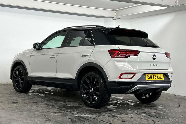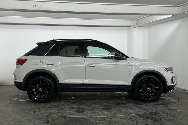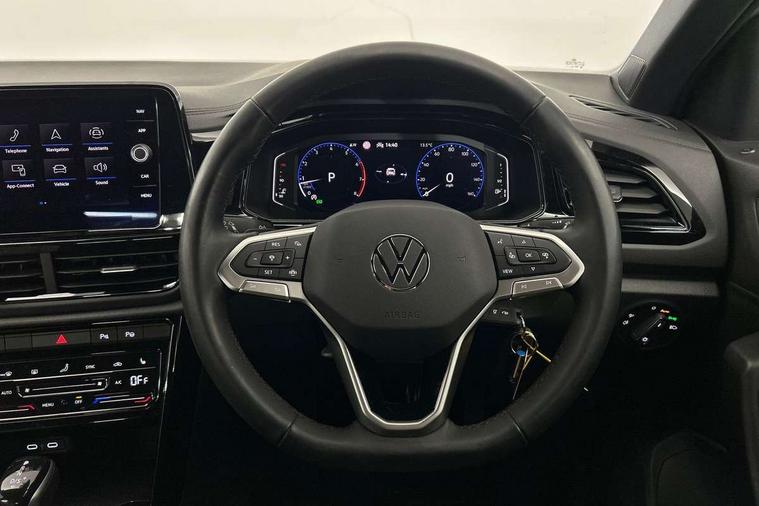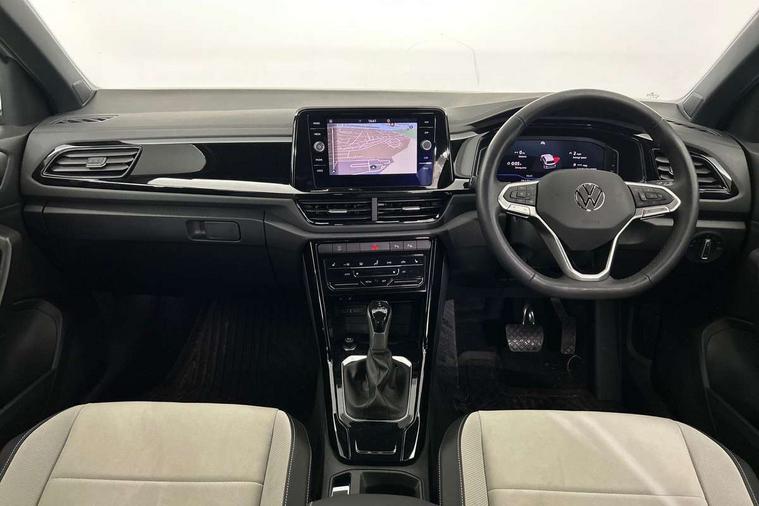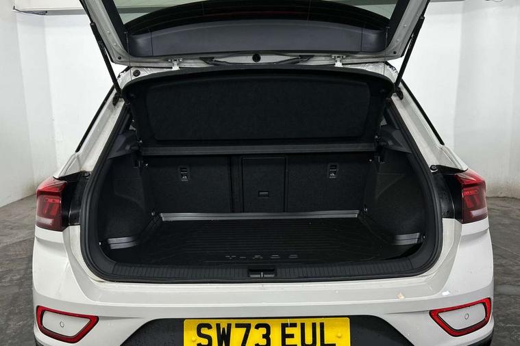 10.25" Digital cockpit pro, Bluetooth mobile phone interface, Driver alert system with fatigue detection, Driver tips and journey analysis, Emergency call service, Lane keeping system Lane Assist, Modified key software - reduce switch off time for key status change to Long no motion, Online services, Park assist including front and rear parking sensors, Service interval indicator, Tailgate/trunk lid release from outside, Think blue trainer driver tips and journey analysis, Warning sound and light for front seatbelts unfastened, Wireless app connect, Battery regeneration during braking, Start/stop function with battery regeneration, Diversity antenna for FM reception, Music playback - MP3, WMA and AAC files, Premium USB cable in choice of either Apple or Android smartphone compatibility, SD card slot, Simultaneous pairing of 2 compatible mobile devices, Title and cover art display, We Connect and We Connect Plus functionality, 3rd brake light, Auto dimming interior rear view mirror, Automatic hazard lights activation under emergency braking, Automatic headlight control with LED separate daytime running lights with coming/leaving home function, Body colour sports bumpers with silver metallic underbody fascia, Dynamic headlight range control with self adjusting whilst driving, Extended roof spoiler, Exterior mirrors aspherical on driver side, convex on front passenger side, External USB type C socket and charging sockets, Front windscreen wiper with intermittent wipe and 4 position delay, Heated rear window, LED rear combination lamps, LED rear number plate lights, LED tail lamp rear comination lamps, Light mode for poor weather, rain, fog or snow, Power windows with comfort operation and circuit breaker, Rain sensor, Rear exhaust tailpipe, Rear fog light on one side and reversing lights on both sides, Rear side wing doors, Rear wash/wipe with intermittent wipe setting, Remote electrically foldable door mirrors, puddle lights and reverse activated passenger's door mirror, 12V power socket in centre console, 3 rear head restraints, 3 seat bench in 2nd row, 4 load lashing points in luggage compartment, Air care climatronic air conditoning system with active combination filter and 2-zone temperature control, Chrome plated radiator grille inserts, air vent surrounds and light switch surrounds, Door and side trim panel with leatherette insert, Drawer under drivers seat, Front + rear carpet mats, Front centre armrest, Front comfort sports seats, Front cupholders x 2, Front footwell illumination, Instrument lighting, white adjustable panel illumination, Interior ambient lighting and surround lighting, Interior light delay, Isofix child seat preparation, Leather gearshift handle, LED interior light with switch off delay/dimmer and 2 front/rear LED reading lights, Load-through provision with cup holder when folded down ('Unsplit rear seat bench, split folding backrest, with centre armrest), Luggage compartment lighting, Non-folding front passenger seat backrest, Single front passenger seat, Storage compartment in left and right luggage area, Storage compartment in rear doors, Storage compartments in driver and front passenger doors, Sunvisors with illuminated vanity mirrors, Variable boot floor, height adjustable and removable, Driver assistance pack without proactive passenger protection - T-Roc, 3 point height adj front seatbelts + pretensioners, 3 point seatbelts in outer rear with ECE label, ABS, Child locks on rear doors, Driver and front passenger airbag with front passenger airbag deactivation, Driver and front passenger safety-optimised head restraints, Drivers seatbelt reminder, Electronic parking brake, Electronic Stability Control (ESC) inc EDL (Electronic Differential Lock) and ASR (Traction Control), Front and rear passengers curtain airbag system including front side airbags, Front assist with city emergency braking and pedestrian monitoring, Front seat side impact airbags, Predictive pedestrian protection, Rear disc brakes, Single tone horn, Tyre pressure loss indicator, Volkswagen roadside assistance, Anti-theft alarm system with interior monitoring, backup horn, and towing protection, Remote central locking with SAFELOCK, radio remote control with 2 remote control folding keys, Trims for alloy wheels,