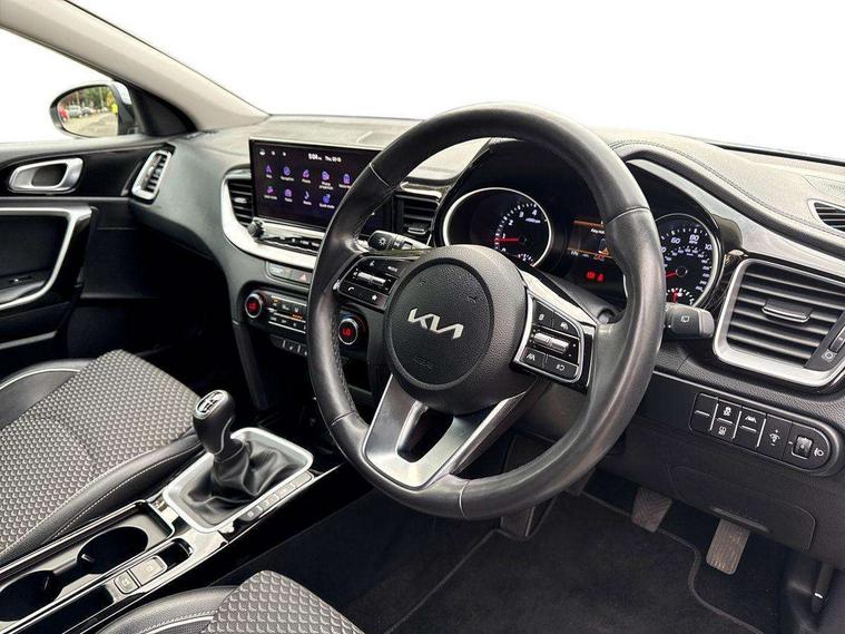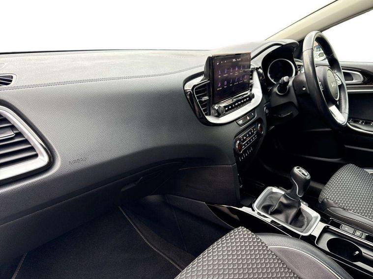10.25" touchscreen satellite navigation with telematics, 4.2" supervision colour cluster display, Android auto with voice control, Apple car play with voice control, Bluetooth with Voice Recognition & Music Streaming, Cruise control + speed limiter, Driver attention warning, Emergency call service, Forward Collision-Avoidance Assist (FCA) - City/Pedestrian/Cyclist, Lane Following Assist (LFA), Lane keep assist, Motor driven power steering, Rear parking sensor, Reversing camera with dynamic guide lines, Trip computer, Intelligent Stop and Go, 1x Rear USB-C, 2x Front USB (1x USB-C, 1x USB-A), 7 speakers, DAB Radio with MP3, Rear console USB C-type charge port, Steering wheel mounted controls, All-round Electric Windows with Auto Up & Down Function, Auto dimming rear view mirror, Automatic defog system, Automatic headlights, Black wheel arch extensions, Body colour bumpers, Body colour exterior door handles, Body colour roof spoiler, Body colour side sill mouldings, Body coloured door mirrors with matt black lower housing, Body coloured shark fin antenna, Electrically folding, adjustable and heated door mirrors with integrated LED indicator lights, Heated rear window with timer, High beam assist, LED Bi-Function projection headlights, LED daytime running lights, LED High-mounted Brake Light, LED rear fog light, LED rear lights, Matt black and satin chrome radiator grille, Privacy glass - Rear windows and tailgate, Projection front fog lights, Rain sensing front wipers, Rear side wing doors, Rear wiper, Satin chrome window surround, Silver roof rails, Smaller XCeed badge on rear left hand tailgate, Tinted glass, Wide view drivers door mirror, Windscreen Washer Level Warning, 3 seat bench in 2nd row, 60/40 split folding rear seat, All-round height adjustable headrests, Centre Console with Storage Box and Sliding Armrest, Chrome interior door handles, Cloth/faux leather upholstery, Cupholders in centre console, Driver + front passenger electric lumbar support, Driver and passenger front seat pockets, Driver's seat height adjuster, Dual zone automatic air conditioning, Faux leather door trim, Front and luggage area 12V power sockets, Front and rear door storage, Front cabin map light with sunglasses case, Front Passenger Seat Height Adjuster, Heated front seats, Heated steering wheel, Illuminated driver and front passenger sunvisors with vanity mirror, ISOFIX Child seat top tethers and anchor fixings, Leather steering wheel and faux leather gearshift, Luggage area light, Luggage area parcel shelf, Luggage hooks, Rear cabin light, Rear centre armrest with cupholders, Single front passenger seat, Tilt/telescopic adjustable steering wheel, ABS with Electronic Brakeforce Distribution (EBD) and Brake Assist System (BAS), All round 3-point seatbelts, Dual horn, Electronic parking brake, Electronic stability control (ESC) and vehicle stability management (VSM), Front passenger airbag cut off switch, Height adjustable front seatbelts, Hill start assist control (HAC), Impact sensing auto door unlocking, Rear door child safety locks, Seatbelt reminder warning, Traction control, Twin curtain airbags, Twin front airbags, Twin front side airbags, Tyre pressure monitoring system, Alarm system, Engine Immobiliser & Deadlocks, Locking wheel nuts, Smart key with engine start/stop button, 18" Alloy wheels, Tyre mobility kit,