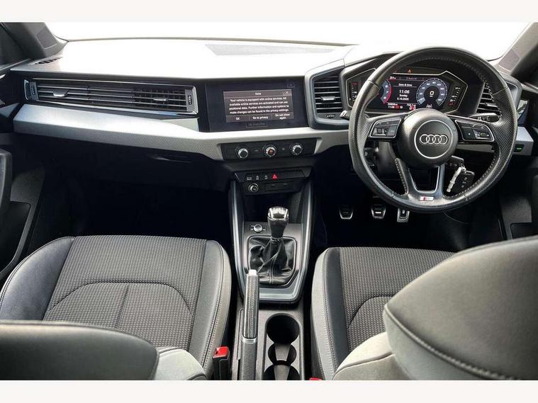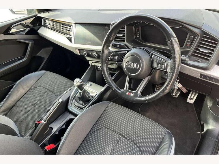10.25" Digital instrument cluster display classis style instrument dials + speed, odometer, time, outside temperature, telephone menu + fuel level warning, Audi connect safety emergency and service including E-call, Audi drive select - power steering assistance + engine, Audi smartphone interface with connect compatible smartphone via USB directly MMI display + Nav, music, third party apps controlled via MMI controller, Automatic start/stop system, Bluetooth interface, Cruise control, Driver's information system, Electromechanical power steering, Lane departure warning system, Rear parking sensor, Service interval indicator, Speed limiter, Voice control system, Washer fluid level indicator, Sports suspension, 1 x SDXC card reader, 1 x USB type C and 1 USB type A charging points, DAB Digital radio, MMI radio plus with 8.8" colour MMI display screen and MMI touch, Auto dimming rear view mirror, Body coloured door mirrors, Door sills with aluminium inlays and S Line logo, Electric front and rear windows, Electrically adjustable, heated, folding door mirrors with integrated LED side indicator, Front side air inlets in grained matt black and C frame in titanium black, Heat insulating glass windscreen and side windows, Heated rear windscreen, LED headlights with LED rear lights + dynamic rear indicators + headlight adjustment and high beam, turning light + LED daytime running lights, Radiator grille and rear diffuser in matt titanium black, Radiator protective grille frame in matt aluminium silver, Rain and light sensors, Rear fog lights, Rear wiper, S line badges on front wings, Side front spoiler lips in grained matt black, 12V socket in centre console with two cup holders, 3 rear seats with headrests, 40:60 Split folding rear seat or folded fully, Black cloth headlining, Driver and passenger seat with manual height adjust with forward and backwards adjustment, Front and rear black floor mats with contrast stitching in fine silver, Front head restraints, Height and reach adjustable steering wheel, ISOFIX child seat mounting for front passenger and outer rear seats including top tether attachment point of outer rear seats, Leather gear knob with aluminium trim, Luggage compartment light with front and rear reading lights, Manually adjustable lumbar support in front seats, Stainless steel pedals, LED interior lighting pack - A1, Luggage compartment pack - A1, S line exterior styling pack - A1 Sportback, 3x3 point rear seatbelts, Audi pre-sense front with pedestrain and cyclist recognition, Brake assist function, Driver and front passenger airbag with front side and head airbags, Electronic Stability Control including ABS, EBD, ASR and EDL, Front and rear seatbelt reminder, Front passenger airbag deactivation switch, Hill hold assist, Seatbelt height adjustment for front seats, Seatbelt monitoring, Tyre pressure warning light, Warning triangle and first aid kit, Anti theft alarm, Anti theft wheel bolts and loose wheel warning, Immobiliser, Remote central locking with 2 foldaway keys, Aluminium trim for control switches, air vents and digital instrument cluster, Silver grey inlays polygon structure in diamond paint finish, Structured grey accent areas including air vents, door handle recesses and centre console in quartz paint finish,