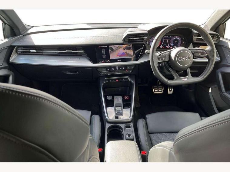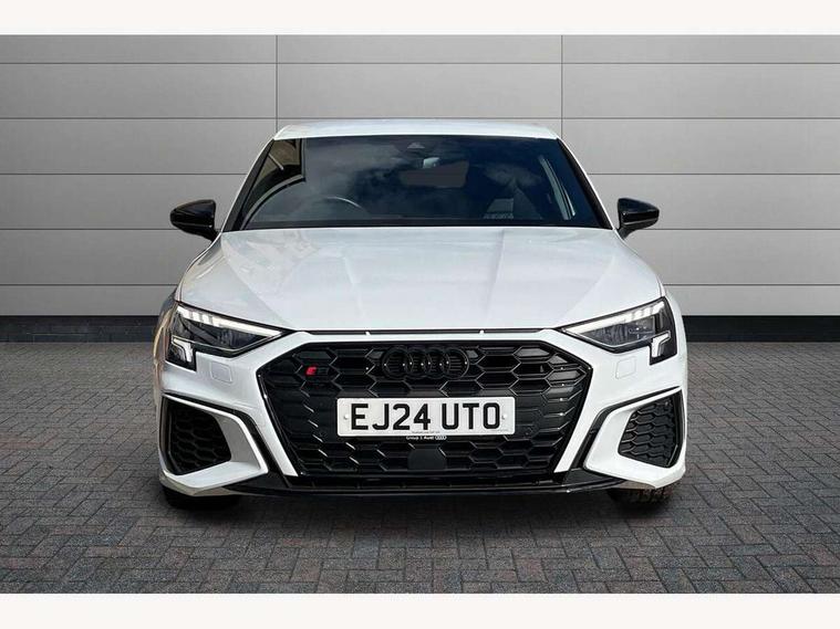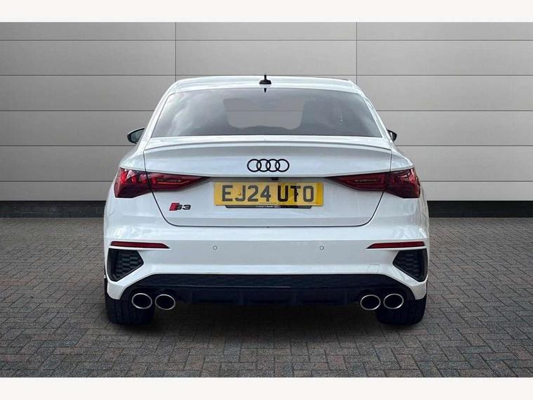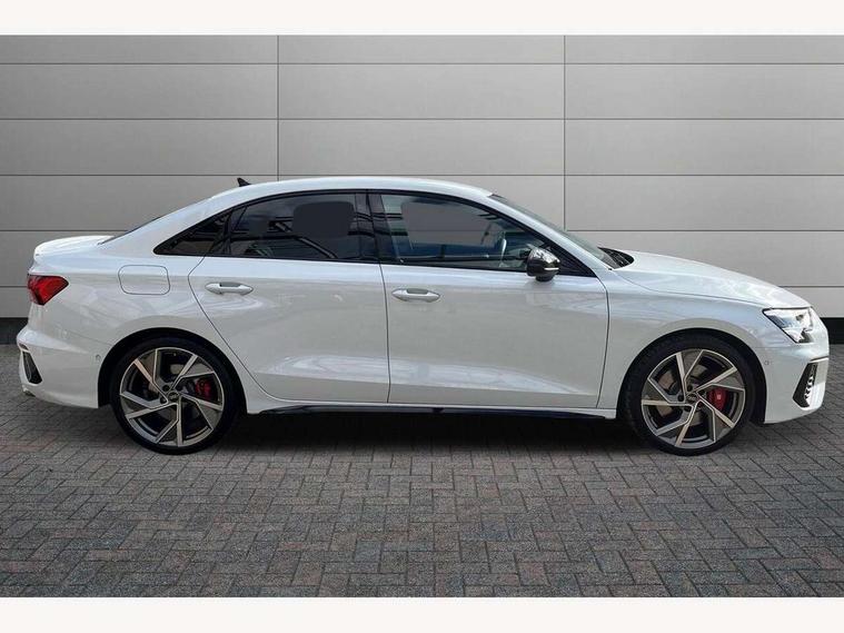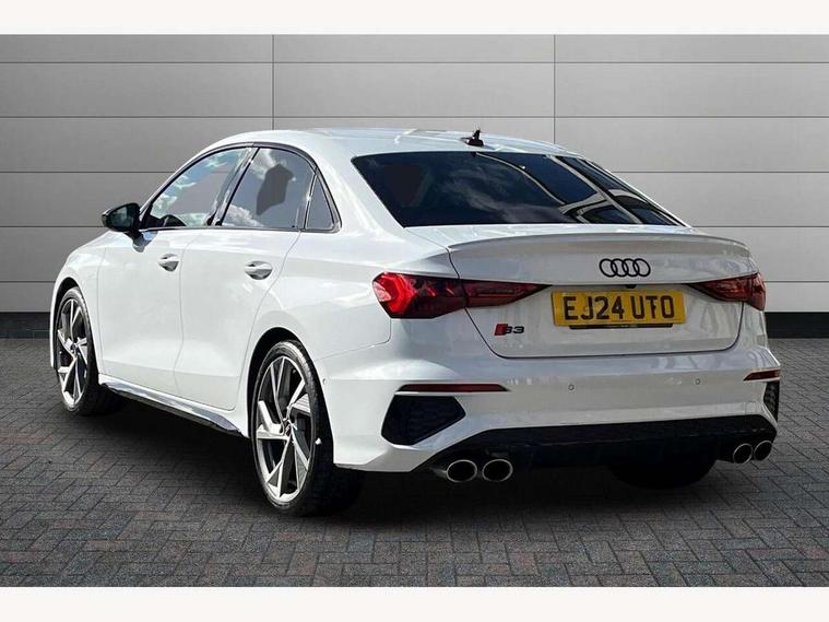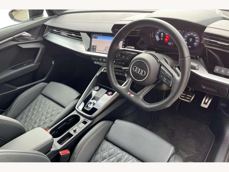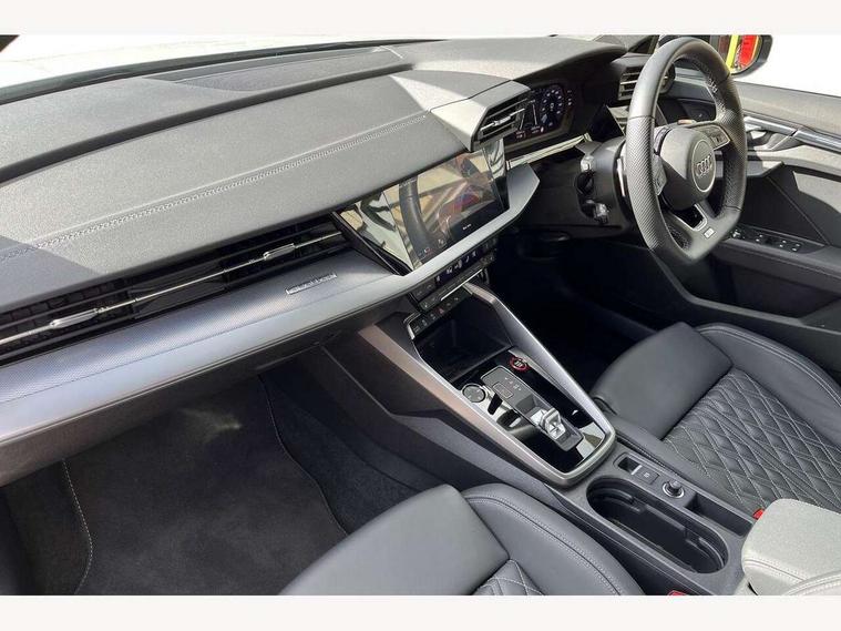 Audi drive select (Auto, Comfort, Dynamic, Efficiency and Individual), Audi smartphone interface, Audi Virtual Cockpit - 10.25" digital and colour instrument cluster, Automatic start/stop system with recuperation, Bluetooth interface, Camera based traffic sign recognition, Collision avoidance assistant, e-Call (emergency call), Lane departure warning system, MMI Navigation Plus with high resolution 10.1" colour touch screen display, Progressive steering, Service indicator, Trip computer, Voice control system with natural language interaction, Quattro permanent all wheel drive, S sport suspension with spring damper adjustment and lowering by 15mm, 2xUSB-C connection with data and charging functions, CD player, DAB Digital radio, 3rd brake light, Acoustic glass windscreen, Audi Beam uses LEDs to project the Audi logo onto the ground as you exit your S3, Auto dimming frameless rear view mirror, Dual branch oval twin tailpipes in chrome plated finish, Electrically adjustable/heated/folding/auto dimming door mirrors with integrated LED indications + kerb view function for passenger side, Front electric windows, Headlight washers, Illuminated door sills with aluminium inserts at the front with S logo, LED daytime running lights, LED headlights with LED rear lights and dynamic rear indicators, Light and rain sensors, Model and engine designation badges at rear, Privacy glass - dark tinted rear window, rear door and side windows, Rear boot, Rear electric windows, Rear side wing doors, 12V socket and storage compartment in front centre console, 3 seat bench in 2nd row, 3 spoke flat bottomed leather multifunction sport steering wheel with gear shift paddles, 4 way electrically adjustable lumbar support for driver and front passenger, 60/40 split folding rear seat bench, Black cloth headlining, Dual zone electronic climate control, Fine Nappa leather upholstery with front sports seats S embossed logo, Front and rear centre armrest in artificial leather, Front and rear headrests, Front/rear floor mats, Height and reach adjustable steering wheel, Interior lighting - glove compartment light and right hand side, Luggage compartment floor covering, Manual boot compartment lid, Manually adjustable front seats, Single front passenger seat, Stainless steel pedals and front footrest in black, Aluminium interior elements pack - A3, Black styling pack - A3 Saloon/S3, Body styling design pack - S3, Extended ambient lighting pack - A3/S3 Saloon, Storage pack - A3/S3 Saloon, Technology pack with parking assist - A3 Saloon, 3x3 point rear seat belts, Driver and front passenger airbag with passenger airbag deactivation, Electronic Stabilisation Control (ESC) including ABS, ASR and EDL, First aid kit with warning triangle and 2 safety vests, Front side airbags with head airbags and interaction airbag, Pre-sense front with pedestrian and cyclist detection, Seatbelt monitoring, Tyre pressure loss indicator, Anti theft alarm, Anti-theft wheel bolts, Electronically operated child locks, Immobiliser, Remote control central locking, Aluminium air vent surrounds, Dark spectrum aluminium inlays, accent surfaces in the dashboard and centre console in platinum grey silk effect paint finish,