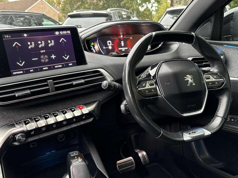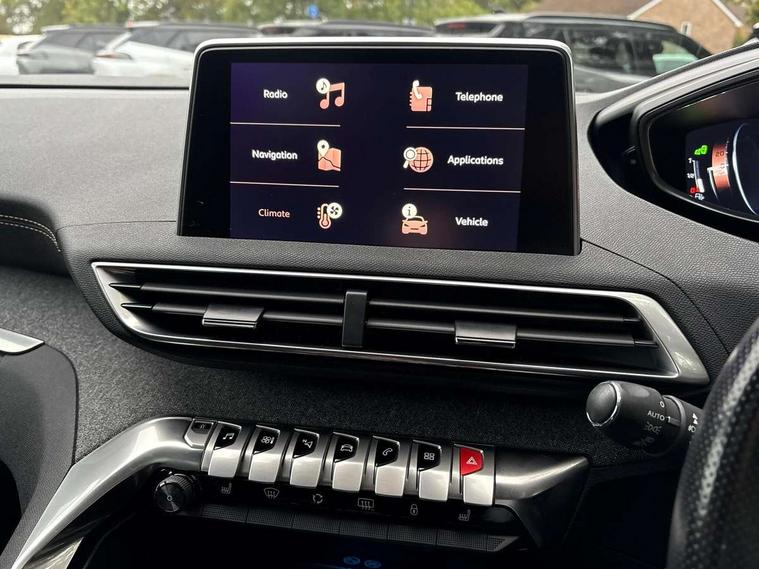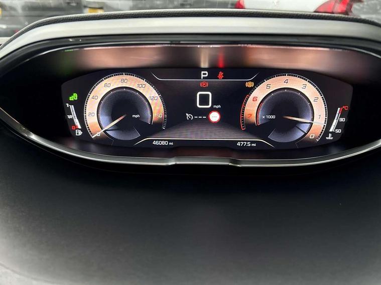 'Lights On' Reminder warning buzzer, 3D connected navigation + voice control + Peugeot connect SOS and assistance, Advanced driver attention alert, Android Auto, Blind spot monitoring, Digital clock, Exterior temperature gauge, Lane departure warning system, Lane keep assist, Mirror screen with mirror link and car play, Multi function trip computer, Peugeot i-cockpit with amplify configurable interior ambiences, headup display with distance alert, touch screen, Rear parking aid, Smartphone cradle, Speed sensitive power steering, Dynamic stability control, DAB Digital radio, Peugeot connect with USB and bluetooth, Radio/MP3 player, Steering column mounted multifunction controls, Automatic activation of hazard warning lights, Automatic front windscreen wipers, Automatic headlamp levelling, Black diamond roof, Black door mirrors, Body colour door handles, Body colour rear spoiler, Body coloured bumpers, Chrome bumper inserts, Chrome front fog light surround, Chrome radiator grille and surround, Chrome side window trim, Dark tinted rear windows, Electric folding door mirrors with courtesy approach lighting, Electric operated/heated door mirrors, Heated rear windscreen, LED daytime running lights, LED headlights with LED front fog light and static cornering light, LED rear lights, Lion grey front bumper scuff plate, One touch electric front/rear windows, Panoramic glass roof with electric interior blind + aluminium roof rails, Peugeot smart beam assist, Rear wiper, Sports front bumper, Twin exhaust tailpipe, 1/3 to 2/3 split folding rear seats, 230V socket on rear centre console, 3 x 12V power sockets, 4 Lashing eyes in boot, Blue ambient lighting, Centre console cupholder, Centre front armrest with illuminated cool compartment, Cupholders - 2 in rear centre armrest, Dual zone automatic climate control, Fold flat front passenger seat with picnic table, Front door pockets, Front headrests, Front reading lights, Front seat back map pockets, Gear shift indicator, Grab handles, Height adjustable headrests, Height adjustable passenger seat, Height/reach adjust steering wheel, Illuminated glovebox, Illuminated vanity mirrors, Instrument panel light dimmer, ISOFIX on front passenger and rear outer seats, LED interior illumination, LED light in luggage compartment, Mistral floor mats, Mistral full grain perforated leather steering wheel with aikinite stitch, Rear centre armrest/ski flap, Rear coat hook, Rear headrests, Rear reading lights, Reclining front seats, Roof lining - Mistral black, Satin chrome gear lever, Satin chrome interior door handles, Variable boot floor, Visibility pack - 3008, 3 point front seat belts, 3 point seatbelts on all rear seats, ABS + EBD + EBA, Auto city emergency braking, Driver SMART airbag, Electronic parking brake, ESP with ASR, Front and rear curtain airbags, Front and rear pre-tensioning and force limiting seatbelts, Front passenger SMART airbag with deactivate switch, Height adjustable front seatbelts, Hill start assist, Seatbelt warning lamp and buzzer, Side airbags x 2, Tyre pressure sensor, Automatic door lock/re-lock after 30 seconds, Central locking button on dash, Child lock control of rear doors and windows, Deadlocks, Electric tailgate with Peugeot open & go system, Locking wheel bolts, Perimetric and volumetric anti theft alarm, Remote control central locking with two plip keys, Rolling code transponder immobiliser, Brumeo fabric interior trim, 19" Washington diamond cut alloy wheels, Space saver spare wheel,