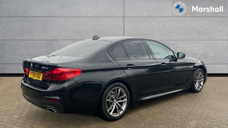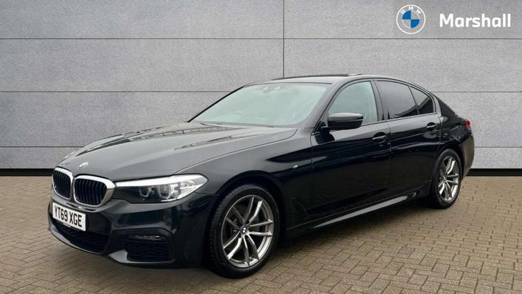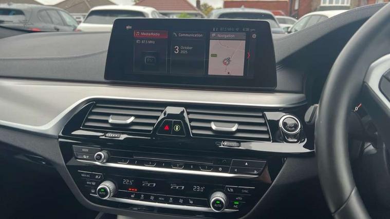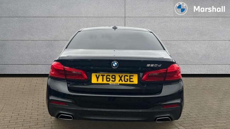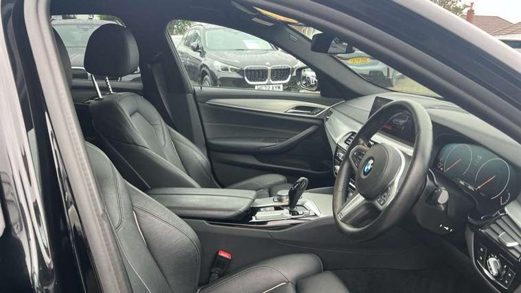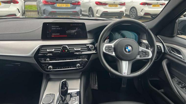 32GB hard disc drive (HDD) memory, Active Guard, Bluetooth connection, BMW ConnectedDrive online services, BMW Live Cockpit Professional sat nav system with 12.3" instrument display and high resolution control display, BMW Teleservices, Brake pad wear indicator, Cruise control with brake assist, Driving experience switch, eCall emergency call system, Electric Power Steering (EPS) with Servotronic, iDrive controller with shortcut buttons, Intelligent emergency call, Multifunctional instrument panel, Oil sensor for level and grade, On board computer inc. average speed, fuel consumption, liquid crystal Info display, journey computer, outside temperature display, personal profile, On-board diagnosis - OBD, Powered by Operating System 7.0, Service interval indicator, Speed limiting function, Stop/start button, 48V Mild hybrid technology, Diesel particulate filter, Drive performance control with ECO PRO comfort + sport mode, Engine cover with twin turbo designation, M sport suspension, Steptronic sport transmission with gearshift paddle switches on steering wheel, DAB Digital radio, Favourite buttons, Acoustic glazing, All round anti-corrosion system, Automatic windscreen wipers and automatic headlight, Automatically dimming rear view mirror, BMW Individual high gloss shadow line includes exterior mirror frame, window frame surround, B pillar finish, air breather in high gloss black, Body colour door handles, Body coloured bumpers, Door handle illumination, Dynamic brake lights with LED technology, Electric front and rear windows with fingertip open/close + anti-trap facility and comfort closing function, Electrically adjustable and heated exterior mirrors includes integrated direction indicators and automatic parking function, Folding exterior side mirror with auto- dimming, Follow me home headlight function, Heated windscreen washer jets, High gloss black active air stream kidney grille, LED daytime running lights, LED Headlights, LED third brake light, M designation on front side panels, left and right in chrome, M Sport exterior styling, Preparation for high beam assistant, Rear boot, Rear side wing doors, Trapezoidal visible exhaust tailpipes, 12V power socket in front and rear, 3 seat bench in 2nd row, Armrest - front and rear integrated door trim, centre console includes storage compartment, rear centre includes 2 cupholders, Child seat ISOFIX attachment with rear outer seats includes top tether, Cup holders (2 front and 2 rear), Front and rear footwell lights, Front reading lights, Height and length adjustable steering column and activation via lateral lever on the steering column, Lockable glove compartment with light, M door sill finishers, M specific pedals, M specific velour floor mats, Multifunction controls for leather steering wheel, Rear headrests, Single front passenger seat, Three spoke sport M leather steering wheel, Ambient lighting pack - 5 Series, Connected package professional - 5 Series, M Aerodynamic pack - 5 Series, Airbags - driver/front passenger, rear and side, first and second row seats head airbags, front passenger seat airbag deactivation, Anti-lock braking system (ABS), Automatic Stability Control (ASC), Brake assist function, Brake energy regeneration, Cornering brake control (CBC), Crash sensor activating central locking release, hazard warning lights, fuel cut off and interior lighting, Deformation zones - front and rear with door reinforcements and bumpers up to 2.5 mph, DSC - Dynamic Stability Control, Dynamic brake control, Dynamic Traction Control - DTC, Electromechanical parking brake with automatic drive away release and auto hold function, Electronic brake force distribution, Engine drag torque control, Front and rear brake discs with interior ventilation, Front head restraints with anti-whiplash, Hill start assist, Mechanical child proof lock on rear doors, Passive protection for pedestrians, Rear door child safety locks, Side impact protection, Three point seat belts for all four seats, Two tone horn, Tyre pressure indicator, Warning triangle and first aid kit, Alarm system (Thatcham 1) with remote control and electronic engine immobiliser, Locking wheel bolts,