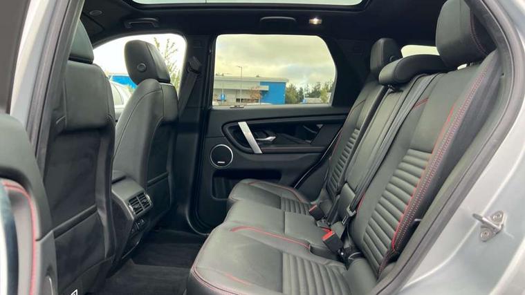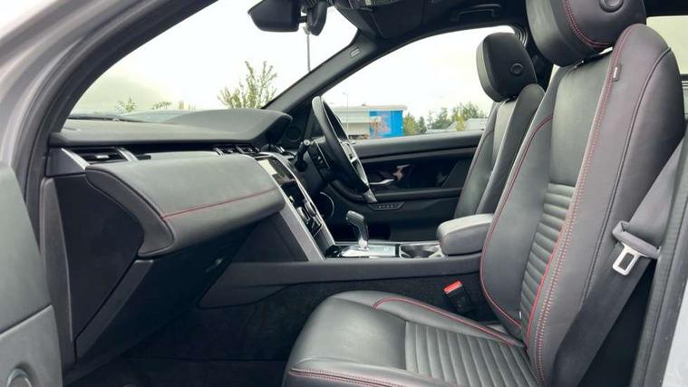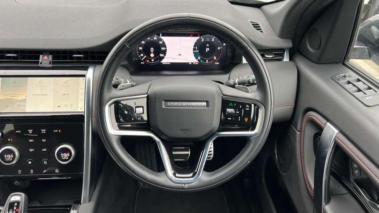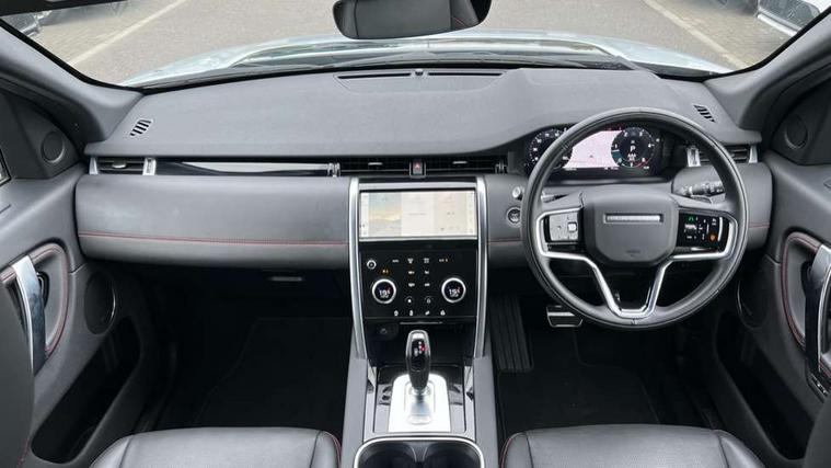10" touch screen, Adaptive cruise control, Android Auto, Apple CarPlay, Blind spot assist, Clear exit monitor, Driver condition monitor, eCall emergency call system, Front and rear parking aid, InControl remote premium, Lane keep assist, Locking fuel flap, PAS, Pivi Pro connected navigation system with upgraded Infotainment, Powered tailgate/boot lid, Push button start, Rear collision monitor, Rear traffic monitor, Service interval indicator, Traffic sign recognition with adaptive speed limiter, Trip computer, Wade Sensing, All terrain progress control, Coil suspension system, Configurable dynamics, Diesel particulate filter, Dynamic stability control, Efficient Driveline, Terrain Response 2, Bluetooth connectivity including audio streaming, Digital Audio Broadcast radio-DAB, Steering wheel mounted audio controls, 3rd brake light, Automatic headlight levelling, Automatic headlights, Black number plate plinth, Electric front/rear windows, Electric heated/power fold door mirrors with approach lights and auto dimming driver side, Front and rear recovery eyes, Front fog lights, Heated rear window, Heated windscreen including heated washer jets, Illuminated metal front treadplates with R dynamic branding, Privacy glass, R Dynamic badge, Rain sensing windscreen wipers, Rear fog lights, Rear side wing doors, Rear wing door, Rear wiper, 2 seat bench in 3rd row, 3 seat bench in 2nd row, Bright metal pedals, Centre console with armrest, Configurable cabin lighting, Electrically adjustable steering column with memory, Footwell lights, Front and rear grab handles, Front passenger isofix child seat attachment, Front passenger seat, Heated steering wheel, Loadspace cover, Loadspace light, Manual third row seats, Overhead lighting console, Overhead stowage for sunglasses, Rear headrests, Satin chrome gearshift paddles, Sunvisors with illuminated vanity mirrors, Tilt/reach adjustable steering wheel, Black exterior pack - Discovery sport R-Dynamic SE/HSE, Online pack with data plan - Discovery, 3 point seatbelts on all seats, ABS, Brake hold function, Child locks on rear doors, Collision mitigation braking system, Cornering brake control (CBC), Driver/Front Passenger airbags, Drivers knee airbag, Electronic brake force distribution, Electronic parking brake, Emergency brake assist, ESP + traction control, Hill descent control, Hill launch assist, Pedestrian airbag system, Rear seat ISOFIX, Roll stability control, Side and curtain airbags for front and 2nd row seats, Trailer stability control, Tyre pressure monitoring system, Battery Back Up System (BBUS) with tilt sensor, Global lock and unlock switch on driver door, Intrusion sensor, Keyless entry, Locking wheel nuts, Centre stack rails in noble chrome,