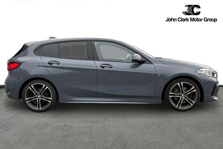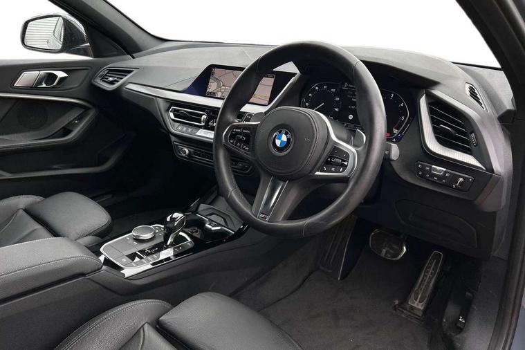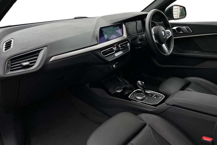 Active guard plus, Attentiveness assist, BMW Online services, BMW Teleservices, Check Control warning system for monitoring of lights and door/luggage compartment open warning, Connected eDrive Services, Eco pro mode, Electric power steering with Servotronic steering optimised at all speed ranges, Integrated owners handbook, Oil sensor for level and grade, On board computer, Optimum shift indicator, Personal Profile, Pull away assistant, Speed limiter, Aluminium lightweight construction, Anti roll bar front and rear, Balancer shaft, Diesel particulate filter, Drive Performance Control, Electronic differential lock, Bluetooth audio streaming, DAB Digital radio, Auto dimming rear view mirror, Automatic headlight beam throw control, Body colour door handles, Body colour mirror caps, Chrome 'M' logo side designation, Chrome exhaust twin tailpipes round 90mm in left and right split, Chrome kidney grille frame with Satin Aluminium struts, Direction indicator side lights in exterior mirrors, Electric folding and anti dazzle exterior mirrors, Fading support, Follow me home headlights, Front and rear electric windows with open and close fingertip control, anti trap facility and comfort closing, Front door sill finishers in black plastic with BMW designation, Green tinted heat protection glazing, Heated, electrically adjustable exterior mirror aspheric on driver side, convex on passenger side, High gloss shadow line exterior trim, High gloss shadowline window frame, Recess cover mirror frames and B/C pillar embelisher trim, High level third brake light, LED daytime running lights, LED eyebrow turn indicators, LED front fog lights, Lightweight engineering, Matt black air guide grilles, Model designation on right side of tailgate, Nearside reverse light in rear light cluster, Preparation for high beam assistant, Rain sensor including auto headlights activation, Rear fog lights, Rear window wiper, Shark fin antenna, Visible VIN plate, Welcome lighting, Windscreen wipers with integrated washing jets, 12V power socket in centre console, 2 cupholders in front centre console, 3 rear seat head restraints, 3 spoke M sports design leather steering wheel finished in nappa leather with specific M badge, Anthracite headlining, Anthracite Velour floor mats, Child seat ISOFIX attachment for two outer rear seats and front passenger seat with anchorage points, Conditioned based service, Dakota leather upholstery with perforation and contrast stitching, Driver and front passenger seat heating, Driver side folding compartment in instrument panel, Folding rear clothes hook, Folding rear seats, Four grab handles integrated in roof lining, Front and rear door pockets, Front and rear side armrest integrated into door trim, Front armrest foldable with integrated storage compartment, Front sports seats with electric side bolster adjustment, Glove compartment, Height adjustable front head restraints, Manual adjust steering wheel, Multi-function controls for steering wheel, Rear seat backrest with manual 60:40 split folding with 3 top tether clips integrated on rear of seat panels, Storage compartment in centre console, Sun visors with vanity mirrors and insert tab, Two zone automatic air conditioning, Connected pack professional - 1 Series, Extended Lighting pack - 1 Series, Extended storage pack - 1 Series, Interior lights pack - 1 Series, Luggage compartment pack - 1 Series, M Sport exterior styling aerodynamics pack - 1 Series, 2 tone horn, 3 point seatbelts on all seats, front pyrotechnic belt tensioners, stopper and belt force limiters, rear coded belt buckles, Airbags - Front driver and passenger, front and rear head, front side, curtain head protection, Anti lock braking system (ABS) with brake assist, BMW emergency call, Brake drying, Braking readiness, Crash sensor activating central locking release, hazard warning lights, fuel cut off, interior lighting + activation of safety battery terminal clamp, Driver and front passenger seat belt security check, Dynamic stability control + (DSC+), Dynamic Traction Control - DTC, Electrically operated hand brake, Front and rear disc brakes, Front passenger manual airbag deactivation, Rear child proof door locks, Seatbelt warning, Side impact protection, Tyre pressure monitoring system, Warning triangle and first aid kit, Automatic drive away locking facility, Central locking switch for all doors, fuel filler cap and luggage compartment, Deadlocking function system to all doors, Incorrect fuel protection system, Locking wheel bolts, Remote control with integrated key with High-gloss Black inlay and M designation and 1 button for open/ close lock, window, open luggage compartment, Start/stop button with comfort go keyless engine start and auto start stop deactivation button, Thatcham Cat.1 alarm and immobiliser, Contrast stitching on instrument panel, Reduced rolling resistance tyres,