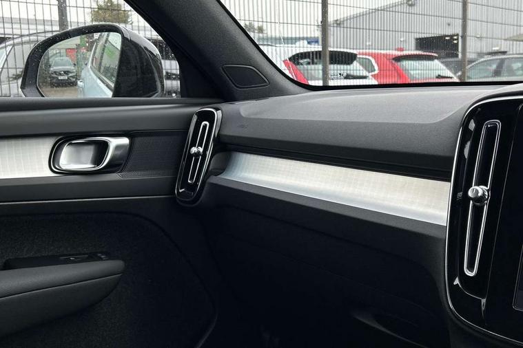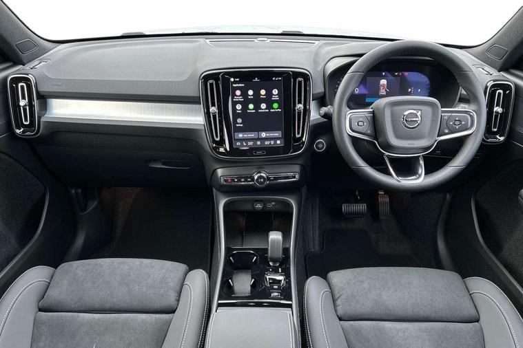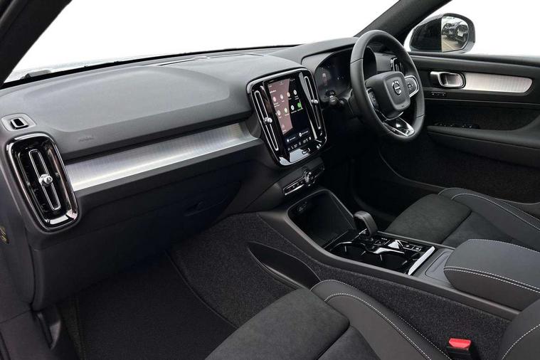 12.3" Progressive Driver Display, 9" centre console portrait touch screen, Adjustable steering wheel force, Android auto (Wired), Apple carplay (wired), Bluetooth handsfree system, Driver alert control, Driver assistance (pilot assist and adaptive cruise control), Driver awareness - Blind spot information system with steer assist, cross traffic alert with autobrake and rear collision warning and mitigation, E-call, Front and rear parking sensors, Front park assist, Google automotive services - Enabled entertainment apps, navigation with google maps, voice recognition with google assistant, Hands free power tailgate, Intelligent speed assistance, Lane keeping aid, Oncoming Lane Mitigation, Speed sensitive steering, Volvo cars services with app - Driving journal, emergency and breakdown call, engine remote start, remote door locking/unlocking and vehicle dashboard, Wireless/Inductive Mobile Phone Charging, Automatic transmission with start/stop and manual change functions, Dynamic chassis, DAB Digital radio, Steering wheel mounted remote controls, Adaptive brake lights with high level LED brake lights, Auto dimming feature for exterior door mirrors, Auto dimming interior mirror, Auto folding and heated power door mirrors, Automatic headlamp levelling, Automatic LED Headlights + Active high beam incorporating daytime running lights, Front aluminium tread plates, Front and rear electric windows, High gloss black front and rear skid plate, High gloss black front bumper deco, High gloss black mesh front grille with high gloss black surround, High gloss black window trim, Home safe and approach lighting, Integrated roof rails in high gloss black, LED front fog lights, Puddle lights, Rain sensor with automatic windscreen wiper activation, Rear side wing doors, Rear wiper, Roof antenna, Roof spoiler, Visible VIN plate, 12V socket in front tunnel console and luggage compartment, 2-Zone electronic climate control with CleanZone air quality system and pollen filter, 3 seat bench in 2nd row, 3 Spoke tailored steering wheel with chrome trim, 60/40 versatile split folding rear seat, Centre console cupholders and storage, Charcoal carpet and floor mats, Charcoal headlining, Connect suede textile/microtech upholstery, Flexible load floor and grocery bag holder, Front headrests, Front seat cushion extensions, Glovebox bag hook, Heated front seats, Height adjustable passenger seat, Height/reach adjustable steering column, High gloss centre tunnel deco, High level illumination - Front door pocket, front side step (under door), tailgate, instrument panel, front door inlay, rear courtesy&reading lights, Integrated waste bin, Isofix attachments on outer rear seats, Load cover, Load protection net, Mid level illumination - Front footwell, luggage & glovebox compartment, front cabin courtesy & reading lights, illuminated vanity mirrors+ticket holder, Multi directional lumbar support for driver and passenger seat, Power driver seat with memory + exterior mirrors memory, Rear armrest with cupholders, Rear headrests, Single front passenger seat, Underfloor luggage compartment storage, Climate pack without heated front seats - XC40, 3x3 point rear seatbelts, City safety with steering support with Pedestrian + cyclist + front collision warning with full auto brake and rear auto brake, Driver and passenger airbags, Drivers knee airbag, Electronic parking brake with auto hold, First aid kit, Front and outer rear seatbelt reminder and pretensioners, Front seats SIPS airbags, Hill descent control - Off-road drive mode, Hill start assist, IC (Inflatable Curtains) - Full Length, Passenger airbag cut-off device, Power child locks on rear doors, Road sign information display, Run off Road Protection, SIPS (Side Impact Protection System), Slippery road and hazard light alert, Stability and Traction Control with Spin control, Engine Drag Control and Corner Traction Control, Tyre pressure monitoring system, Vehicle deceleration control with Anti-lock Brake System, Electronic Brake Distribution and Emergency Brake Assist, Warning triangle, WHIPS whiplash protection system - front, 2 x Key integrated remote control central locking including with deadlocking system and auto open/close windows, Anti-theft alarm including immobiliser/volume sensor + level sensor, Keyless drive includes keyless entry and keyless start, Locking wheel nuts,