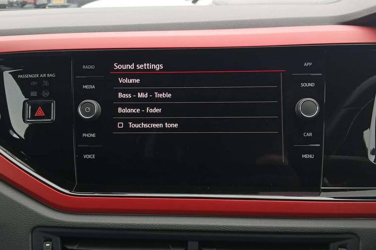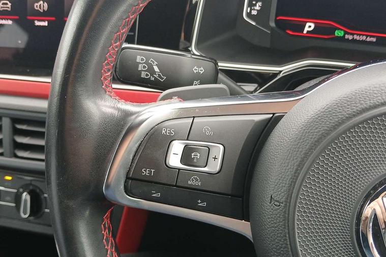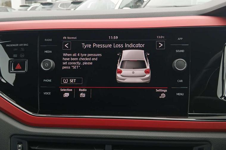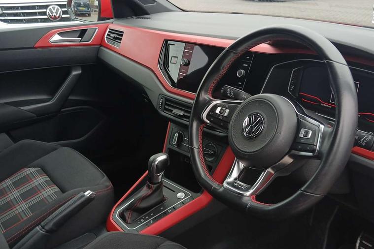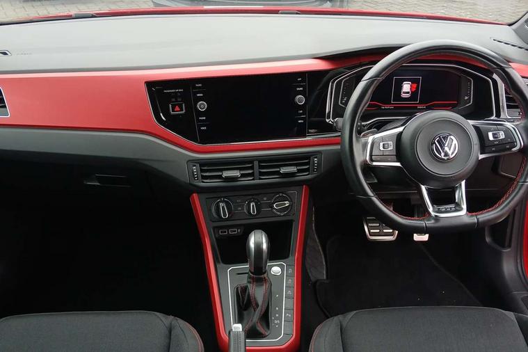 ACC - Adaptive cruise control with front assist, forward collision warning, distance monitoring, city emergency brake and speed limiter, App-Connect, Digital clock, Driver alert system, Driving Mode Selection with four preset modes - Eco, normal, sport or individual modes, Lights on warning, Multifunction computer plus, Power assisted speed sensitive steering, Speedo and rev counter, electronic odometer, trip, service interval display and fuel gauge, Start/stop system, Volkswagen connect, Warning buzzer and light for front seatbelts unfastened, Battery regeneration during braking, Galvanished body, Lowered sports suspension, XDS electronic differential lock, Body colour door handles, Body coloured side sills, Dusk sensor + automatic driving lights, Electric front windows, Electrically foldable, adjustable and heated door mirrors with reverse activated kerb view adjustment on passenger's side, Extended sill strips flared in black, Front fog lights including static cornering, Front windscreen washers and wipers with 4 speed intermittent delay, Gloss black rear spoiler (roof), Heat insulating tinted glass, Heated rear window with auto timer, High level 3rd brake light, Honeycomb radiator grille with red stripe, LED darkened rear light clusters, LED daytime running lights, LED dipped and main beam headlights with automatic range adjustment, LED rear number plate lights, Rear electric windows, Rear tinted glass from B-pillar backwards approx 65% tinted, Rear windscreen washer and wiper with interval delay, reverse activated, Stainless steel door sill protections with GTI logo, Twin chrome exhaust tailpipes, Unique GTI badging, 2 bag hooks in luggage compartment, 2 front cupholders and 12 V socket with cover, 3 rear head restraints, 60/40 split folding rear seat, AlumInium look pedals, Ambient lighting in front foorwell, front/rear door and dashboard light strips, Black roof lining and sun visors, Centre console storage with open storage compartment, Chrome-plated electric mirror adjustment switch surround, Chrome-plated electric window button surround, Driver and front passenger sunvisors with illuminated vanity mirrors, Dust/pollen filter, Folding rear seat backrest, Front and rear carpet mats with red stitching, Front centre armrest with storage compartment, Front head restraints, Front seat backrest storage pockets, Gear change selection via paddle shift on steering wheel, Gear lever gaiter in black trim surround, Glovebox, Handbrake grip button in chrome effect, Height/reach adjustable steering column, Instrument lighting, adjustable panel illumination, Interior light with delay, Isofix Preparation 2 Rear child seats, Jack and tool kit, Leather gear knob and handbrake grip, LED interior lighting - 2 reading lights front and rear with interior delay and dimming function, Luggage compartment cover, removable, Luggage compartment lighting, Luggage compartment with variable load floor, Storage compartment in front doors, Storage compartment in rear doors, Storage compartment under front seats, Three spoke leather trimmed multifunction steering wheel with GTI logo and red contrast stitching, GTI styling pack - Polo, Light and sight pack - Polo, 3 point height adj front seatbelts + pretensioners, 3x3 point rear seatbelts, ABS, Automatic post collision braking, Driver/front passenger airbag, Drivers and front passengers safety optimised head restraints, ESP with EDL + ASR, Front and rear passenger curtain airbags, Front passenger airbag deactivation, Front seat side impact airbags, Front/rear disc brakes, Hill hold control, Hydraulic Brake Assist (HBA), Red brake calipers, Single tone horn, Tyre pressure monitoring system, Alarm with interior protection and deactivation via infotainment system, Electronic engine immobiliser, Remote central locking with 2 remote folding keys, Remote keyless entry using key fob including Start/Stop button on centre console, Chrome instrument surround detailing, Chrome plated air vent surround, Gloss black instrument surrounds, Steel space saver spare wheel,