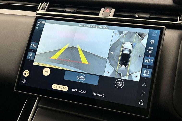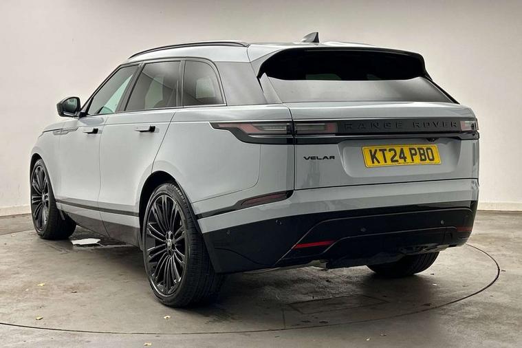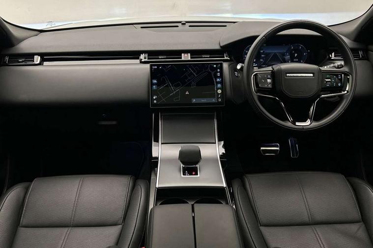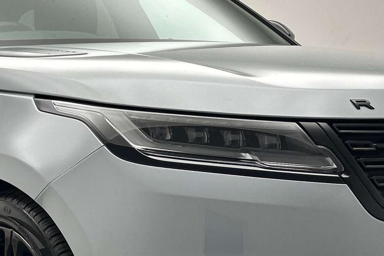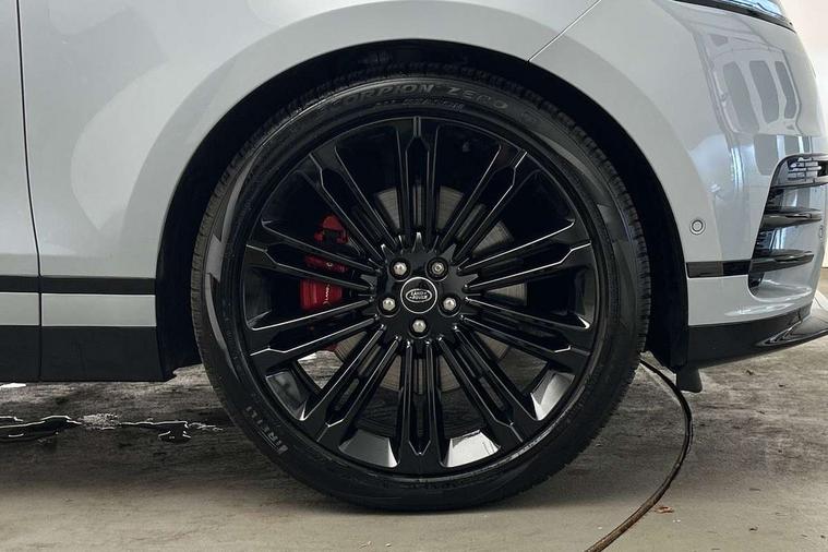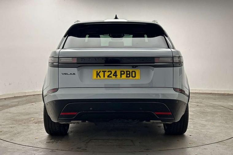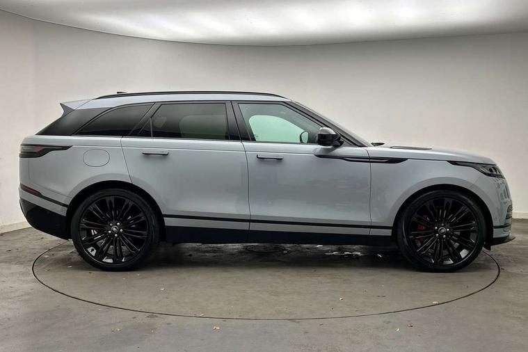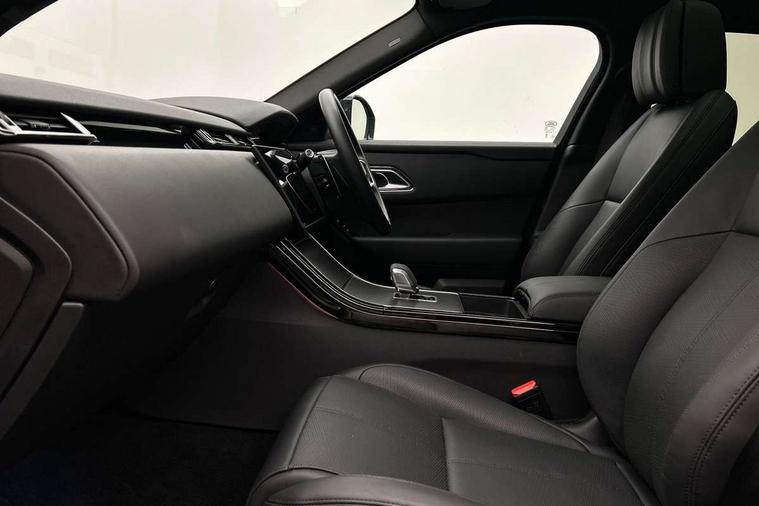 Adaptive cruise control with steering assist, Android Auto, Apple CarPlay, Blind spot assist, Bluetooth connectivity, Brake pad wear indicator warning light, Driver condition monitor, eCall emergency call system, Front and rear parking aid, InControl remote, Land Rover InControl apps, Lane keep assist, Pivi pro with connected navigation, Rear collision monitor, Rear traffic monitor, Service indicator, Speed proportional electronic power assisted steering (EPAS), Traffic sign recognition with adaptive speed limiter, Trip computer, Voice control system, Wireless device charging, 8 speed automatic transmission, Adaptive dynamics, All terrain progress control, Electronic air suspension, Open differential with torque vectoring by braking, Single speed transfer box, DAB radio, Steering wheel mounted controls, 3rd brake light, Acoustic laminated windscreen, Auto dimming interior rear view mirror, Automatic headlamp levelling, Automatic headlights, Body coloured bumpers, Boot protection plate, Electric windows with one touch open/close and anti trap, Flush deployable exterior door handles, Follow me home headlights, Heated rear window with timer, Heated washer jets, Heated windscreen, Metal front tread plates, Metal load space scuff plates, Pixel LED headlights with signature DRL, Power fold, auto-dimming, heated door mirrors with memory and approach lights, Rain sensor windscreen wipers, Rear animated directional indicators, Rear fog lights, Rear side wing doors, Rear wash/wipe, Tailgate/boot lid spoiler, Trailer stability assist, Velar badge, 3 seat bench in 2nd row, Ambient lighting, Bright metal pedals, Carpet mats, Driver/passenger sunvisors with illuminated vanity mirrors, Ebony morzine headlining, Electrically adjustable steering column, Extended leather upgrade, Heated steering wheel, Isofix system on outer rear seats, Loadspace cover, Overhead lighting console, Overhead stowage for sunglasses, Passive front headrests, Rear air vents, Rear centre headrest, Single front passenger seat, Twin front cupholders, Twin sliding front centre armrest, Online pack with data plan - Velar, Power socket pack 2 - Velar, 380mm front brakes and 325mm rear brakes, 3x3 point rear seatbelts, Anti-lock braking system (ABS), Cornering brake control, Curtain airbags, Customer configurable autolock, Door side intrusion beams, Driver airbag, DSC - Dynamic Stability Control, Electronic brake force distribution, Electronic parking brake, Electronic traction control, Emergency braking, Front and rear seatbelt reminder, Hill descent control, Hill launch assist, Low traction launch, Passenger airbag, Power operated child locks, Rear airbags, Roll stability control, Side airbags, Tyre pressure monitoring system (TPMS), Global lock and unlock switch on driver door, Immobiliser, Intrusion sensor, Keyless entry, Lock only switch on front passenger door, Locking wheel nuts, Perimetric alarm, Remote central locking, All season tyres,