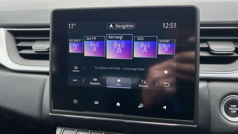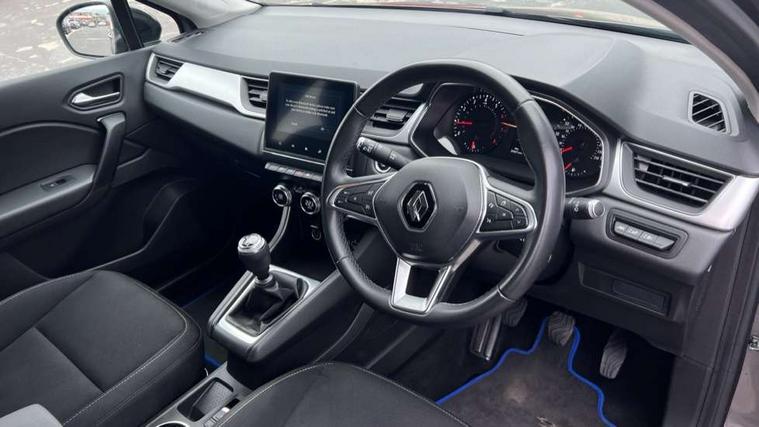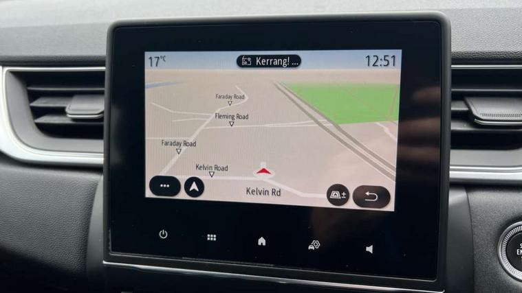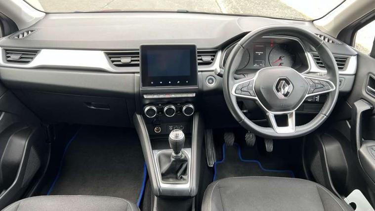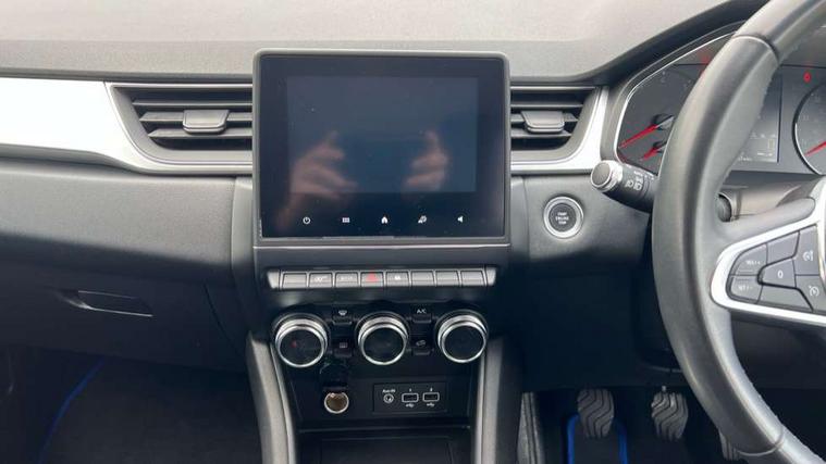 4.2" TFT Driver information display, Cruise control + speed limiter, eCall emergency call system, Eco mode, Gear change indicator, Lane departure warning system, Lane keep assist, Renault automatic emergency assist, Traffic sign recognition, Trip computer, Variable assistance power steering, EasyLink Nav 7" touchscreen, 4x20W amp, FM DAB, sound auditorium, 2xUSB, 1xJack, Bluetooth, smartphone integration plus, Apple carplay/Android auto, Automatic front wipers with rain sensors, Automatic headlights, Body colour door handles, Body coloured bumpers, Body coloured door mirrors, Electric adjustable/heated/folding door mirrors, Electric front windows + one touch + anti-pinch, Electric rear windows, Extra tinted glass in rear windows and tailgate, Full LED front and rear headlamps integrating daytime running lights at the front and rear, Gloss black side door protection with chrome effect, LED front fog lights, Rear fog lights, Rear wiper, Roof bars, Variable speed on front windscreen wipers, 12V Accessory socket, 3 rear headrests, 5.2L front glovebox, 60/40 split folding rear seat bench, Automatic climate control with one touch demist function, Centre console storage tray, Cloth upholstery, Front head restraints, Heating system with pollen filter, Height adjustable driver's seat, Height/reach adjust steering wheel, ISOFIX child seat fixing points on rear outermost seats, Middle console with armrest and storage, Rear air vents, Synthetic leather steering wheel, 3 rear seatbelts, ABS+EBA, AEBS, Distance warning alert, Driver and front passenger, side, head and curtain airbags, Driver height adjustable seat belt, Electric parking brake, Electronic stability control, Front and rear no seatbelt warning sound, Front dash warning indicator in case of heavy braking, Front driver and passenger side airbag deactivation, Hill start assist, Rear door and window child locking function for rear door, Tyre pressure warning light, Anti drill door locks and locking fuel cap, Deadlocking system, Hands free keycard with push button and start/stop function, RAID (Renault Anti-Intruder Device) automatic door locking, Remote central locking with thatcham approved immobiliser, Black soft touch dashboard with black gloss air vent surrounds,