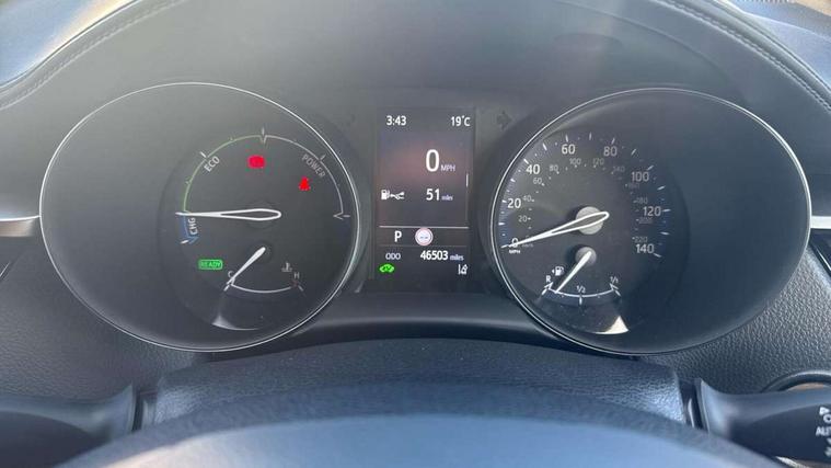 4.2" coloured TFT screen for multi-information display, Adaptive cruise control, Apple car play and Android auto, Blind spot monitoring with rear cross traffic alert, Bluetooth connectivity, E-call, Electric power steering, Front parking sensors with ICS and auto braking, Hybrid system indicator, Lane departure alert with steering control, Lane trace assist, Push button tailgate release, Rear parking sensors with ICS, Remote boot door release in cabin, Remote boot door release in key, Reversing camera, Road sign assist - RSA, Simple Intelligent parking assist, Smart entry and push button start, Smart voice assist, Touch 2 Go navigation system, Trip computer, Voice recognition, Wireless smartphone integration, Vehicle Stability Control (VSC), 6 speakers, AM/FM radio, DAB Radio (Digital Audio Broadcasting), Toyota touch 2 multimedia system with 8" display, USB connector, Wi-fi connectivity, Anti-jam protection on power windows, Auto dimming rear view mirror, Auto high beam, Auto up and down function on all power windows, Automatic headlights, Automatic headlights cut-off, Automatically retractable door mirrors, Black and body coloured rear bumper, Black lower front grille, Black upper front grille, Body colour door handles, Body colour door mirrors, Body colour front spoiler lip, Body coloured front bumper, Boot door release with push button, Electric heated door mirrors, Follow me home headlights, Front and rear power windows, Front fog lights, Headlight cut off reminder, Honeycomb lower front grille, LED daytime running lights, LED High mounted stop light, LED rear brake lights, LED rear combination lights, Manual headlight levelling, Noise reduction layer on front windows and windscreen, Power adjustable door mirrors, Privacy glass, Rain sensor, Rear side wing doors, Rear spoiler, Rear tailgate, Rear window defogger, Rear window wiper, Reflective LED headlights, Shark fin antenna, UV-filter on driver and passenger windows, UV-filter on rear windows, Variable front intermittent wipers, 12v power outlet - front, 3 rear headrests, 3 seat bench in 2nd row, 3 spoke leather steering wheel, 60/40 split folding 2nd row rear seats, Adjustable rear headrests, Adjustable speed limiter switch on steering wheel, Assist grips front and centre pillar, Audio and telephone switches on steering wheel, Black front door assist grips, Blue ambient lighting on front cup holders, Blue ambient lighting on front doors, Boot light, Chrome interior door handles, Cloth upholstery, Driver and front passenger personal light, Driver and front passenger Whiplash Injury Lessening seats, Driver and passenger seatback pockets, Dual zone automatic air conditioning, Floor mats, Front cupholders, Front head restraints, Front sports seats, Glovebox with internal light, Hard tonneau cover, Heated driver and front passenger seats, Hooks for luggage holding net, Humidifying Nanoe air purifier, Illuminated entry system, Isofix attachments on outer rear seats, Leather gearshift, Light on driver sun visor, Light on passenger sun visor, Manual telescopic steering wheel, Manual tilt steering wheel, Manually height adjustable driver seat, Manually height adjustable front passenger seat, Manually reclining driver seat, Manually reclining front passenger seat, Manually sliding driver seat, Manually sliding front passenger seat, Microphone on front personal light, Mirror on driver sun visor, Mirror on passenger sun visor, Multimedia switches on steering wheel, Pollen filter, Power adjustable lumbar support on driver seat, Shopping bag hooks, Single front passenger seat, Slow opening on lower glovebox, Voice recognition switch on steering wheel, 16 Disk front wheel brake, 3x3 point rear seatbelts, ABS+EBD+Brake assist, Electronic parking brake, Front and rear seatbelt reminder, Front passenger airbag on/off switch, Hill start assist control (HAC), Pre collision system with pedestrian detection, Pre-tensioners and force limiters, Rear door child safety locks, SRS Airbags - Driver + Front passenger, front side, front and rear curtain and driver's knee airbags, Toyota safety sense, Tyre pressure monitoring system, Tyre pressure warning system, Acoustic vehicle alert system (AVAS), Glass-breaking alarm sensors, Immobiliser, Intrusion alarm, Intrusion sensor, Motion sensor alarm, Power door locks, Power passenger window lock, Remote central locking, Black lower dashboard, Black upper dashboard, Gunmetal deco line on upper dashboard, Piano black console, Tyre repair kit,