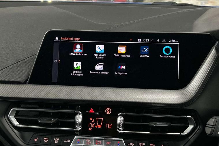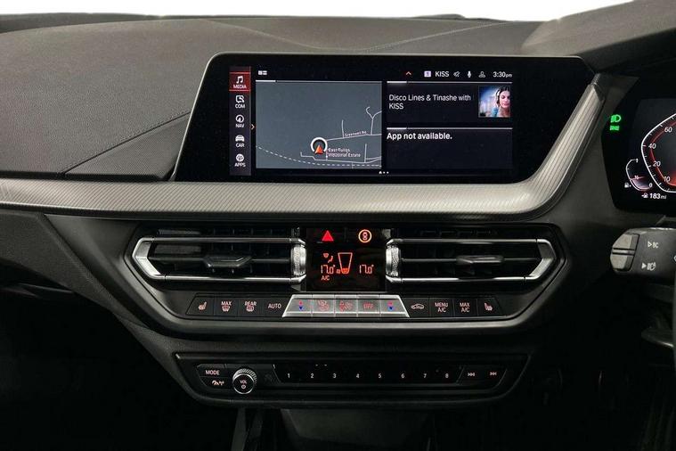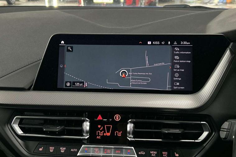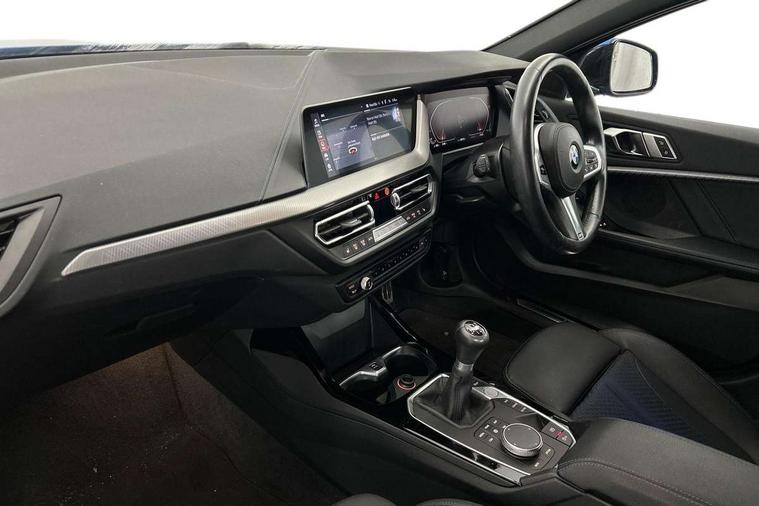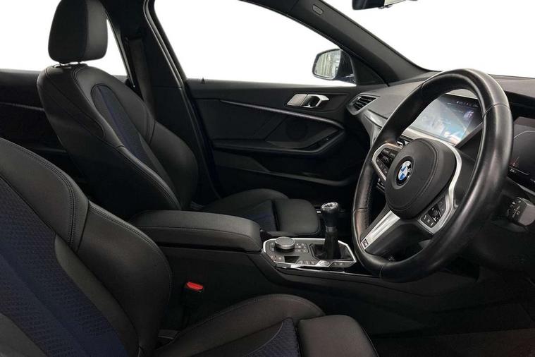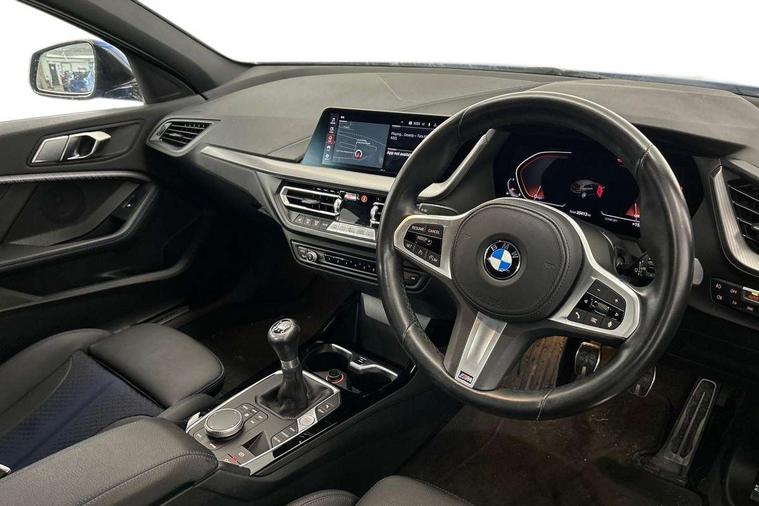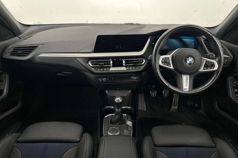 Contrast stitching on instrument panel, Additional interior lighting pack - 1 Series, Connected pack professional - 1 Series, Extended storage pack - 1 Series, Interior lights pack - 1 Series, Luggage compartment pack - 1 Series, M Sport exterior styling aerodynamics pack - 1 Series, Reduced rolling resistance tyres, Automatic drive away locking facility, Central locking switch for all doors, fuel filler cap and luggage compartment, Deadlocking function system to all doors, Locking wheel bolts, Remote control with integrated key with High-gloss Black inlay and M designation and 1 button for open/ close lock, window, open luggage compartment, Start/stop button with comfort go keyless engine start and auto start stop deactivation button, Thatcham Cat.1 alarm and immobiliser, Bluetooth audio streaming, DAB Digital radio, 2 tone horn, 3 point seatbelts on all seats, front pyrotechnic belt tensioners, stopper and belt force limiters, rear coded belt buckles, Airbags - front driver/passenger, front & rear curtain, front side, Anti lock braking system (ABS) with brake assist, BMW emergency call, Brake drying, Braking readiness, City braking function, Crash sensor activating central locking release, hazard warning lights, fuel cut off, interior lighting + activation of safety battery terminal clamp, Driver and front passenger seat belt security check, Dynamic stability control + (DSC+), Dynamic Traction Control - DTC, Electrically operated hand brake, Front and rear disc brakes, Front passenger manual airbag deactivation, Seatbelt warning, Side impact protection, Tyre pressure monitoring system, Warning triangle and first aid kit, Auto dimming rear view mirror, Automatic headlight beam throw control, Automatic windscreen wipers and automatic headlight, Body colour door handles, Body colour mirror caps, Chrome 'M' logo side designation, Chrome exhaust tailpipe in single, round (Exhaust tailpipe, stainless steel - single, round), Chrome kidney grille frame with Satin Aluminium struts, Direction indicator side lights in exterior mirrors, Electric folding and anti dazzle exterior mirrors, Fading support, Follow me home headlights, Front and rear bumper system with replaceable deformation elements, Front and rear electric windows with open and close fingertip control, anti trap facility and comfort closing, Front door sill finishers in black plastic with M designation in metallic look, Green tinted heat protection glazing, Heated, electrically adjustable exterior mirror aspheric on driver side, convex on passenger side, High gloss shadowline window frame, Recess cover mirror frames and B/C pillar embelisher trim, High level third brake light, LED daytime running lights, LED eyebrow turn indicators, LED front fog lights, Lightweight engineering, Matt black air guide grilles, Model designation on right side of tailgate, Nearside reverse light in rear light cluster, Preparation for high beam assistant, Rain sensor including auto headlights activation, Rear fog lights, Rear window wiper, Shark fin antenna, Visible VIN plate, Welcome lighting, 12V power socket in centre console, 3 rear seat head restraints, 3 spoke M sports design leather steering wheel finished in nappa leather with specific M badge, Anthracite headlining, Anthracite Velour floor mats, Child seat ISOFIX attachment for two outer rear seats and front passenger seat with anchorage points, Conditioned based service, Dakota leather upholstery with perforation and contrast stitching, Driver and front passenger seat heating, Folding rear clothes hook, Four grab handles integrated in roof lining, Front and rear door pockets, Front and rear door pockets with bottle holders, Front and rear side armrest integrated into door trim, Front Armrest foldable with integrated storage compartment, Front sports seats with electric side bolster adjustment, Gearshift lever with M designation, Glove compartment, Height adjustable front head restraints, Manual adjust steering wheel, Multi-function controls for steering wheel, Storage compartment in centre console, Sun visors with vanity mirrors and insert tab, Two zone automatic air conditioning, Active guard plus, Attentiveness assist, BMW Online services, BMW Teleservices, Check Control warning system for monitoring of lights and door/luggage compartment open warning, Connected eDrive Services, Cruise control with brake assist, Eco pro mode, Integrated owners handbook, Lane departure warning system, Oil sensor for level and grade, On board computer, Optimum shift indicator, Personal Profile, Pull away assistant, Speed limiter, 6 speed manual transmission, Aluminium lightweight construction, Anti roll bar front and rear, Balancer shaft, Double VANOS, Drive Performance Control, Electronic differential lock, High precision injection, M sport suspension, Petrol Particulate Filter, VALVETRONIC engine management,