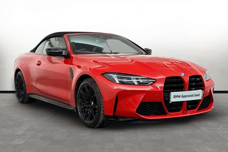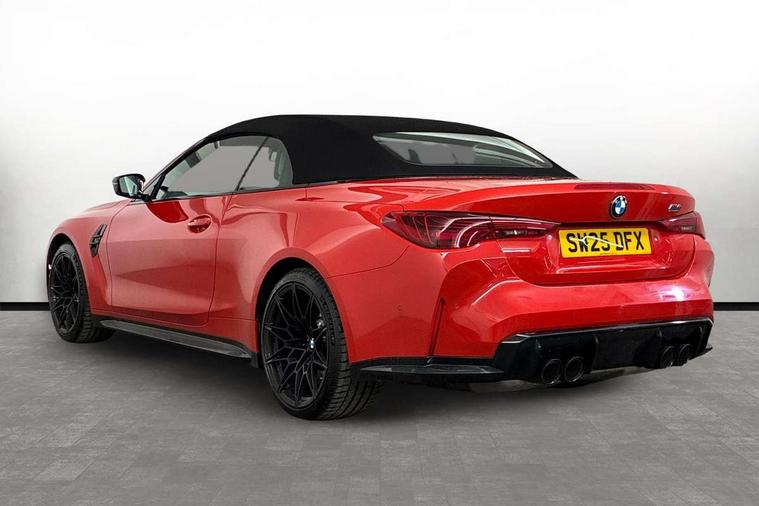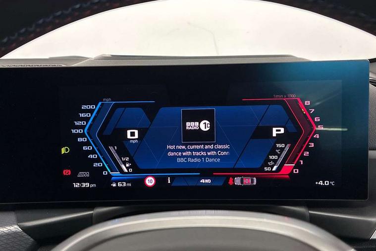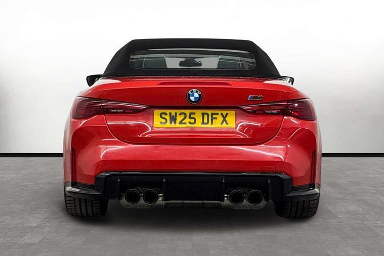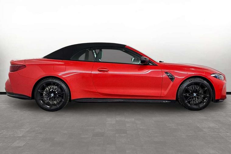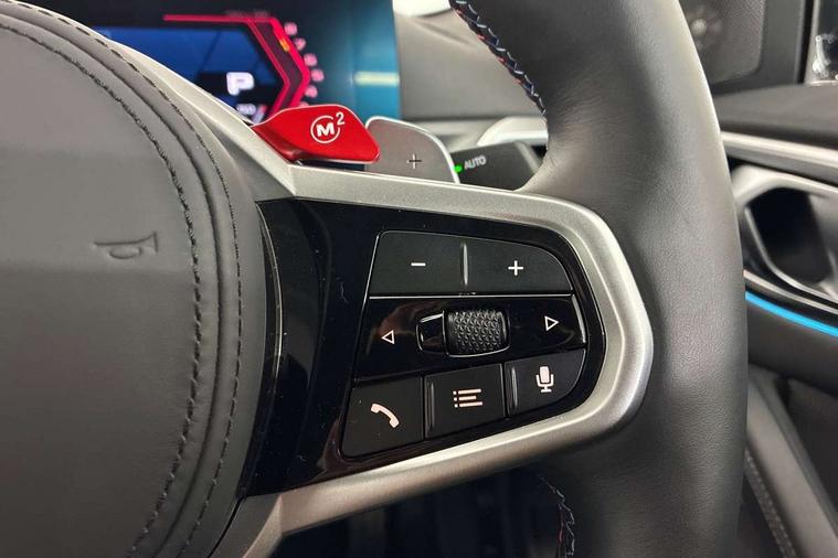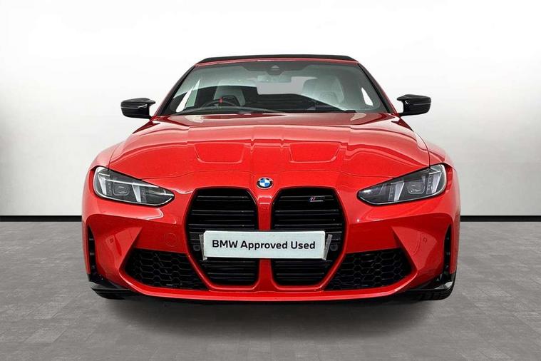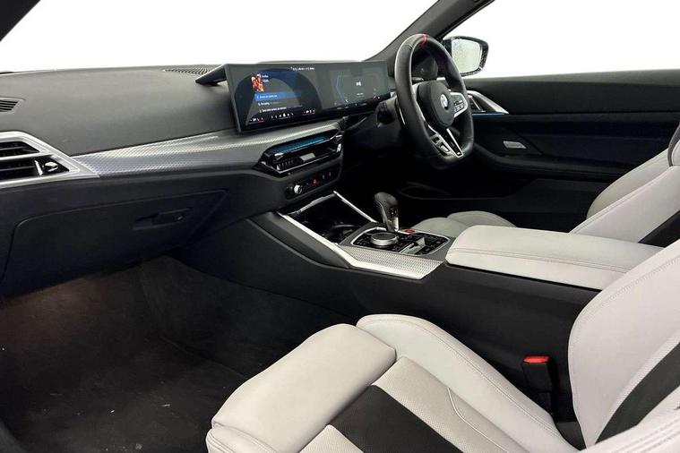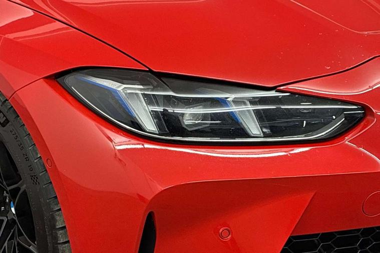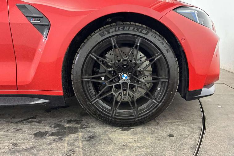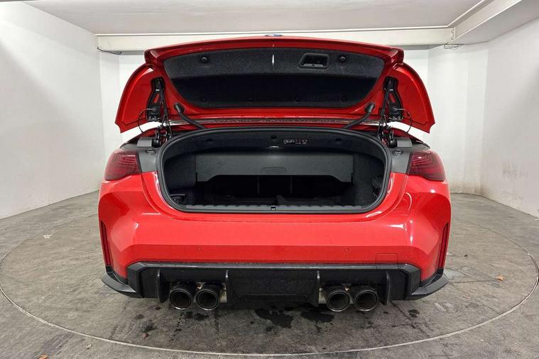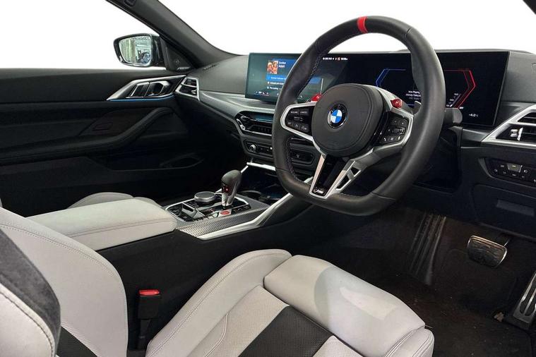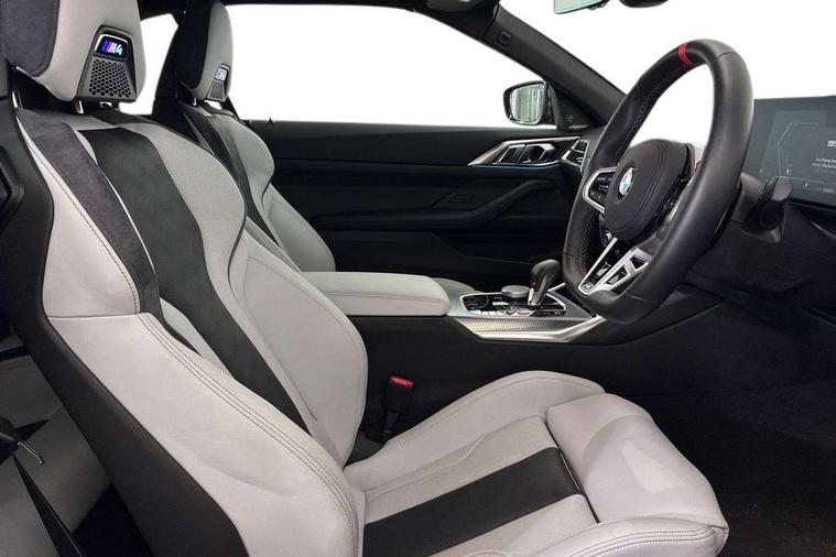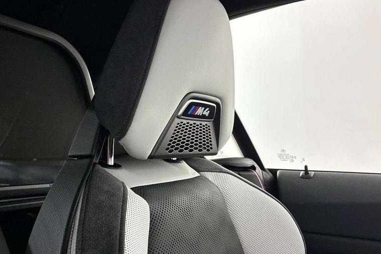 Active Guard, Automatic start/stop system, BMW ConnectedDrive online services, BMW legal emergency call, BMW Live Cockpit Pro with Head up display including 12.3" instrument display and 14.9" high resolution control display with navigation function, BMW Teleservices, Brake pad wear indicator warning light, Condition based service, Cruise control with braking function, Door/boot open warning light, Electric Power Steering (EPS) with Servotronic, Language version English, Lights on warning, M drive buttons, Oil sensor for level and grade, warning by check control system, Oil temperature gauge, On board computer, On board diagnostics, Optimum shift indicator, Outside temperature display, Park distance control, Pull away assistant, Run flat indicator, Service interval indicator, Shifting point display, Smartphone integration, Speed limiter, Start/stop button in red, Variable sport steering, Double joint spring strut front axle, M Adaptive suspension, M Drive Professional including track mode, laptimer, traction control & Drift analyser, M Sport differential, Safety battery terminal clamp, Sport automatic transmission with gearshift paddles, Auxiliary point for auxiliary devices, DAB radio with bluetooth music capability, Harman kardon surround sound audio system, Personal eSim, Acoustic laminated side glass, Auto dimming driver's door mirror, Automatic headlights + automatic windscreen wipers, Automatic parking function on front passenger's exterior mirror, Black chrome exhaust tailpipes, Black model designation badges, BMW high gloss shadow line with extended contents, BMW radiator grille, frameless, with horizontal double blind slats, black high-gloss, with model badge, Body colour bumpers, Bonnet and tailgate badge, Carbon fibre reinforced plastic (CFRP) roof, Day time running light, Door mirror integrated indicators, Dynamic brake lights, Electric adjustable heated door mirrors, Electric folding door mirrors, Electrochromic exterior driver side mirror, Electrochromic interior rear view mirror with automatic anti-dazzle function, Entry sills with aluminium inserts and model badge, Extended Stroage, Follow me home headlights, Front and rear bumper system, Front and rear plastic apron in vehicle colour, Front door sill strips in aluminium inlays with M4 inscription, Front electric windows with open and close fingertip control, anti trap facility and comfort closing, Headlight beam throw control, Heated washer jets, High gloss black lower bumper edges, side sills and diffuser edge binding, LED tail lights with 3D L-shaped LED light design, M designation, Mirror glass aspheric on driver's side, convex on passenger side, Rain sensor, Rear boot, Rear fog lights, Rear reflectors, Reversing light, Roof fin and roof trim strips in Black high-gloss, Shark fin roof aerial, Strakes in front side panel, black matt/high-gloss black, with model badge, Third brake light, Visible VIN plate, Welcome lighting, 2 cupholders in front centre console, 2 cupholders in rear armrest, 2 rear head restraints, 2 x 12 V Power sockets (luggage compartment and front centre console), 2 x USB Type C ports for charging and data transmission in front centre console, 40:20:40 split folding rear 2 seat bench with loading system, Ambient inside door handle light, Ambient lighting for storage compartment, Ambient lighting front and rear, Anthracite headlining, Battery in luggage compartment, Centre console armrest with storage compartment, Contour lighting for door trim, Driver/passenger sunvisors with ticket holders + illuminated vanity mirrors, Driving experience mode switch, Dual zone automatic air conditioning, Dynamic ambient interior lighting, Electric front seats + driver memory, English handbook, Floor mats in velour, Front and rear door exit lights, Front door storage bins with bottle holder, Front footwell ambient lighting, Front interior light, Front isofix attachment + airbag deactivation, Front reading light, Front seat backrest width adjustment, Front/rear door armrests, Heated front seats, Height adjustable front headrests, Illuminated bow-type door handles in vehicle colour, driver's side with door lock, Interior mirror lighting, Isofix on 2nd row seats, Lockable/illuminated glovebox, Luggage compartment lighting, Multifunction steering wheel, Rake/reach adjustable steering wheel, Single front passenger seat, Storage compartment in rear doors, Storage tray and compartment with cover in centre console, Through loading system, Toolkit located in luggage compartment, Waterfall lighting for central air vent, Wireless charging tray, Connected package professional - M4, Extended storage pack - M3/M4, High gloss shadowline exterior trim pack - M4, 4 x 3 point seatbelts, ABS/EBD, Automatic Stability Control (ASC), Brake energy regeneration, Brake fade compensation, Compound structure brake discs, Cornering brake control (CBC), Crash sensor, Curtain airbags, Driver/Front Passenger airbags, Dry braking, Dynamic brake control, Dynamic stability control + (DSC+), Dynamic Traction Control - DTC, Electromechanical parking brake, Electronic differential lock control (EDLC), Front and rear head airbags, Front seat side impact airbags, Front seatbelt pretensioners + load limiters, Hill start assist, M Sport seat belts, Seat occupancy detection for driver and passenger side, Seatbelt warning, Side impact protection, Two tone horn, Tyre pressure sensor, Warning triangle and first aid kit, Centre lock switch, Closing system with central locking, Electronic immobiliser, Locking wheel bolts, Remote central locking, Thatcham cat 1 remote alarm, Vehicle Key with 4 buttons including the integrated key, Galvanic embellisher for controls, Tyre repair kit,