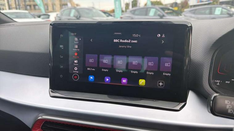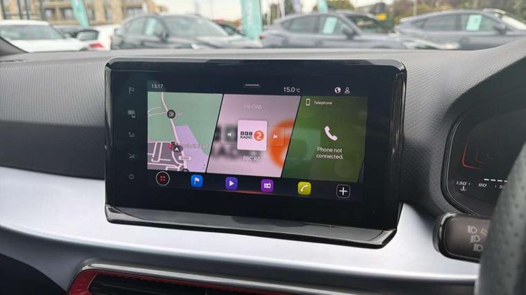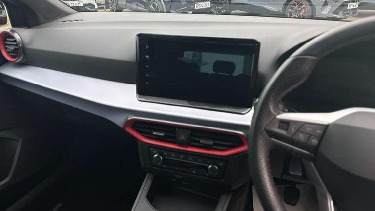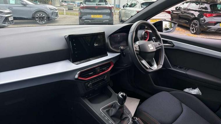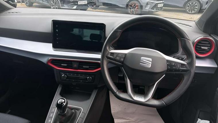 'Lights On' Reminder warning buzzer, 8" Digital cockpit, 9.2" touchscreen navigation system with type C USB socket, Voice control and DAB/AM/FM radio, Auto start and stop system, Bluetooth audio streaming with handsfree system, Digital clock, E-call, Full link smartphone integration with mirror link, wireless apple carplay, Google android auto + USB Type C cable for apple and android devices, Lane assist, Low fuel warning light, Outside temperature gauge, Power Steering, Rear parking sensor, Seat connect plus with safety, service, remote and online, SEAT logo boot release, Speed limiter, Traffic sign recognition, Trip computer, Sports suspension, Auxiliary input socket, Radio/MP3 player, SD card slot, Steering wheel mounted controls, Anti theft roof antenna, Auto dimming rear view mirror, Automatic rain sensing wipers, Black door mirror caps, Body colour bumpers, Body colour door handles, Brilliant black window surrounds, Dark tinted rear windows, Electric adjustable/heated/folding door mirrors, Electric front windows, Electric headlight adjustment, Electric rear windows, Front/rear fog lights, FULL LED automatic headlights with dynamic headlight range control, coming and leaving home, LED daytime running lights, LED tail lights, Rear roof spoiler with FR twin exhausts, Rear side wing doors, Rear wiper, Third brake light, 3 seat bench in 2nd row, 60/40 split folding rear seat, Ambient interior lighting, Chrome detailing and black headlining, Cloth upholstery, Dual zone climate control with combination filter, Front courtesy lights, Front cupholders x 2, Front reading lights, Gear shift indicator, Glovebox, Height adjustable front and rear headrests (five), Height adjustable front seats, Height/reach adjust steering wheel, Illuminated air vent surrounds, Illuminated boot, Instrument lighting with brightness control, Isofix, Leather multifunction flat bottomed sports steering wheel, Passenger sunvisor, Single front passenger seat, Sports seats, Sunvisors with mirror and driver side card holder, Safety and driving pack (S) - Ibiza, 3 point seatbelts on all 3 rear seats, ABS, Active front headrests, Child locks on rear doors, Electronic stability control, Energy recovery system, Front driver and passenger side airbags with curtain airbag and front passenger airbag deactivation, Hill hold control, Multi-Collision braking, Seat belt reminder for front and rear seats, Tiredness recognition system, Tyre pressure monitoring system, Electronic engine immobiliser, Locking wheel bolts, Perimeter alarm and interior monitoring inc.backup horn, tow away protection and electronic engine immobiliser, Remote central locking + deadlocks, 17" Alloy wheels in Brilliant silver,
