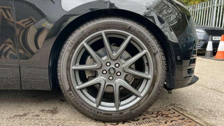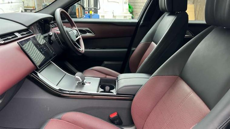 Adaptive cruise control with steering assist, Android Auto, Apple CarPlay, Blind spot assist, Bluetooth connectivity, Brake pad wear indicator warning light, Driver condition monitor, eCall emergency call system, Front and rear parking aid, InControl remote, Land Rover InControl apps, Lane keep assist, Pivi pro with connected navigation, Rear collision monitor, Rear traffic monitor, Service indicator, Speed proportional electronic power assisted steering (EPAS), Traffic sign recognition with adaptive speed limiter, Trip computer, Voice control system, 8 speed automatic transmission, Adaptive dynamics, All terrain progress control, Open differential with torque vectoring by braking, Single speed transfer box, DAB radio, Steering wheel mounted controls, 3rd brake light, Acoustic laminated windscreen, Auto dimming interior rear view mirror, Automatic headlamp levelling, Automatic headlights, Black roof rails, Body coloured bumpers, Boot protection plate, Electric windows with one touch open/close and anti trap, Flush deployable exterior door handles, Follow me home headlights, Heated rear window with timer, Heated washer jets, Metal front tread plates, Metal load space scuff plates, Pixel LED headlights with signature DRL, Power fold, auto-dimming, heated door mirrors with memory and approach lights, Rain sensor windscreen wipers, Rear animated directional indicators, Rear fog lights, Rear side wing doors, Rear wash/wipe, Tailgate/boot lid spoiler, Trailer stability assist, Velar badge, 3 seat bench in 2nd row, Ambient lighting, Bright metal pedals, Carpet mats, Driver/passenger sunvisors with illuminated vanity mirrors, Ebony morzine headlining, Electrically adjustable steering column, Heated steering wheel, Isofix system on outer rear seats, Loadspace cover, Overhead lighting console, Overhead stowage for sunglasses, Passive front headrests, Rear air vents, Rear centre headrest, Single front passenger seat, Twin front cupholders, Twin sliding front centre armrest, Online pack with data plan - Velar, Power socket pack 2 - Velar, 355mm Front and 325mm Rear brakes, 3x3 point rear seatbelts, Anti-lock braking system (ABS), Cornering brake control, Curtain airbags, Customer configurable autolock, Door side intrusion beams, Driver airbag, DSC - Dynamic Stability Control, Electronic brake force distribution, Electronic parking brake, Electronic traction control, Emergency braking, Front and rear seatbelt reminder, Hill descent control, Hill launch assist, Low traction launch, Passenger airbag, Power operated child locks, Rear airbags, Roll stability control, Side airbags, Tyre pressure monitoring system (TPMS), Global lock and unlock switch on driver door, Immobiliser, Intrusion sensor, Keyless entry, Lock only switch on front passenger door, Locking wheel nuts, Perimetric alarm, Remote central locking,