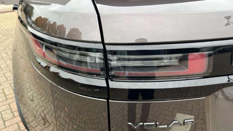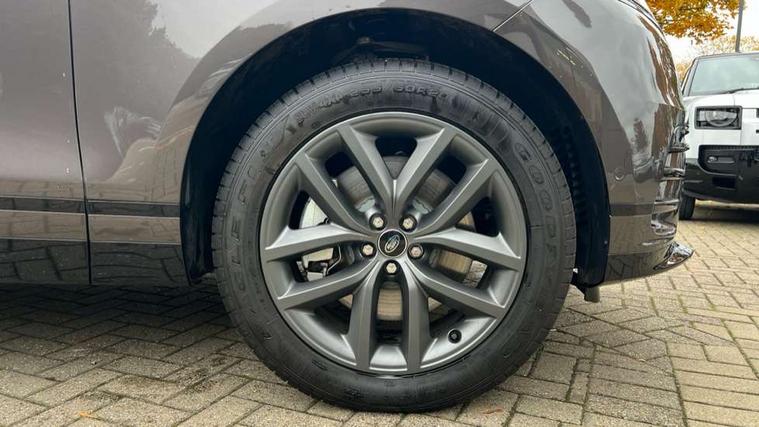 3D surround camera includes forward traffic detection and vehicle guidance, Android Auto, Apple CarPlay, Blind spot assist, Bluetooth connectivity, Brake pad wear indicator warning light, Driver condition monitor, eCall emergency call system, Front and rear parking aid, InControl remote, Land Rover InControl apps, Lane keep assist, Pivi pro with connected navigation, Rear traffic monitor, Service indicator, Speed proportional electronic power assisted steering (EPAS), Traffic sign recognition with adaptive speed limiter, Trip computer, Voice control system, Wade Sensing, Wireless device charging, 7kw on board charger, 8 speed automatic transmission, AC/DC charging, Adaptive dynamics, All terrain progress control, Coil suspension system, Home charging cable, Open differential with torque vectoring by braking, Public charging cable, Single speed transfer box, DAB radio, Steering wheel mounted controls, 3rd brake light, Acoustic laminated windscreen, Auto dimming interior rear view mirror, Auto high beam assist, Automatic headlamp levelling, Automatic headlights, Body coloured bumpers, Boot protection plate, Electric windows with one touch open/close and anti trap, Flush deployable exterior door handles, Follow me home headlights, Heated rear window with timer, Heated washer jets, Heated windscreen, LED headlights with signature DRL, Metal front tread plates, Metal load space scuff plates, Power fold, auto-dimming, heated door mirrors with memory and approach lights, Rain sensor windscreen wipers, Rear animated directional indicators, Rear fog lights, Rear side wing doors, Rear wash/wipe, Tailgate/boot lid spoiler, Trailer stability assist, Velar badge, 14 way electrically adjustable front seats with driver's memory function, 3 seat bench in 2nd row, Ambient lighting, Bright metal pedals, Carpet mats, Driver/passenger sunvisors with illuminated vanity mirrors, Ebony morzine headlining, Electrically adjustable steering column, Heated steering wheel, Isofix system on outer rear seats, Loadspace cover, Overhead lighting console, Overhead stowage for sunglasses, Passive front headrests, Rear air vents, Rear centre headrest, Single front passenger seat, Twin front cupholders, Twin sliding front centre armrest, Online pack with data plan - Velar, Power socket pack 2 - Velar, 380mm front brakes and 325mm rear brakes, 3x3 point rear seatbelts, Anti-lock braking system (ABS), Cornering brake control, Curtain airbags, Customer configurable autolock, Door side intrusion beams, Driver airbag, DSC - Dynamic Stability Control, Electronic brake force distribution, Electronic parking brake, Electronic traction control, Emergency braking, Front and rear seatbelt reminder, Hill descent control, Hill launch assist, Low traction launch, Passenger airbag, Power operated child locks, Rear airbags, Roll stability control, Side airbags, Tyre pressure monitoring system (TPMS), Global lock and unlock switch on driver door, Immobiliser, Intrusion sensor, Keyless entry, Lock only switch on front passenger door, Locking wheel nuts, Perimetric alarm, Remote central locking, All season tyres,