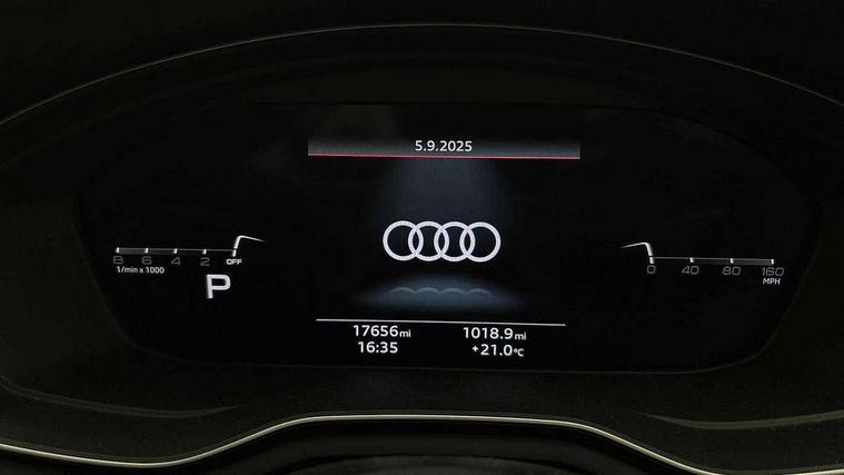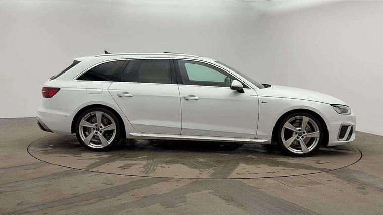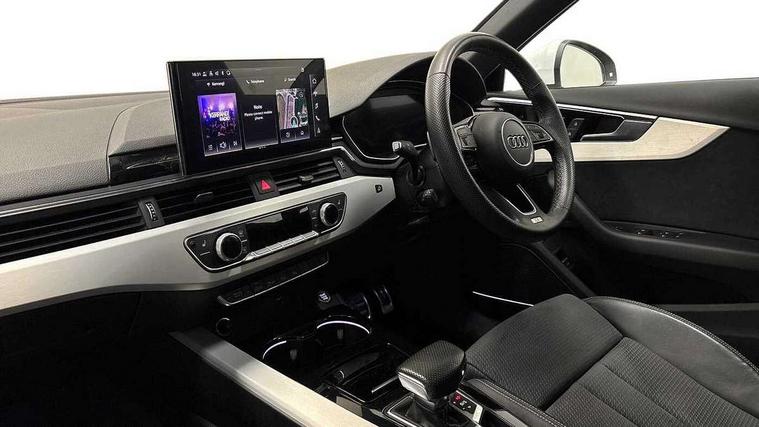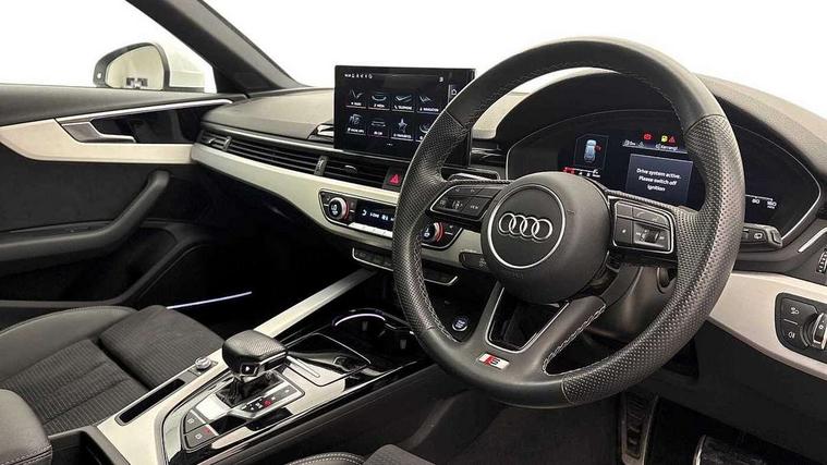 Audi connect safety and service (e-call), Audi drive select, Audi smartphone interface, Audi virtual cockpit, Automatic start-stop system with coasting functionality and efficiency programme, Bluetooth interface, Camera based traffic sign recognition, Electromechanical power steering, Email, calendar and text messages displayed via MMI, Front and rear parking sensors, Lane departure warning, MMI Navigation plus with MMI touch includes 10.1" high resolution colour MMI display, 3D map, Power operated tailgate, Rear view camera, Voice control system, 54 litre fuel tank, Sports suspension lowered by 23mm, 2 USB charging ports, 8 passive loudspeakers, DAB digital radio reception, Aluminium roof rails, Auto dimming rear view mirror, Body colour door handles, Body colour front spoiler lip, Body colour side sill trim, Body coloured door mirrors, Electric adjustable/heated/folding door mirrors with auto dimming, Grained matt black side air inlets with matt aluminium silver inlay, High beam assistant, Honeycomb structure radiator grille in grained matt black, LED headlights with LED rear lights + dynamic rear indicators + headlight adjustment and high beam, turning light + LED daytime running lights, LED third brake light, Matt aluminium silver tailpipe trim, Privacy glass, Rain and light sensors, Rear side wing doors, Rear wiper, S Line badges on the front wings, S line front and rear bumpers with side skirts, S Line rear diffuser in matt anthracite black with trim strip in matt aluminium silver, S Line roof edge spoiler, Variable intermittent front wash/wipe, Windscreen with acoustic glazing, 3 spoke high multi-function sports leather steering wheel grips in perforated leather with S badging including paddle shift, 4 way electric lumbar support for driver and front passenger, 40/20/40 split folding 3 rear seat bench in 3 parts with rear centre armrest, Black carpets, Black cloth headlining, Black perforated leather gearknob, Contrast stitching on seats, steering wheel and gear lever gaiter, Deluxe 3 zone electronic climate control, Electric load area cover, Front and rear head restraints, Front centre armrest, Heated front seats, Illuminated door sill trims with S logo, ISOFIX child seat mounting and top tether, Manual seat adjustment, Single front passenger seat, Stainless steel pedals and foot rest, High gloss package - A4, LED Interior light pack - A4/S4, 3 rear seatbelts, 6 airbags - Driver, front passenger, curtain and side windows, Attention and drowsiness assist, Electronic Stabilisation Control (ESC) including ABS, ASR and EDL, Hill hold assist, Multi collision brake assist, Pop-up bonnet for pedestrian protection, Pre sense city, Rear door child safety locks, Seatbelt monitoring, Warning triangle and first aid kit, Anti theft alarm, Anti theft wheel bolts, Central locking, Keyless Go, Matt brushed aluminium inlays, Tool kit, Tyre repair kit,