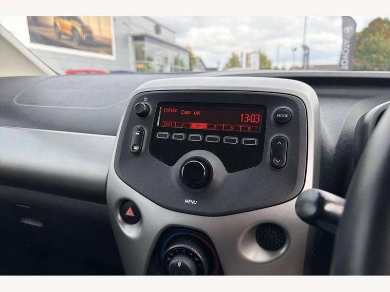 Bluetooth system, Digital clock, Electric power steering, Fuel indicator with low level warning, Lights on warning, Tachometer, Vehicle Stability Control (VSC), 4 speakers, Auxiliary input socket, DAB Digital radio, Stereo radio, USB connection, 2 speed wipers/variable intermittent/mist function, Black front X, Body colour bumpers, Body colour door handles, Body colour door mirrors, Carbon rear diffuser, Electric adjustable door mirrors, Electric front windows, Green tinted glass, Headlamp levelling, Heated door mirrors, Heated rear windscreen, LED daytime running lights, Rear spoiler, Rear window demister, Rear wiper, Roof mounted aerial, 12V Accessory socket, 3 spoke leather steering wheel, 50/50 split folding rear seat, Air conditioning, Air recirculation system, Centre console storage, Chrome insert to gearknob, Chrome interior door handles, Driver and passenger sunvisors, Driver's seat height adjuster, Driver/passenger seat recline/slide adjust, Driver/passenger vanity mirrors with covers, Front and rear door pockets, Front cupholder, Front map reading lights, Gleam cloth upholstery, Glovebox, Height adjustable front head restraints, Isofix system on outer rear seats, Leather gear knob, Pollen filter, Rear cupholders, Rear headrests, Steering wheel mounted radio/phone controls, Stepless tilt adjustable steering column, Storage bins on all doors, Tonneau cover, ABS, Driver and passenger airbags, ESP, Fasten seatbelt reminder, Front side airbags, Height adjustable front seatbelts with pre-tensioners and load limiters, Hill start assist, Passenger airbag deactivate switch, Rear child proof door locks, Side curtain airbags, Tyre pressure warning, Engine immobiliser, Lockable fuel cap, Remote central locking, Grey dashboard trim, Tyre repair kit,