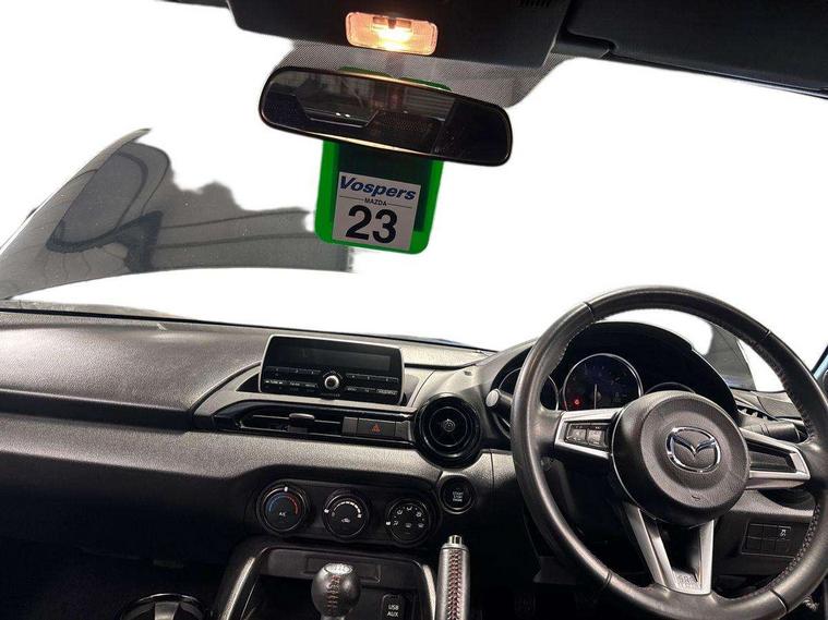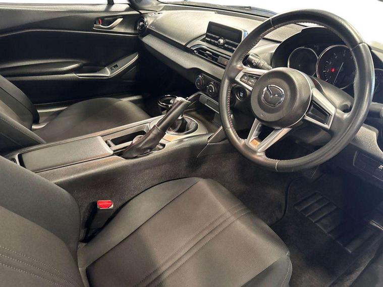 Analogue speedometer, Engine start/stop button, PAS, Remote boot release, Trip computer, Water temperature gauge, I-ELOOP, i-stop, Audio system with 4 speakers, AM/FM radio and single CD/MP3, USB/aux input socket, Automatic headlamp levelling, Black fashion bars, Body colour bumpers, Body coloured electric/heated door mirrors, Coming/leaving home lighting function, Dual exhaust pipes, Electric front windows/one touch facility, Front intermittent wipers, Halogen daytime running lights, High mounted rear brake light with Black cover, LED Headlights, Premium cloth soft top with integrated heated glass window and soft top cover, 12V socket, Air conditioning, Black Air conditioning dials, Black door trim, Centre console storage box, Cloth upholstery, Coin Box, Cupholders, Driver/ passenger seat manual slide, recline and tilt adjustment, Front centre armrest, Front head restraints, Gear shift indicator, ISOFIX front passenger seat child seat compliance, Leather gear knob, Leather handbrake lever, Leather steering wheel, Lockable rear storage box, Side door in Black trim, Sports seats, Steering wheel audio controls, Tilt/telescopic steering column, Windblocker, 3 point ELR front seatbelts with pretensioners, ABS+Electronic Brake force Distribution, Deployable Hood System (DHS), DSTC-Dynamic Stability and Traction Control, Dual front airbags, Fasten seatbelt reminder, Hill hold assist, Passenger airbag deactivate switch, Passenger airbag deactivation system, Side airbags, Tyre pressure monitor, Remote central door locking, Remote keyless entry, Superlocking, Thatcham category 1 alarm + immobiliser, Black air vent surround, Black dash trim, Chrome meter rings, 16" alloy wheels, Tyre puncture repair kit,