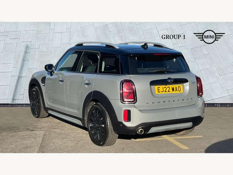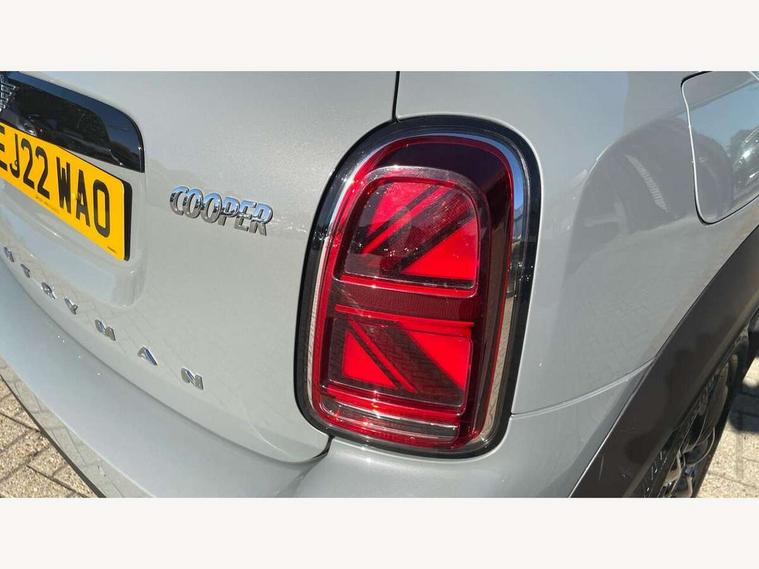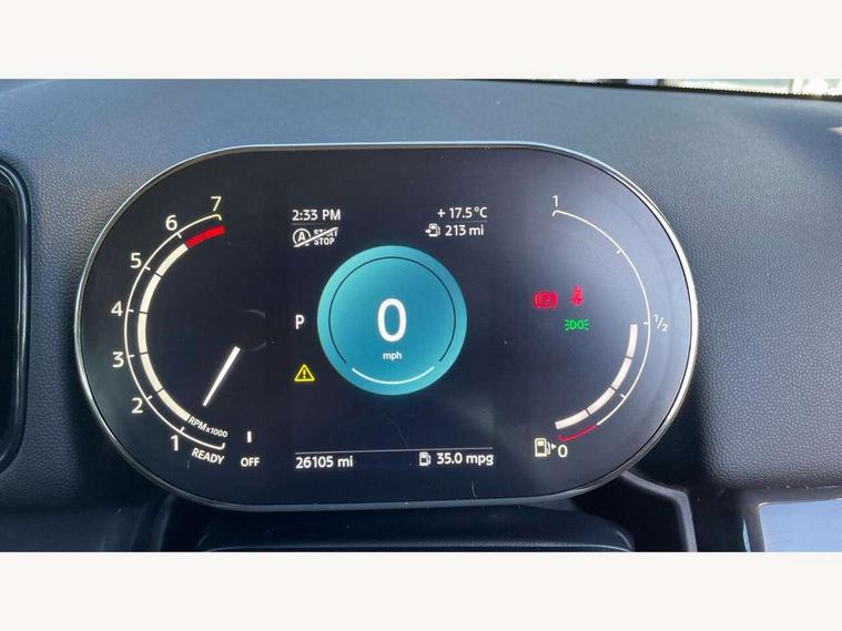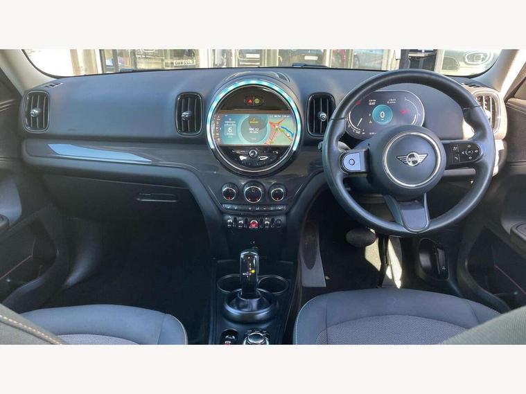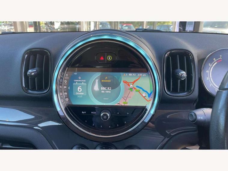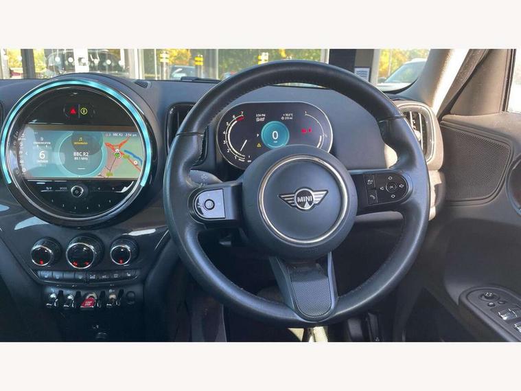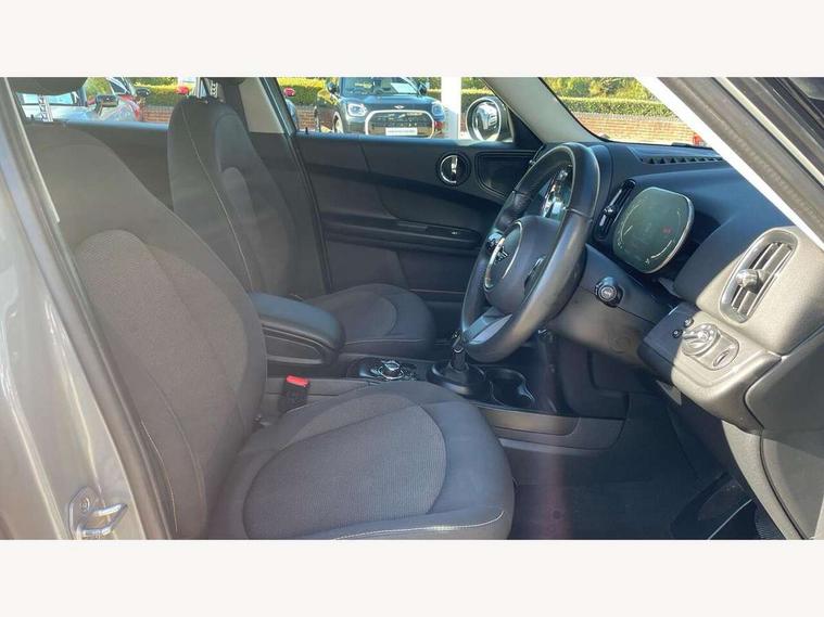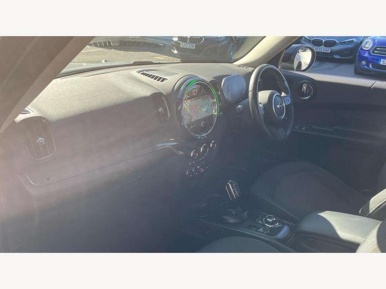 Active Guard incl speed limiting and lane departure functions with auto steering, and front collision warning with brake intervention, Automatic start/stop function with brake energy recuperation, Compatible mobile phone bluetooth with audio streaming, Cruise control with brake assist, Electro-mechanical speed dependant steering assistance, Instrument cluster, Mini E-call, On board computer, Rear parking distance control, 51 Litre fuel tank, Automatic transmission, Double Vanos system, Fully variable valve control, High precision injection, Performance Control, FM tuner and DAB digital radio, 3rd brake light, Body colour fuel filler cap, Day time driving lights, Door sill strips, Dynamic brake lights, Electric windows, Heated rear window, Heated windscreen washer jets, LED fog lights, LED Headlights, Left exhaust tailpipe with chrome finisher, Model logo, Model logo on Tailgate, Radiator grille, Rain sensor with auto headlights, Rear fog lights, Rear side wing doors, Rear window wiper, Side scuttle panel with integrated indicator, Split rear doors, Sun/heat protection glass, White indicator lenses, 12V socket in centre console, 3 seat bench in 2nd row, 3 spoke sport leather steering wheel + limiter function and audio controls, 360L luggage compartment capacity, 4 lashing eyes in luggage compartment, 40:20:40 split folding rear seats, Chrome interior highlights, Colour line - Carbon black, Cupholders, English handbook, Floor mats, Front headrests, Glove compartment, Headliner with grab handles and clothes hooks, Height and length steering column adjustment, Interior lighting with 12 basic colours selectable via toggle switch in roof, Isofix rear child seat preparation, Leather gearshift lever and handbrake gaiters, LED reading lights, vanity mirror lights, front foot well light and spotlight on front seats, Manual air conditioning, Mechanical seat adjustment, driver seat height adjust, forward/back and front seats backrest, Multifunction steering wheel, Passenger seat height adjuster, Rear headrests, Single front passenger seat, Storage compartments in doors, Sunvisors with vanity mirrors, Excitement pack - Countryman, Navigation pack - Countryman, 2 tone horn, 3 point seatbelts on all seats, 6 Airbags - front, side, head and seat belt tensioners, Anti-lock braking system (ABS), DSC - Dynamic Stability Control, Electronic handbrake, Front and rear disc brakes, Hill start assist, Manual rear child locks, Tyre pressure monitoring system, Alarm system with tilt sensor, monitoring doors, bonnet interior and tailgate, Auto drive away locking, Deadlocking function, Electronic vehicle immobiliser, Locking wheel bolts, Start/stop toggle with keyless go, Tool kit,