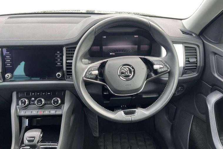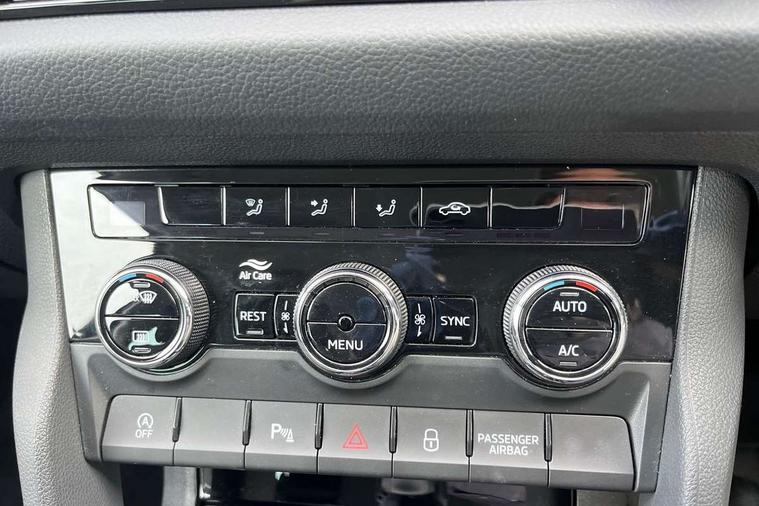 8" Digital display, Amundsen satellite navigation with 8" touchscreen, integrated Wi-Fi, web radio, Bluetooth system, Digital voice enhancement, E-call, ECO Stop/start function, Exterior temperature indicator, Power assist steering, Rear view camera, Smartlink wireless for apple carplay and wired for android auto, Speed limiter, Tailgate unlocking from outside, USB C Port x 2 in front centre console, 8 Speakers, DAB Digital radio, Aero front windscreen wipers with intermittent function, Aero rear window wiper, Auto dimming rear view mirror, Black wheel arch surrounds, Body colour bumpers, Body colour door mirrors and handles, Electric front and rear windows, Extended rear spoiler with finlets in gloss black, Front fog lights, Headlight washers, Heated rear window, Invisible tailpipe, LED rear fog light, LED third brake light in rear spoiler, Light assistant (coming/leaving home/tunnel light), Off-road style lower front bumper element, Privacy glass, Radiator grille frame in matt black with chrome strip, Rain and light sensors, Rear LED lights (high functionality) with welcome effect and dynamic indicators, Rear side wing doors, Safety reflectors on front and rear doors, Window control switches with black trim, 12V socket in boot, 2 rails with 2 hooks, 2 seat bench in 3rd row, 3 seat bench in 2nd row, 4 foldable roof handles with rear coat hooks, 60:40 foldable rear seat with sliding adjustment and backrest angle adjustment, Bottle holders in door panel in the 1.5 litre front and 1 litre rear, Cargo storage compartments, Chrome interior door handles, Cloth upholstery, Coat hooks on B pillar, Covered storage compartment on driver side, Dual zone automatic air conditioning with humidity sensor and control, Front centre armrest with storage compartment, cup holder and 12V socket, Gear shift lever with chrome frame and black gloss insert, Grey headlining, Grey stitching in front and rear armrests and door armrests + door inserts, Height adjustable front headrests, Height adjustable front seats, Illuminated and cooled glovebox, Illuminated luggage compartment, Isofix child seat fittings in outer rear seats with top tether, Manually adjustable steering column, Net programme in boot (1x horizontal Net, 2x vertical Nets), Overhead glasses storage compartment, Pollen filter, Rear centre armrest with cupholders, Single front passenger seat, Sliding trunk cover, Small Bags on the inner sides of the front backrests, Sunvisors with illuminated vanity mirrors, Three rear height adjustable headrests, Ticket holder on A Pillar, Umbrella in door panel, Variable boot floor, Auto door release and activation of warning lights in the event of an accident, Child locks on rear doors, Driver and front passenger airbag with knee airbag and front passenger airbag deactivation, Electronic parking brake with hill start assist, Emergency rear braking signal, ESC (incl. ABS+MSR+ASR+EDS+HBA+DSR+RBS+MKB), Front assist with autonomous emergency braking, Front side airbags with curtain airbags, Fuel cut off safety device, Height adjustable front 3 point seatbelts + pretensioners, Hill hold control, Rear disc brakes, Safety vest holder in door, Seat belt reminder for all seats, Three point rear seat belts, Two tone horn, Tyre pressure monitor, Alarm with interior monitoring and tilt sensor with safe function, Anti-theft wheel bolts, Immobiliser, Keyless entry and start system (KESSY), Remote central locking with 2 keys, Grey stitching in dashboard, Temporary spare wheel (space saver),