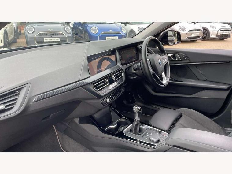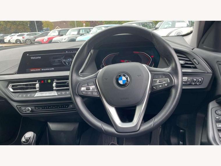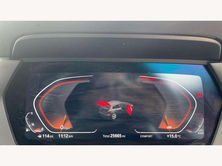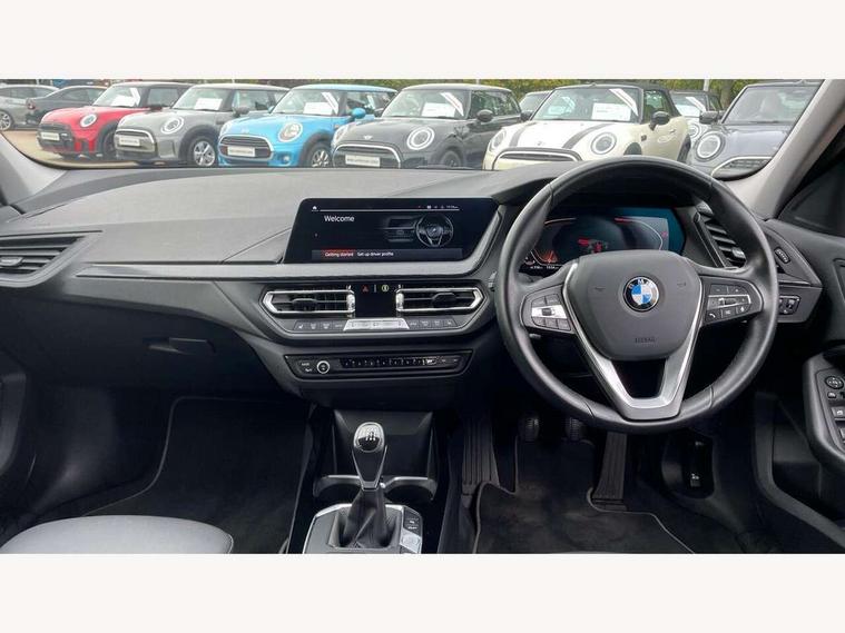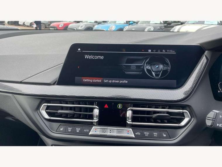 Active guard plus, Attentiveness assist, BMW ConnectedDrive online services, BMW Teleservices, Check Control warning system for monitoring of lights and door/luggage compartment open warning, Cruise control with speed limiter, Eco pro mode, Electric power steering with Servotronic steering optimised at all speed ranges, Front axle single joint with specific axle kinematics to minimise drive influences on steering + provide increased rigidity agile driving behaviour, Integrated owners handbook, Lane departure warning system, Oil sensor for level and grade, On board computer, Optimum shift indicator, Personal Profile, Pull away assistant, Rigidly mounted rear subframe - Multi link construction with separate spring / damper configuration and excellent driving characteristics, Speed limit Info including no-overtaking indicator, Aluminium lightweight construction, Anti roll bar front and rear, Balancer shaft, Double VANOS twin scroll turbocharging system, Drive Performance Control, Electronic differential lock, High precision injection, Petrol Particulate Filter, Suspension with twin tube gas filled shock absorbers with degressive characteristic curve, VALVETRONIC engine management, DAB Digital radio, Auto dimming rear view mirror, Automatic windscreen wipers and automatic headlight, Body colour door handles, Body colour mirror caps, Body colour roof trims, Chrome exhaust twin tailpipes round 90mm in left, Direction indicator side lights in exterior mirrors, Electrically adjustable exterior mirror with mirror adjustment switch on drivers armrest and aspheric on driver side, convex on passenger side, Fading support, Follow me home headlights, Front and rear bumper system with replaceable deformation elements, Front and rear electric windows with open and close fingertip control, anti trap facility and comfort closing, Front bumper in Body colour with exclusive Sport air inlets finished in High gloss Black, Front door sill finishers in black plastic with BMW designation in metallic look, Green tinted heat protection glazing, High gloss shadowline window frame, Recess cover mirror frames and B/C pillar embelisher trim, High level third brake light, Integrated front windscreen with washer jets, Kidney grille in chrome frame with highgloss black struts, LED daytime running lights, LED eyebrow turn indicators, LED front fog lights, Lightweight engineering, Manual headlight beam throw control, Manual headlight levelling, Matt black air guide grilles, Matt black wheel arch trim, Model designation on electric bootlid, Nearside reverse light in rear light cluster, Preparation for high beam assistant, Rear bumper in Body colour with exclusive Sport design elements finished in High gloss Black, Rear fog lights, Rear side wing doors, Rear window wiper, Shark fin antenna, Trailer stabilisation logic, Visible VIN plate, Welcome lighting, 12V power socket in front centre console with blanking plug, 3 rear seat head restraints, 3 seat bench in 2nd row, 3 spoke sports leather steering wheel in black leather with black stitching and decorative finisher in pearl chrome + gearshift lever knob in leather, Black boot net with lashing eyes, Cargo function on 2nd seat row, Child seat ISOFIX attachment for two outer rear seats and front passenger seat with anchorage points, Conditioned based service, Driver and front passenger backrest net on rear, Driver side folding compartment in instrument panel, Folding rear clothes hook, Four grab handles integrated in roof lining, Front and rear door pockets with bottle holders, Front and rear side armrest integrated into door trim, Front armrest, Front sports seats, Glove compartment, Height adjustable front head restraints, Luggage compartment for bag hooks on left and right, foldable luggage compartment liner and four lashing eyelets, Manual adjust steering wheel, Multi-function controls for steering wheel, Single front passenger seat, Storage compartment in centre console, Storage compartment in luggage compartment, Stowage of the parcel shelf in luggage compartment trim, Sun visors with vanity mirrors and insert tab, Two front centre console cupholders, Two zone automatic air conditioning, Type C two USB ports in rear centre console, Velour floor mats, BMW live cockpit professional pack- 1 Series, Connected pack professional - 1 Series, Interior lights pack - 1 Series, 2 tone horn, 3 point seatbelts on all seats, front pyrotechnic belt tensioners, stopper and belt force limiters, rear coded belt buckles, Airbags - Front driver/passenger, front and rear curtain head protection, front side, manual deactivation of front passenger airbag, Anti lock braking system (ABS) with brake assist, BMW emergency call, Brake drying, Braking readiness, Child proof locking system in rear door, City braking function, Comfort modes, Cornering brake control, Crash sensor activating of airbags, Unlocking doors, hazard warning lights, interior light, safety battery terminal, Driver and front passenger seat belt security check, Dynamic stability control + (DSC+), Dynamic Traction Control - DTC, Electrically operated hand brake, Front and rear disc brakes, Seatbelt warning, Side impact protection, Tyre pressure monitoring system, Warning triangle and first aid kit, Central locking switch for all doors, fuel filler cap and luggage compartment, Deadlocking function system to all doors, Drive away locking system on all doors and luggage compartment with de-activated in iDrive settings, Locking wheel bolts, Remote central locking with two Integrate key, one button for opening and closing all lock, open and close window, button for open luggage compartment, Start/stop button illuminated in centre console with keyless engine start and auto start stop deactivation button, Thatcham Cat.1 alarm and immobiliser, Wheel slip limitation close to the actuator (ARB), Contrast stitching on instrument panel, Illuminated Berlin interior trim, Electrically powered 12V compressor, Reduced rolling resistance tyres,