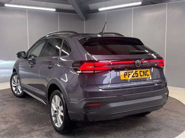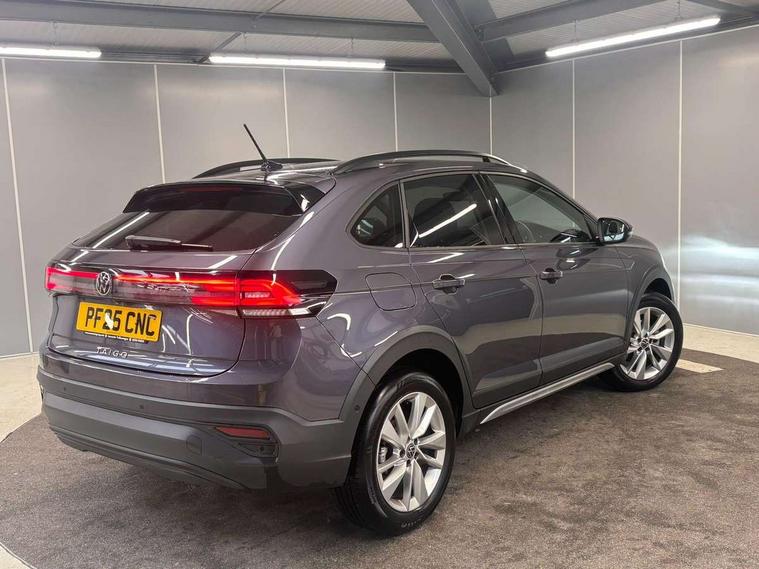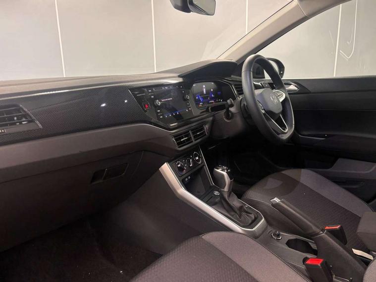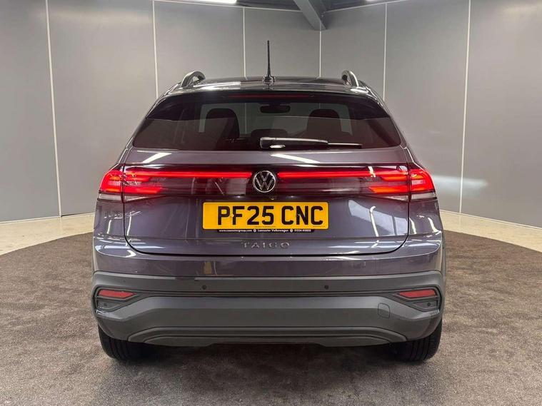 8" Digital cockpit basic display, Adaptive cruise control, Advanced driver attention and drowsiness monitor, Dynamic road sign display, e-Call (emergency call), Power Steering, Rear view camera, Travel assist including emergency assist, Washer fluid level indicator, Wireless Charging including Bluetooth, Start-stop system with battery regeneration (recuperation - energy recovery during braking), Digital radio reception (DAB+), WeConnect plus, Ambient lighting with logo projection, Aspherical driver's exterior mirror, Body coloured bumpers, Body coloured exterior mirror housings and door handles, Electric windows, External USB type C socket and charging sockets, Heat insulating glass windscreen, LED rear combination lamp, LED third brake light, Left convex exterior mirror, Power folding adjustable/heated exterior mirrors and front passenger exterior mirror lowering function, Rear fog light on one side, reversing light on both sides, Rear side wing doors, Rear wash/wipe with intermittent wipe setting, Side windows in heat-insulating glass, from B-pillar and rear window dark tinted, 'Slash/ Austin' Cloth upholstery, 12V socket in centre console, 2 front reading lights, 3 rear head restraints, 3 seat bench in 2nd row, Black carpets, Ceramique headliner, Child seat anchor for child seat system i-Size, 2x top tether and child seat anchor in front on front passenger side, Door and side trim panels in titan black, Driver and front passenger seat height adjustment, Front centre armrest, Handbrake lever handle in leather, Height and reach adjustable steering wheel, Leather trimmed gear knob, Leather wrapped multifunction steering wheel with paddle shift, Luggage compartment floor, Luggage compartment light, Lumbar support for driver's and front passengers seat, Seat covers in titanium black, Single front passenger seat, Split folding backrest with centre armrest and unsplit rear seat bench, Storage compartment under front seats, Sun visors with illuminated vanity mirrors, Titanium black instrument panel, Chrome Package - Taigo, Drivers assistance package - Taigo, Light and sight pack - Taigo, 2 x 3-point seatbelts/outer rear seats with ECE label, 3-point seat belts in front with pretensioner and height adjustment, 3-point seatbelt for centre rear seat, Driver and front passenger airbag with front passenger airbag deactivation, Driver and front passenger safety-optimised head restraints, Electronic stability control, Extended and predictive pedestrian/ cyclist protection, Front and rear disc brakes, Front curtain and side airbags with center airbag, Hill start assist, Manual rear child locks, Single tone horn, Tyre pressure loss indicator, Anti-theft alarm system with interior monitoring, backup horn, and towing protection, Keyless locking and starting system keyless access with safelock, Black (slush) Dashboard, Lava stone black gloss/matt decorative inserts in dash and front door panels, Low rolling resistance tyres,