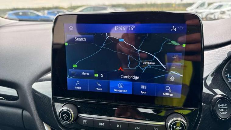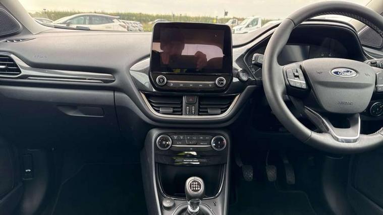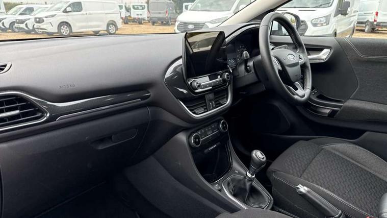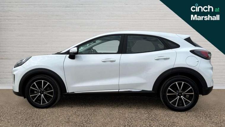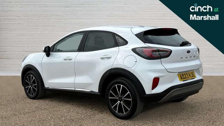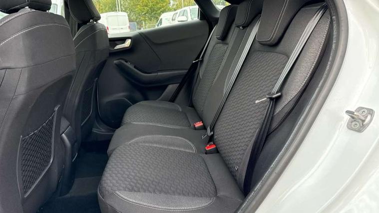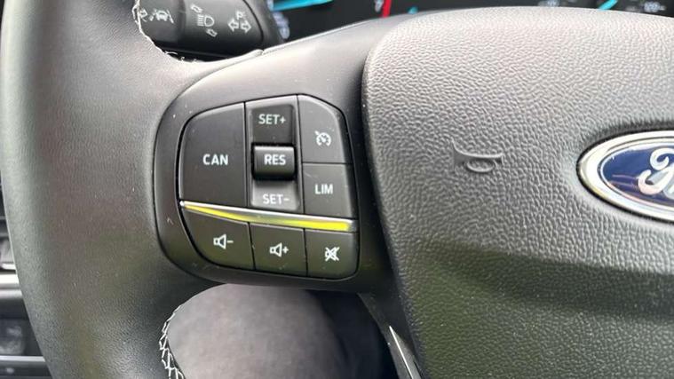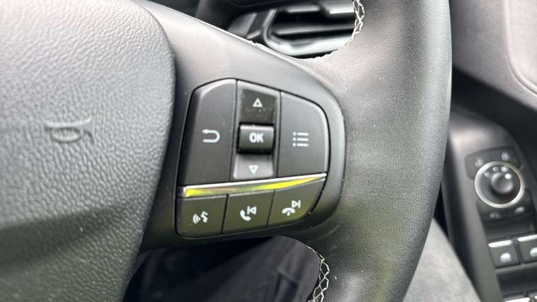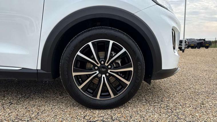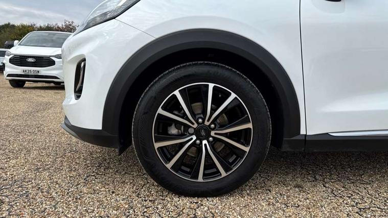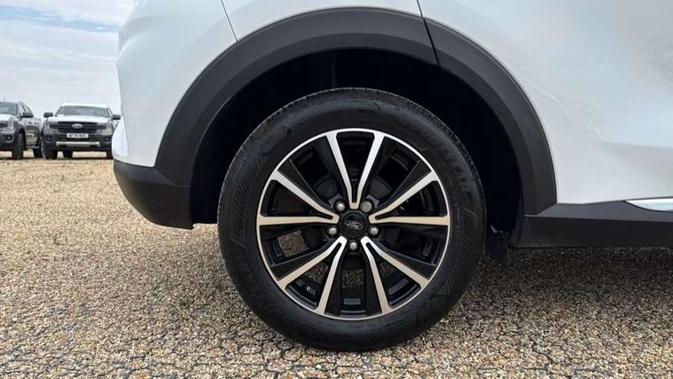 Driver impairment monitor, Emergency call service, Ford easy fuel, Lane keeping aid with lane departure warning, Power assist steering, Power start button, Rear parking sensor, Selectable drive modes(Normal, sport, Eco, trail, slippery), Speed sign recognition, Standard suspension, Automatic headlights with auto high beam, Automatic rain sensing wipers, Body colour rear spoiler, LED rear lamps, Power foldable heated door mirrors with puddle lamps, Projector headlamps with LED day time running lights and front fog lamps, Quickclear heated windscreen, Rear side wing doors, Rear wiper, Third brake light, 3 seat bench in 2nd row, Centre console with armrest and stowage, Electronic automatic temperature control (EATC), Ford megabox extended bootspace, Front and rear head restraints, Front floor mats, Manual 2 way passenger seat adjustment, Manual 4 way driver seat adjust with lumbar adjustment, Sensico leather steering wheel/gear knob/handbrake, Single front passenger seat, Titanium cloth upholstery, Ford SYNC 3 navigation pack - Puma, 3 rear seatbelts, Child safety lock, Electronic stability control (ESC) and hill start assist, Pedestrian/cyclist detection & post-collision braking, Pre collision assist system, Tyre pressure monitoring system (TPMS), Thatcham alarm, 17" 10 spoke absolute black machined finish alloy wheel,