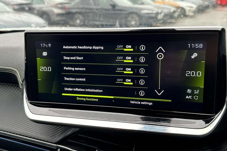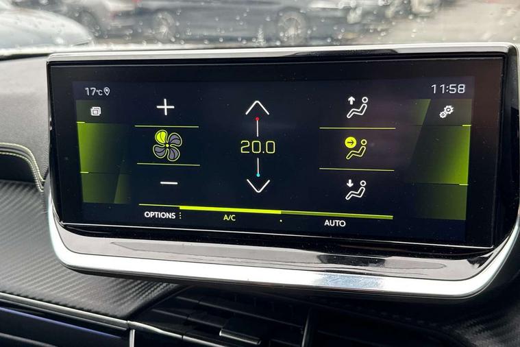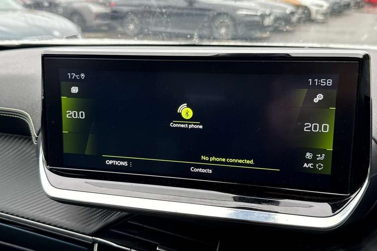 10" Capacitive colour touchscreen with connected 3D navigation with Piano keys gloss black plated toggle switches to access touchscreen, Bluetooth telephone facility, Driver attention warning, Exterior temperature indicator with ice warning, Front and rear parking sensors, Lane keep assist, Mirror screen with mirror link, apple carplay and android auto, Multi function trip computer, PEUGEOT i-Cockpit with compact steering wheel, PEUGEOT i-Cockpit with configurable 3D headup instrument panel, PEUGEOT SOS and assistance, Push button start, Smart phone docking station, Smartphone charging plate, Speed limit recognition and recommendation, Visio Park 1 with 180 degree Colour reversing camera, 2 front USB socket with USB-C, 2 USB sockets in rear, 6 speakers radio with mp3 compatible, DAB Radio (Digital Audio Broadcasting), Voice recognition for radio, navigation and telephony features, 2 X Rear number plate lights, Automatic hazard light activation upon heavy brake application, Black front wing trim with gloss black detail and GT line badging, Body coloured exterior door handles, Chrome front lower bumper, Dark tinted rear side and tailgate windows, Diamond black rear spoiler (roof), Electric, heated, and power folding door mirrors, Frameless electrochrome interior rear view mirror, Front windscreen wiper, Full LED headlights with smartbeam assist, Gloss black finish on B pillar, Gloss black rear cluster connecting strip, Gloss black roof bars, Gloss black window surround, GT Line model designation badging on tailgate, Headlights left on audible warning, LED daytime running lights with 3 claw headlight with distinctive tooth design, LED front fog lights, LED side indicator lights integrated into door mirrors, Model designation badges front and rear, Nera black door mirror shells, One touch electric front/rear windows with pinch protection, Radiator grille - Dark chrome chequered and gloss black edge trim, Rear full LED 3D peugeot signature claw effect lights with daylight function, Rear reversing lights, Rear windscreen wiper triggered automatically in reverse gear, Stainless steel door sill scuff plates, Tailgate with heated rear windscreen and wiper blade, Twin chromed exhaust pipes, Wheel arch extensions, 1/3 to 2/3 split folding rear seats, 12V socket, 8 Colour personalisable ambient lighting, Aluminium pedals, Automatic air conditioning, Automatic gear lever in full grain leather and satin chrome, Central front armrest with storage compartment, Driver and front passenger seat manual adjustment in longitudinal and back rest angle, Driver and front passenger seat mechanical height adjustment, Driver and front passenger sport seats, Electric power steering with reach and rake adjustable steering column, Front and rear carpet mats in black with lime green stitch detail, Front LED interior light with 2 reading spotlights and rear interior light with timer, Heated front seats, High centre console, ISOFIX child seat mounting points on passenger seat, Lime green contrast stitching to front centre console, door panels and dashboard facia, Mistral full grain perforated leather steering wheel with aikinite stitch detail and satin chrome 'GT Line' emblem, Modular boot floor, Piano keys gloss black plated toggle switches to access main functions of the vehicle, Roof lining - Mistral black, Seatbelt unfastened on the move audible and visual alert for front and rear seats, Visibility pack - 2008, 2x 2nd row ISOFIX child seat mountings, ABS (Anti-lock Braking System) with EBD (Electronic Brakeforce Distribution) and EBA (Emergency Braking Assistance), Active safety brake with night function/cyclists/pedestrians, Adaptive driver and front passenger airbags with passenger airbag deactivation function, Child locking functionality on rear doors, Driver/front passenger side airbags, Electric parking brake, ESP (Electronic Stability Program) + Hill Start Assist, Front and rear curtain airbags, Front and rear disc brakes, Front and rear three-point retractable seatbelts, with force limiters, Front optimised safety headrests and rear retractable headrests (x3), height adjustable, Tyre pressure sensor, Automatic door locking when moving off, Deadlocks, Electronic code immobiliser, Thatcham Cat.1 alarm, Carbon effect Dashboard, front and rear door panel finish, 18" Bund diamond cut alloy wheels,