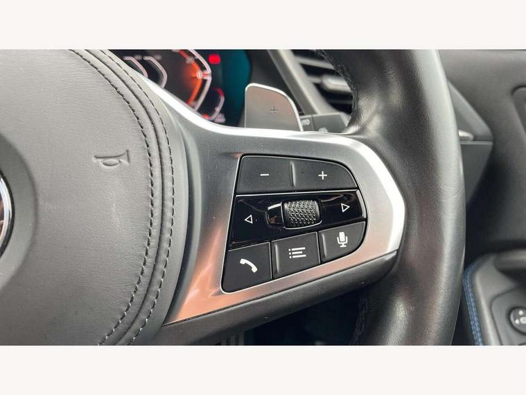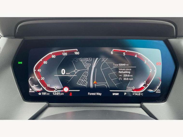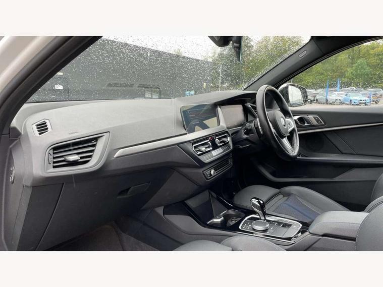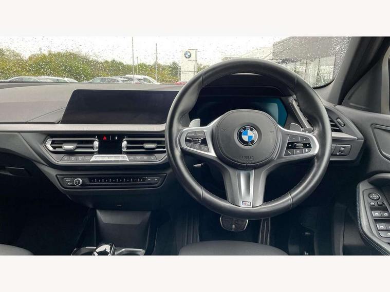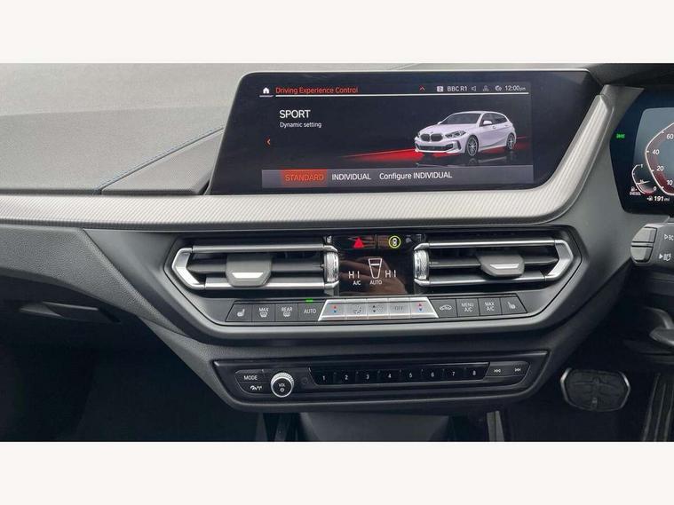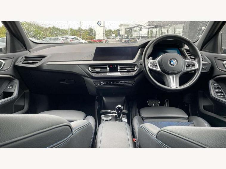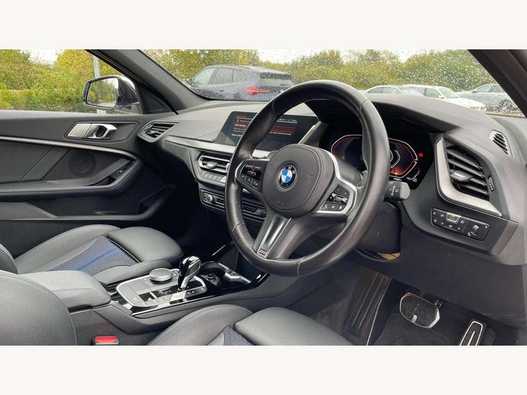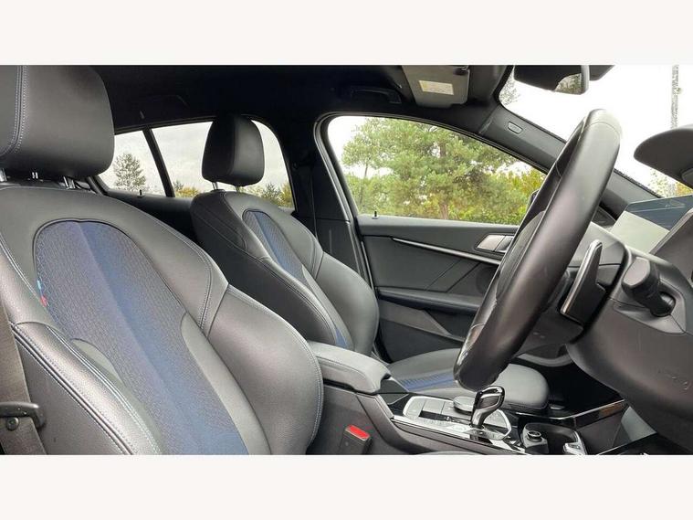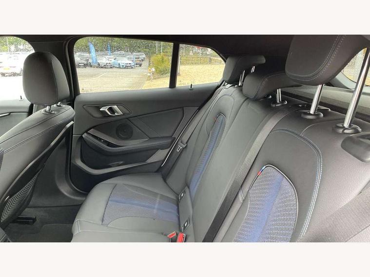 Active guard plus, Attentiveness assist, BMW ConnectedDrive online services, BMW Teleservices, Characteristic map controlled oil pump system, Check Control warning system for monitoring of lights and door/luggage compartment open warning, Cruise control with brake assist, Eco pro mode, Front axle single joint with specific axle kinematics to minimise drive influences on steering + provide increased rigidity agile driving behaviour, Integrated owners handbook, Lane departure warning system, Oil sensor for level and grade, On board computer, Optimum shift indicator, Personal Profile, Pull away assistant, Rigidly mounted rear subframe - Multi link construction with separate spring / damper configuration and excellent driving characteristics, Speed limit Info including no-overtaking indicator, Speed limiter, AdBlue tank, Aluminium lightweight construction, Anti roll bar front and rear, Balancer shaft, Diesel particulate filter, DOHC valve train with two overhead camshafts, Drive Performance Control, Eight speed sport automatic transmission with gearshift paddle switches, Electronic differential lock, Single turbo charger with variable vane geometry, Twin tube gas filled shock absorbers with degressive characteristic curve, Two-stage charging, DAB Digital radio, Auto dimming rear view mirror, Automatic headlight beam throw control, Automatic windscreen wipers and automatic headlight, Body colour door handles, Body colour mirror caps, Body colour roof trims, Chrome 'M' logo side designation, Chrome exhaust twin tailpipes round 90mm in left and right split, Chrome kidney grille frame with Satin Aluminium struts, Direction indicator side lights in exterior mirrors, Fading support, Folding side mirrors with auto dimming/folding wing mirrors with auto dimming, Follow me home headlights, Front and rear bumper system with replaceable deformation elements, Front and rear electric windows with open and close fingertip control, anti trap facility and comfort closing, Front door sill finishers in black plastic with M designation in metallic look, Green tinted heat protection glazing, Heated, electrically adjustable exterior mirror aspheric on driver side, convex on passenger side, High gloss shadowline window frame, Recess cover mirror frames and B/C pillar embelisher trim, High level third brake light, Integrated front windscreen with washer jets, LED daytime running lights, LED eyebrow turn indicators, LED front fog lights, LED Headlights, Lightweight engineering, Matt black air guide grilles, Matt black wheel arch trim, Model designation on electric bootlid, Nearside reverse light in rear light cluster, Preparation for high beam assistant, Rear fog lights, Rear side wing doors, Rear window wiper, Shark fin antenna, Trailer stabilisation logic, Visible VIN plate, Welcome lighting, 12V power socket in front centre console with blanking plug, 3 rear seat head restraints, 3 seat bench in 2nd row, 3 spoke sports leather steering wheel with black leather and stitching, pearl chrome decorative finish, specific M Badge, Anthracite headlining, Black boot net with lashing eyes, Cargo function on 2nd seat row, Child seat ISOFIX attachment for two outer rear seats and front passenger seat with anchorage points, Conditioned based service, Driver and front passenger seat heating, Folding rear clothes hook, Four grab handles integrated in roof lining, Front and rear door pockets with bottle holders, Front and rear side armrest integrated into door trim, Front armrest, Front sports seats, Glove compartment, Height adjustable front head restraints, Luggage compartment for bag hooks on left and right, foldable luggage compartment liner and four lashing eyelets, Manual adjust steering wheel, Multi-function controls for steering wheel, Single front passenger seat, Storage compartment in centre console, Sun visors with vanity mirrors and insert tab, Two front centre console cupholders, Two zone automatic air conditioning, Velour floor mats, Additional interior lighting pack - 1 Series, BMW live cockpit professional pack- 1 Series, Connected pack professional - 1 Series, Interior lights pack - 1 Series, M Sport exterior styling aerodynamics pack - 1 Series, 2 tone horn, 3 point seatbelts on all seats, front pyrotechnic belt tensioners, stopper and belt force limiters, rear coded belt buckles, Airbags - Front driver/passenger, front and rear curtain head protection, front side, manual deactivation of front passenger airbag, Anti lock braking system (ABS) with brake assist, BMW emergency call, Brake drying, Braking readiness, Child proof locking system in rear door, City braking function, Comfort modes, Cornering brake control, Crash sensor activating central locking release, hazard warning lights, fuel cut off, interior lighting + activation of safety battery terminal clamp, Driver and front passenger seat belt security check, Dynamic stability control + (DSC+), Dynamic Traction Control - DTC, Electrically operated hand brake including automatic hold function, Front and rear disc brakes, Seatbelt warning, Side impact protection, Tyre pressure monitoring system, Warning triangle and first aid kit, Central locking switch for all doors, fuel filler cap and luggage compartment, Deadlocking function system to all doors, Drive away locking system on all doors and luggage compartment, Incorrect fuel protection system, Locking wheel bolts, Remote control with integrated key with High-gloss Black inlay and M designation and 1 button for open/ close lock, window, open luggage compartment, Start/stop button illuminated in centre console with keyless engine start and auto start stop deactivation button, Thatcham Cat.1 alarm and immobiliser, Wheel slip limitation close to the actuator (ARB), Contrast stitching on instrument panel, Electrically powered 12V compressor, Reduced rolling resistance tyres,