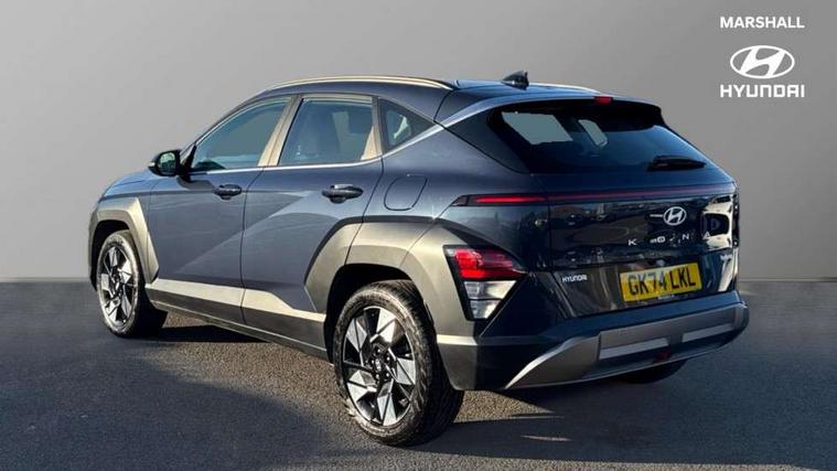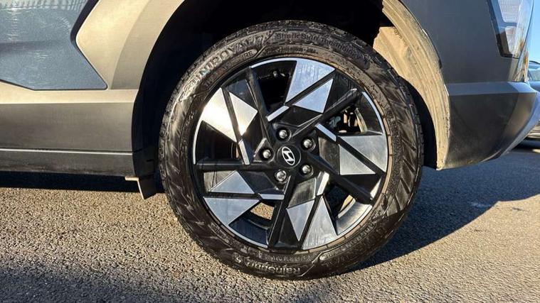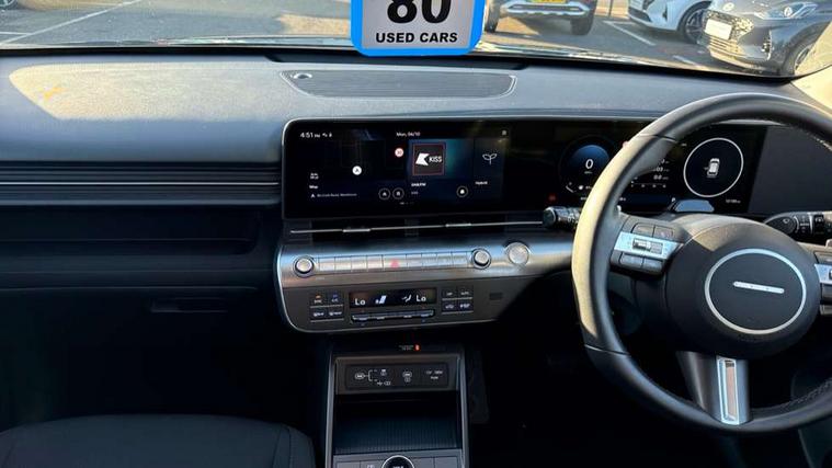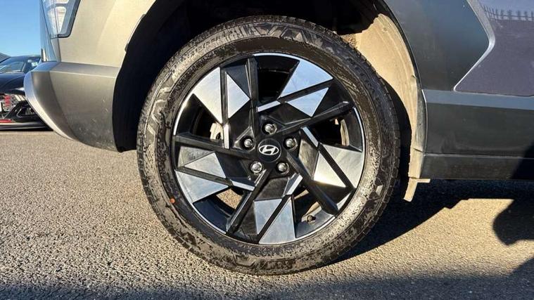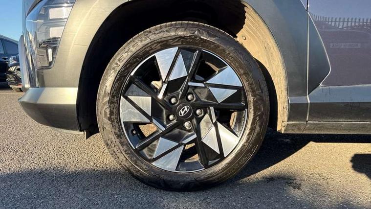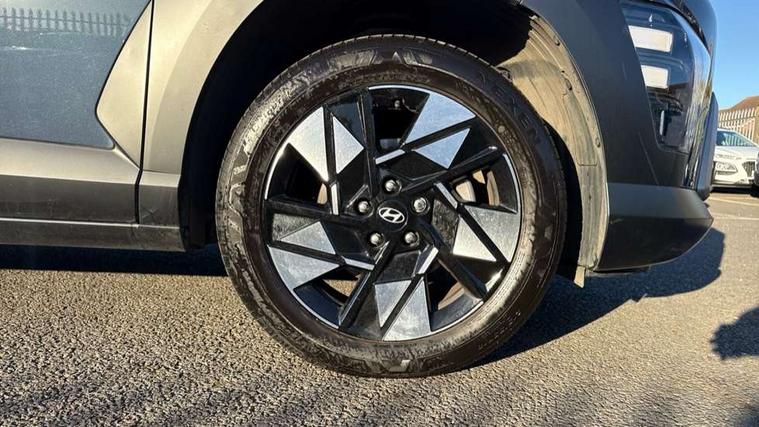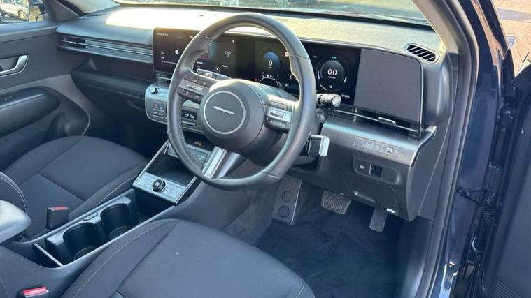 12.25" digital instrument cluster, 12.3" touchscreen centre console display satellite navigation with bluelink, live services and mapcare, Bluetooth connectivity with voice recognition, Driver status monitor (DSM), Driver supervision instrument cluster with 12.3" LCD display, eCall emergency call system, Feature on demand - Enabled, Forward collision avoidance assist (FCA 1.5) - Car, pededstrian, cycle and junction turning, Front parking sensor, HDA - Highway Drive Assist Level 1.5, Intelligent speed limit assist, Lane follow assist, Lane keep assist, Leading vehicle departure alert (LVDA), Parking system with rear camera and guidance system, PAS, Rear parking sensor, Rear view camera with dynamic guidelines, Roadside assistance, Smart cruise control with stop and go functionality, Wireless Smartphone Integration includes Apple CarPlay and Android auto, 2 front USB C and 2 rear USB C charging points, DAB Digital radio, Speakers - Front, rear and tweeters, Steering wheel audio, phone and cruise controls, Auto dimming rear view mirror, Automatic headlights with dusk sensor, Automatic windscreen wipers with rain sensor, Black painted wheel arch inserts, Body colour exterior door handles, Body coloured door mirrors, Door mirror LED indicator lights, Electric front windows with anti-trap mechanism and one touch control, Electric rear windows, Electrically adjustable and heated door mirrors, Full LED MFR headlights, LED daytime running lights, LED taillights, LED upper and lower rear lights, Power folding door mirrors, Rear roof spoiler with integrated LED brake light, Rear side wing doors, Rear skid plate - silver, Rear wiper, Roof rails, Tinted glass in front and rear doors, Windscreen auto defog function, 12V power outlet in front console, 2 zone climate control, 3 seat bench in 2nd row, Adjustable head restraints, Cloth upholstery, Driver and passenger front seat pockets, Driver's seat lumbar support, Driver/passenger manual seat height adjustment, Driver/passenger sunvisors and illuminated vanity mirrors, Floor mats, Height/reach adjustable steering column, Leather steering wheel, LED centre interior light, LED front interior light, Luggage compartment LED lighting, Luggage shelf, Metal paint effect interior door handles, Rear centre armrest with cupholders, Shift by wire SBW, Single front passenger seat, Vertical adjustment rear head restraints, Trailer wiring package - Kona, Airbag - front, front side, curtain and centre front airbag, Anti-lock brake system (ABS), Childproof rear door locks, Downhill brake control, Electric parking brake, Electronic stability control, Fixed 3 point for second row centre passenger seatbelt, Hill start assist control (HAC), Rear seat alert, Tyre pressure monitoring system, Alarm/immobiliser, Rear occupant alert, Remote central locking, Smart key with keyless entry and start/stop button, Five year annual vehicle health checks, 18" Alloy wheels, Temporary mobility kit (TMK),