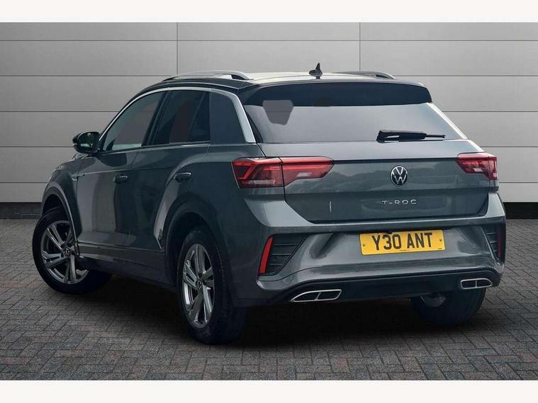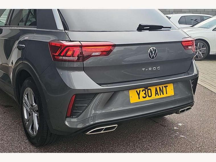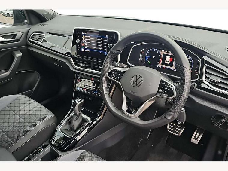 10.25" Digital cockpit pro, Bluetooth mobile phone interface, Driver alert system with fatigue detection, Driver tips and journey analysis, Emergency call service, Lane keeping system Lane Assist, Modified key software - reduce switch off time for key status change to Long no motion, Online services, Park assist including front and rear parking sensors, Service interval indicator, Tailgate/trunk lid release from outside, Think blue trainer driver tips and journey analysis, Warning sound and light for front seatbelts unfastened, Wireless app connect, Battery regeneration during braking, Start/stop function with battery regeneration, Diversity antenna for FM reception, Front and rear 6 speakers, Music playback - MP3, WMA and AAC files, Premium USB cable in choice of either Apple or Android smartphone compatibility, SD card slot, Simultaneous pairing of 2 compatible mobile devices, Title and cover art display, We Connect and We Connect Plus functionality, 3rd brake light, Auto dimming interior rear view mirror, Automatic hazard lights activation under emergency braking, Automatic headlight control with LED separate daytime running lights with coming/leaving home function, Extended roof spoiler, Exterior mirrors aspherical on driver side, convex on front passenger side, External USB type C socket and charging sockets, Front windscreen wiper with intermittent wipe and 4 position delay, Heated rear window, LED Plus headlamps, LED rear combination lamps, LED rear number plate lights, LED tail lamp rear comination lamps, Power windows with comfort operation and circuit breaker, R-Line design body coloured bumpers, Rain sensor, Rear exhaust tailpipe, Rear fog light on one side and reversing lights on both sides, Rear side wing doors, Rear wash/wipe with intermittent wipe setting, Remote electrically foldable door mirrors, puddle lights and reverse activated passenger's door mirror, 12V power socket in centre console, 3 rear head restraints, 3 seat bench in 2nd row, 4 load lashing points in luggage compartment, Air care climatronic air conditoning system with active combination filter and 2-zone temperature control, Black roof lining, Chrome plated radiator grille inserts, air vent surrounds and light switch surrounds, Door and side trim panel with leatherette insert, Drawer under drivers seat, Front + rear carpet mats, Front centre armrest, Front cupholders x 2, Front footwell illumination, Front reading light, Front scuff plates with R logo, Instrument lighting, white adjustable panel illumination, Interior ambient lighting and surround lighting, Interior light delay, Isofix child seat preparation, Leather gearshift handle, Load-through provision with cup holder when folded down ('Unsplit rear seat bench, split folding backrest, with centre armrest), Luggage compartment lighting, Single front passenger seat, Stainless steel pedals, Storage compartment in left and right luggage area, Storage compartment in rear doors, Storage compartments in driver and front passenger doors, Sunvisors with illuminated vanity mirrors, Variable boot floor, height adjustable and removable, Driver assistance pack without proactive passenger protection - T-Roc, 3 point height adj front seatbelts + pretensioners, 3 point seatbelts in outer rear with ECE label, ABS, Child locks on rear doors, Driver and front passenger airbag with front passenger airbag deactivation, Driver and front passenger safety-optimised head restraints, Drivers seatbelt reminder, Electronic parking brake, Electronic Stability Control (ESC) inc EDL (Electronic Differential Lock) and ASR (Traction Control), Front and rear passengers curtain airbag system including front side airbags, Front assist with city emergency braking and pedestrian monitoring, Front seat side impact airbags, Hill start assist, Predictive pedestrian protection, Rear disc brakes, Single tone horn, Tyre pressure loss indicator, Volkswagen roadside assistance, Alarm with interior protection, Anti-theft alarm system with interior monitoring, backup horn, and towing protection, Remote central locking with SAFELOCK, radio remote control with 2 remote control folding keys, Trims for alloy wheels,