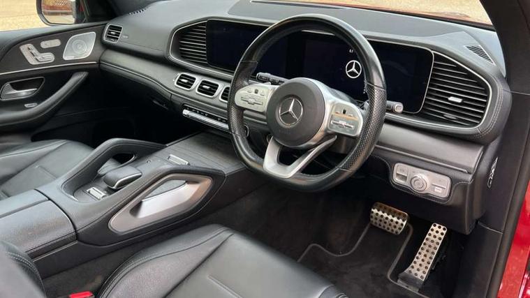 Attention assist, Brake wear warning display, Cockpit display 12.3" widescreen digital instrument cluster, Direct steer speed sensitive steering, DYNAMIC SELECT with a choice of driving modes (ECO, Comfort, Sport and Individual), Easy-pack tailgate - Powered opening/closing automatically, ECO start/stop function, Geofencing, Hard-disk navigation, Hey Mercedes Voice activation, High resolution 12.3" multimedia colour display, MBUX augmented reality for navigation, MBUX multimedia system with DAB digital radio and touchpad including satellite navigation, Mercedes me connect including emergency call system, accident recovery, breakdown management and maintenance, Outside temperature display, Remote boot release, Service indicator (ASSYST), Smartphone integration with Apple CarPlay and Android auto, Status display for rear seat belts in instrument cluster, Traffic Sign Assist, Traffic sign recognition including wrong way warning function and display of posted speed limits in the instrument cluster, Trip computer in multifunction display showing current fuel consumption, Wireless charging system for mobile devices, 85 litre fuel tank, Agility control suspension with selective damping system and lowered by 15mm, Diesel particulate filter (DPF), Incorrect fuelling protection, Additional USB connection, Burmester surround sound system, DAB Digital radio, Dual bluetooth interface, 2 USB ports (type C), Adaptive brake lights, Adaptive high beam assist, Aerial for GPS, Aluminium look, illuminated running boards with rubber studs, AMG bodystyling front and rear aprons and side skirts in polished aluminium, Body colour door mirrors, Body coloured bumpers, Electric windows with one touch opening/closing and obstruction sensors, Exterior mirrors heated and electronically adjustable, Front green tinted glass, LED rear lights, Multi beam LED headlights, Panoramic sunroof, Privacy glass - heat insulating dark tinted glass, Radiator grille with integrated star and single louvre in matt iridium silver with chrome trim, Radio aerial integrated into rear window, Rain sensing windscreen wipers, Rear wiper, Roof rail system, Top surround of side windows in polished aluminium, Visible twin pipe exhaust system integrated into bumper, Waistline in polished aluminium, 3 spoke AMG multifunction steering wheel with touch control buttons, trimmed in black nappa leather with flattened bottom section, 3rd row of seats for 2 people, 4 way adjustable front head restraints and 2 way rear head restraints, 4 way lumbar support, 40:20:40 split folding rear seats, AMG brushed stainless steel sports pedals with rubber studs, AMG floor mats with AMG lettering, Artico man-made leather upper dashboard with contrast topstitching, Automatic child seat recognition sensor, Black fabric roof liner, Central stowage compartment with 12 V socket in centre console, Chrome door pins, Courtesy lights in rear grab handles with reading light functionality, Electric folding second row seats adjustments, Electronically adjustable three second row seats, Four way partially front electric seat adjustment, Front centre armrest with stowage compartment and illuminated grab handles, Gearshift paddles on steering wheel, Glasses compartment in overhead control panel, Glove compartment - lockable, air conditioned and illuminated, Heated front seats, Interior lighting - 64 colour Ambient lighting, ISOFIX child seat attachment points two outer rear seats, Nappa leather upholstery, Seat occupancy sensor for front passenger seat, Second row three seats, Steering column manually adjustable for height and reach, Sunvisors with illuminated vanity mirrors, Thermotronic automatic 4 zone climate control, Touchpad, Air balance package - GLE, Airmatic package - GLE, Anti theft Protection package - GLE, Driving assistance pack - GLE Premium Plus/GLE 53, Energizing comfort package - GLE, Keyless go comfort package - GLE, Memory package - GLE, Mirror package - GLE, Parking package with 360 camera - GLE, Active bonnet, Adaptive brake system with HOLD function and brake drying in the wet, Airbags - driver and front passenger, with extended adaptivity for front passenger airbag, Airbags - sidebag for driver and front passenger with combined thorax/pelvis bag, Airbags - windowbags, Anti-lock braking system (ABS), Childproof locks manually operated for rear doors and electrically operated for rear power windows, Drivers knee airbag, Electronic parking brake, Electronic Stability Programme (ESP), Perforated front brake discs and brake calipers with Mercedes-Benz lettering, Pre-Safe anticipatory safety system, Three point rear seat belts, Tyre pressure monitoring system and loss warning system, Warning triangle and first aid kit, Alarm system/interior protection/immobiliser, Central locking with interior switch, automatic locking and crash sensor with emergency opening function, Chrome surround electric key, Keyless entry, Dashboard and door, anthracite open pore oak wood trim, Trim - Centre console, anthracite open pore oak wood trim, 22" AMG 5 twin spoke light alloy wheels painted in black with a high sheen finish, Summer tyres with noise reducing absorber, TIREFIT with tyre inflation compressor,