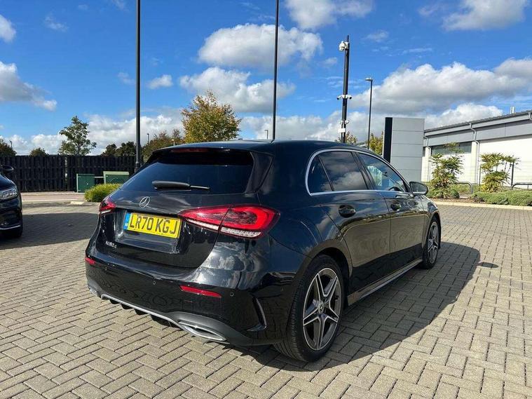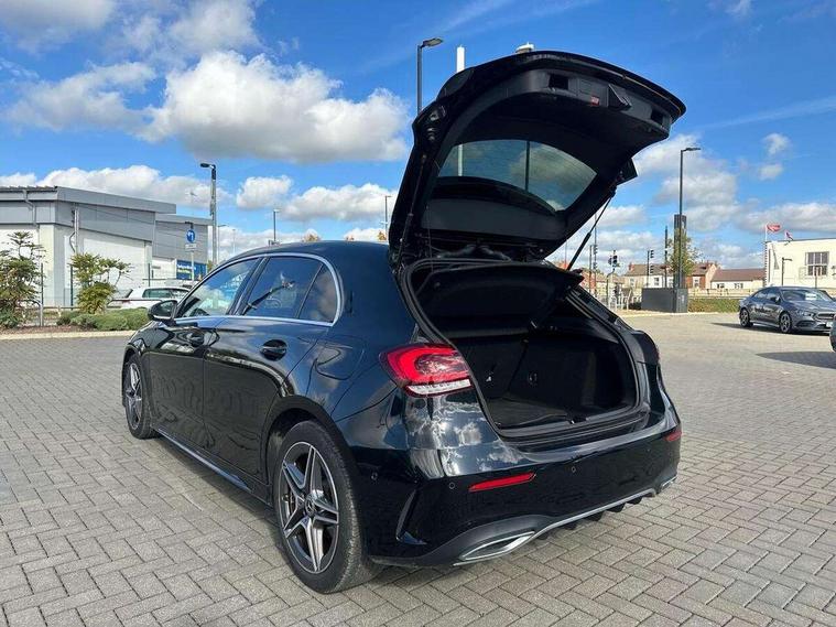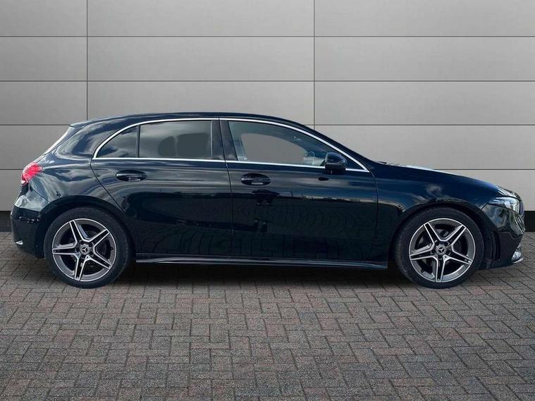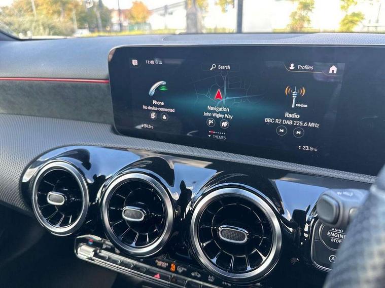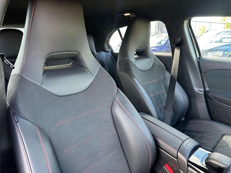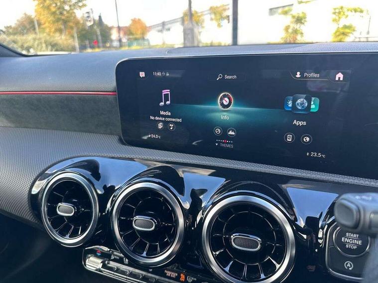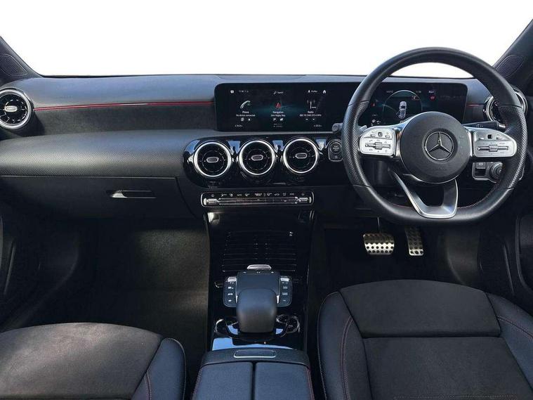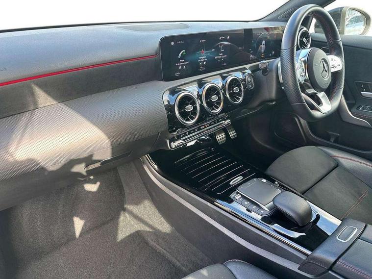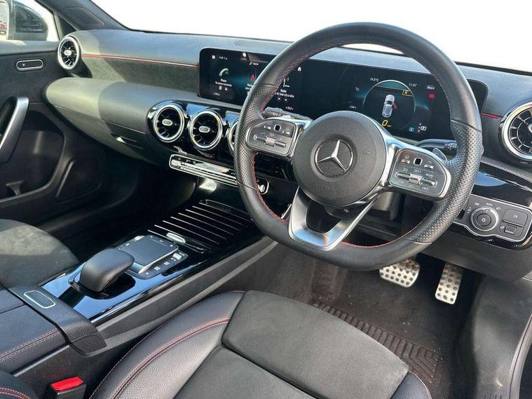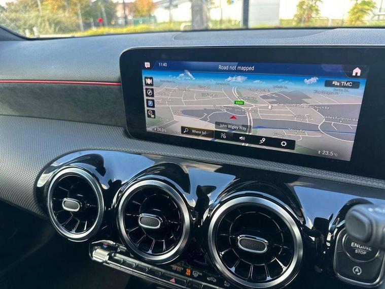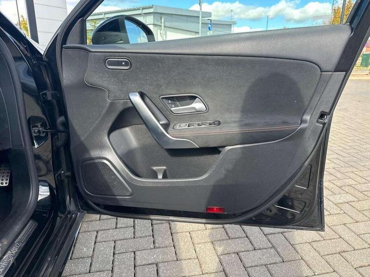10.25" media display, 180 degree rear view camera with parking guidelines, 7" colour screen in instrument panel, Active lane keep assist, Active park assist with parktronic system including front and rear parking sensors, Attention assist, Brake pad wear indicator warning light, Car wash mode, Cruise control + speed limiter, Direct steering, Dual bluetooth interfaces, DYNAMIC SELECT with a choice of driving modes (ECO, Comfort, Sport and Individual), ECO start/stop function, Fluid level warning indicator for fuel, oil, coolant and washer fluid, Hard-disk navigation, Hey Mercedes Voice activation, Lamp failure indicator, Mercedes me connect including emergency call system, accident recovery, breakdown and maintenance management, Outside temperature gauge, Owners manual in English, Pre-installation for private car sharing, Pre-installation for Vehicle Monitoring, Pre-installation for Vehicle Setup, Preinstallation for Mercedes Benz link, Service indicator (ASSYST), Smartphone integration with Apple CarPlay and Android auto, Speed sensitive power steering, Trip computer, Wireless charging, Lowered comfort suspension, Rear axle torsion beam, 2 USB ports (type C) in rear stowage compartment and one in front of center console, 6 speakers, DAB Digital radio, MBUX multimedia system with DAB digital radio and touchpad including satellite navigation, Mercedes-Benz sound system - 100W, 4 Electric Front and Rear windows, Adaptive brake lights, AMG bodystyling - Front apron with splitter in chrome, rear apron with chrome trim and chrome visible trim elements in tailpipe, Black weather strip, Body colour bumpers, Body colour door handles, Body colour side skirt, Body coloured door mirrors, Chrome beltline trim, Diamond radiator grille with chrome pins and silver louvre + chrome insert, Electric adjustable and heated door mirrors with integrated LED side indicators, Exhaust system - Twin visible tailpipes in polished stainless steel, Headlamp assist automatic headlamp activation, Heated glass rear windscreen + timer control, LED high performance headlamps with integrated LED daytime running lights, LED tail lamp, LED third brake light, Privacy glass, Radio aerial, Rain sensing windscreen wipers with two sensitivity settings, Rear fog lights, Rear wiper, Window line trim strip in chrome, 3 Spoke flat bottom leather multi function steering wheel with perforated leather in grip area, 40:20:40 split folding rear seats, Artico man-made leather/Microfibre Dinamica upholstery with red contrast stitching, Auto Mercedes-Benz child seat recognition sensor, Black air vents with surround in silver chrome, Black roof lining, Brushed stainless steel sports pedals with rubber studs, Controller on centre console with chrome surround, Floor mats with stitched edging and AMG lettering, Front centre armrest with storage compartment, Front door sills with Mercedes Benz lettering, Front seat backs luggage nets, Front seat cushion length adjustment, Galvanished gear shift paddles on steering wheel, Heated front seats, Height/reach adjustable steering column, Interior mirror with reading lamps in black and frameless, Manual height adjustable front seats, Rear head restraints, Seat occupancy sensor for front passenger seat, Sports seats with integrated headrests, Stowage compartment in centre console with retractable cover, Sunvisors with illuminated vanity mirrors, Touchpad on center console, Twin front cupholders, Two zone thermotronic luxury automatic climate control, Light and sight pack - A Class, Mirror package - A Class, Seat comfort pack - A Class, 3 rear 3 point seatbelts, ABS with Brake Assist, Active bonnet, Active brake assist includes forward collision warning system with autonomous braking, Adaptive brake assist with hold function and hill start assist, Black seatbelts, Childproof locks manually operated for rear doors and electrically operated for rear power windows, Crash responsive emergency lighting, Driver and passenger head and side airbags, Drivers knee airbag, Dual stage driver/passenger airbags, Electronic parking brake, ESP curve dynamic assist, ESP with ASR, Front and rear seatbelt reminder, Front brake callipers with Mercedes Benz lettering, ISOFIX and top tether child seat fixing points in two outer rear seats, Tyre pressure monitoring system, Warning triangle and first aid kit, Window airbags, Alarm system/interior protection/immobiliser, Keyless Go, Remote central locking and crash sensor with emergency opening function, Urban guard vehicle protection system with immobiliser and interior protection, Dinamica microfibre trim in black, 18" AMG 5 twin spoke light alloy wheels in titanium grey with highsheen finish, Summer tyres, Tirefit sealant kit,