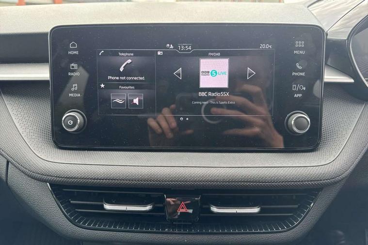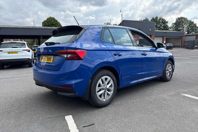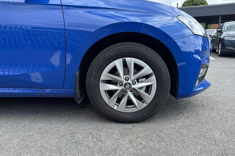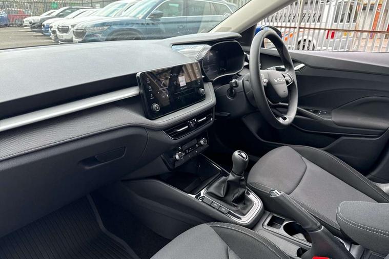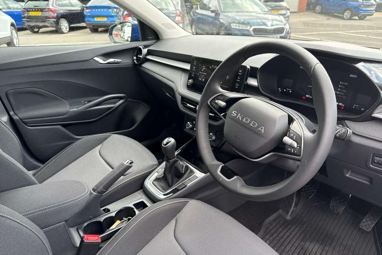 8" Digital instrument display, Advanced driver attention and drowsiness monitor, Bluetooth connection, Electromechanical power steering, Exterior temperature gauge, Service interval indicator, Traffic sign recognition, Wireless SmartLink for Apple CarPlay and Android Auto, 6 Speakers (4 in front and 2 in rear), 8.25" Skoda infotainment touchscreen display, Auxiliary socket for external MP3 player, DAB digital radio reception, Auto dimming rear view mirror, Body colour door mirrors, Body coloured bumpers, Door mirror integrated indicators, Front and rear electric windows, Front window wiper intermittent control, Headlight range control - Automatic, Ice scraper in fuel cap, LED 3rd brake light, LED daytime running lights with coming and leaving home feature, LED rear lights, Rear LED fog light, Rear side wing doors, Rear window wiper with washing nozzles, Roof mounted spoiler, SKODA tailgate lettering in chrome, Unique dark chrome design logo on alloy wheels, 2 reading lights in front and 2 reading lights in rear, 3 rear headrests, Backrest split and folding, Central console with removable cup holder and storage box, Chrome handbrake release button, Dual zone air conditioning with climatronic electronic control, Fabric upholstery, Front centre armrest, Gearshift knob/handle in leather, Grain satin black interior door handles, Hand brake lever handle in leather, Height adjustable front headrests, Height adjustable front seats, Height adjustable steering wheel, ISOFIX and TopTether anchorage points to the outer rear seats, ISOFIX and TopTether on the front passenger seat, Luggage compartment lighting, Manually adjustable lumbar support in front seats, Pollen filter, Rear seat bench unsplit, Single front passenger seat, Skoda lettering on steering wheel, Storm grey headlining, Sun visors with mirror and airbag label on passenger side, Textile floor mats, Ticket holder, Umbrella in drivers door, 3-point height adjustable front seats belts with pretensioner and force limiter, Automatic warning lights in case of crash, Driver and passengers airbag with switch off function, e-Call+, ESC including ABS, MSR, ASR, EDS, HBA and XDS, Front and rear seat belt warning, FRONT ASSIST (AEB City and AEB Inter Urban), Front side airbags, Head airbags, One tone horn, Pedestrian protection, Three rear 3-points safety seat belts with pretensioner and force limiter including stop function for outer rear seat belts, Tyre pressure monitoring system, Anti-theft alarm system including immobiliser, interior monitoring, backup horn, and towing protection, Central locking with radio remote control, interior controls, SAFE function and 2 foldable keys, Black painted air vents, Grain satin black central console cover, Metallic grey upper decorative trim, Satin black door and side trim panel in front, Textile Kota grey lower decorative inserts, Anti-theft wheel bolts protection, Super-low rolling resistance tyres,