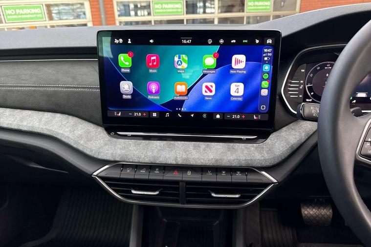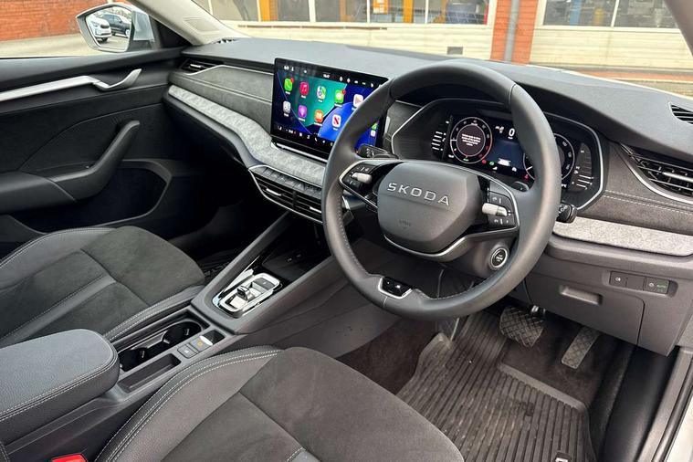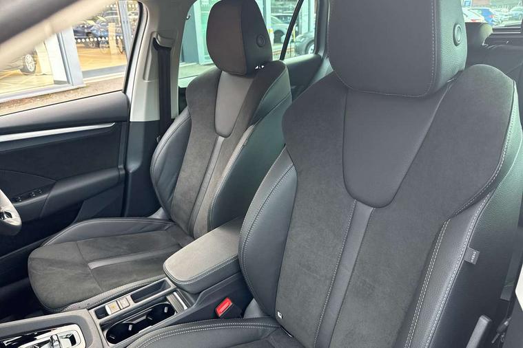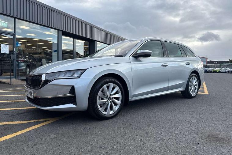 1x USB Typc C port in rear view mirror, 4x USB Type C ports - 2x in front centre console and 2x in rear (45W), Drive mode selection, Driver fatigue sensor, eCall emergency system, Electro-mechanical power steering, Front assist system, Traffic jam assist, Traffic sign recognition, Turn Assist, Virtual Cockpit - 10.25" digital display, Voice control system, Wireless charging (15W) with cooling function, Wireless SmartLink for Apple CarPlay and Android Auto, 13" touchscreen display with navigation, DAB Digital radio, Aero front windscreen wipers with intermittent function, Auto dimming rear view mirror, Body colour bumpers, Body colour door mirrors and handles, Chrome grille surround, Chrome roof rails, Chrome strip in lower front bumper, Chrome window surrounds, Electric front and rear windows, Heated rear windscreen, High level third brake light, Ice scraper in fuel cap, LED daytime running lights, LED Headlights, Logo projection in front doors, Rain and light sensors, Rear fog light on one side, Rear privacy glass, Rear side wing doors, Rear spoiler, Rear window wiper, 12 volt socket in boot, 3 rear headrests, 3 seat bench in 2nd row, 4 foldable roof handles, Front head restraints, Heated front seats, Illuminated glovebox, Interior door handles in dark chrome, Jumbo Box storage, Luggage compartment lighting x2 lights, Mechanical rear seat release from boot, Single front passenger seat, Steering wheel in black leather with black stitching, Storage compartments in left and right of boot, Sun visors with mirrors, Sunglasses storage, Ticket holder, Umbrella in door panel, Unsplit rear bench seat, split folding backrest with centre armrest with cupholder, Comfort package - Octavia Estate, Simply clever package premium - Octavia, 3x3 point rear seat belts, Alarm with interior monitoring, tilt sensor and back up horn, Curtain airbags and front side airbags, Driver and front passenger airbags, Drivers knee airbag, Electronic parking brake, ESC including ABS, EBV, MSR, ASR, EDS, HBA, DSR, Front central airbag, Hill hold assist, ISOFIX on front passenger seat and outer rear seats, Passenger airbag deactivate switch, Three point seat belts in front and rear, Two tone horn, Tyre pressure monitor, Visual and acoustic seat belt reminder, Warning reflectors in front door, Anti-theft wheel bolts, Keyless start/stop, Remote central locking, Chrome air vent surrounds,