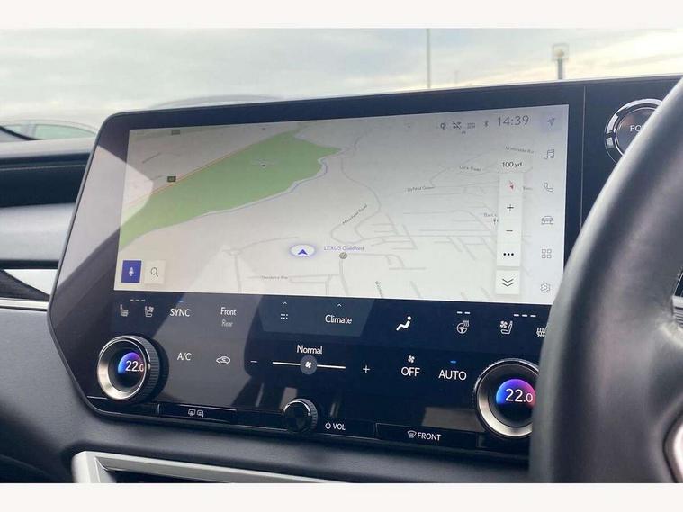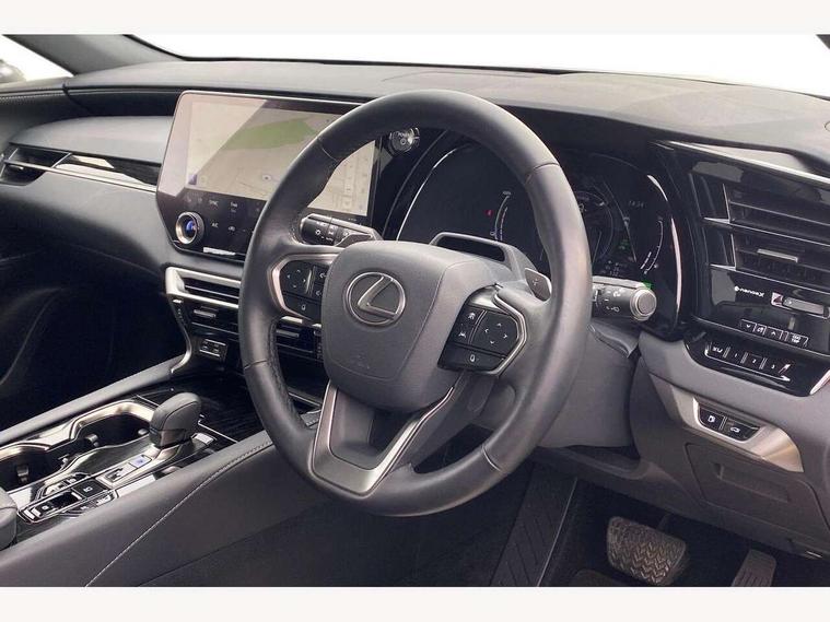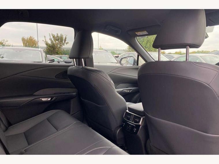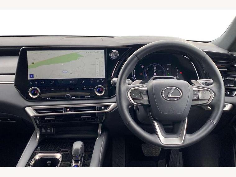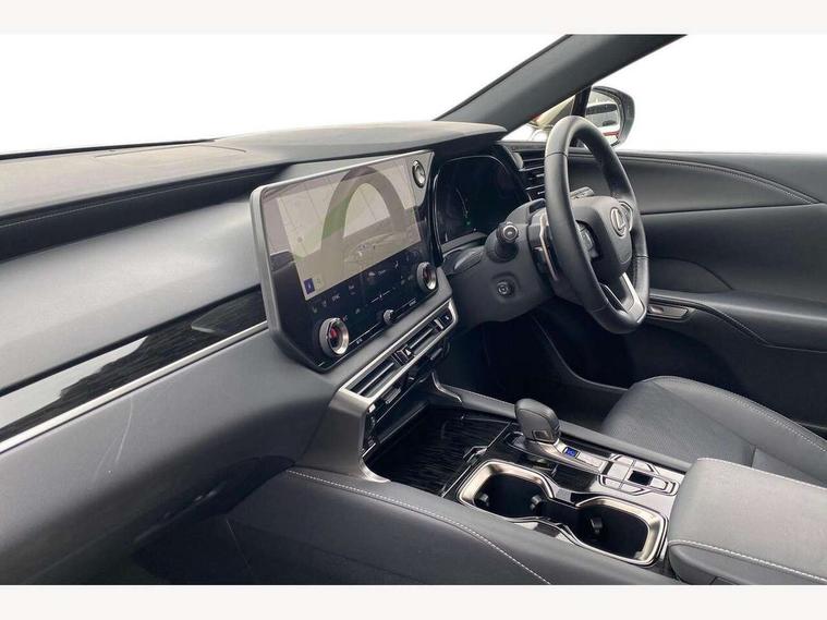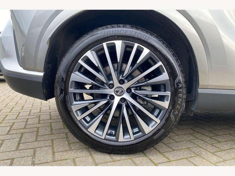 360 degree panoramic view monitor, Bluetooth mobile phone connectivity, BSM - Blind spot monitoring, Drive mode selector, Driver monitoring system, E-call, Head up Display, Intelligent clearance sonar, Lexus link connected services including over the air updates, MM21 Lexus link pro - 14" HD touchscreen with embedded and cloud based navigation, voice assistant, connected services, over the air and always online, Push button starter, Rear cross traffic alert, Speed sensitive electric power assisted steering, Ultrasonic parking sensors, Wireless Apple CarPlay and wired Android Auto, Wireless Smartphone charger, 3 pin to Type 2 10A charging cable, 6.6 kW onboard charger, E-Four Automatic transmission, Type 2 AC charging, Type 2 mode 3 32A charging cable, Vehicle Stability Control (VSC), 12 speakers audio, 5 USB ports (3 front USB C and 2 rear USB C), DAB Digital radio, 3 projector bi-beam LED headlight with auto high beam, Auto dimming rear view mirror, Auto headlights, Front and rear one touch power windows with voice command, Front and rear silver window frame mouldings, Glove and towel set, Headlight washers, Heated, auto-folding door mirrors, auto dimming with rerverse tilt, turn indicators and panoramic view sensors, L-shaped rear light bar, LED brake lights and rear lights with emergency brake signal, LED cornering headlights, LED daytime running lights, LED front and rear fog lights, LED Indicators, Power back door with kick sensor, Privacy UV glass, rear doors and tailgate, Rain sensor windscreen wipers, Rear side wing doors, Rear wash/wipe, Roof rails, Variable front intermittent wipers, 12V accessory port centre console and luggage compartment, 2 cup holders in centre console, 2 way electric lumbar support for driver and front passenger, 2 x Sunvisors with vanity mirror and lamp, 3 rear headrests, 3 seat bench in 2nd row, 40:20:40 split folding rear seats, 64 colour LED ambient interior illumination with 14 pre-set themed colour tones, 8 way electrically adjustable front seats, Charge cable bag, Driver seat memory function, Easy access driver seat, Easy access steering wheel, Front aluminium scuff plates, Front headrests, Front tray in front of centre console, Glovebox, Heated and ventilated front seats, Heated steering wheel, Leather steering wheel, Lever type shft control, Manually adjustable rear seats, Power adjustable steering wheel, Rear resin scuff plates, Single front passenger seat, Smooth leather upholstery, Textile carpet mats, Three zone climate control air conditioning system, Two way opening centre armrest with storage, 2 x Isofix child rear seat restraints, 3 point ELR front and rear seatbelts with pretensioners, ABS, Curtain shield airbags (front and rear), Driver and front passenger 2 stage airbag, Driver/front passenger side airbags, Drivers knee airbag, E-Latch with safe exit assist, EBD + Brake Assist, Electronic parking brake, Electronically controlled braking, Extended lexus safety system+ 3 - lane change assist, front cross traffic assist, Front and rear left/right force limiters and tension reducers, Front and rear left/right seatbelt reminders, Front centre airbag, Hill assist control, Lexus safety system+ 3 - dynamic radar cruise control, pre collision system day and night, lane tracing assist, road sign, Manual child lock in rear doors, Passenger airbag cut-off device, Traction control, Tyre pressure warning, 2 x remote key fobs, Customisable auto door lock, Locking wheel nuts, Motion sensor key, Smart keyless entry, Thatcham category 1 alarm + immobiliser, VIN etching, Black Inlay, 21" Alloy wheels,