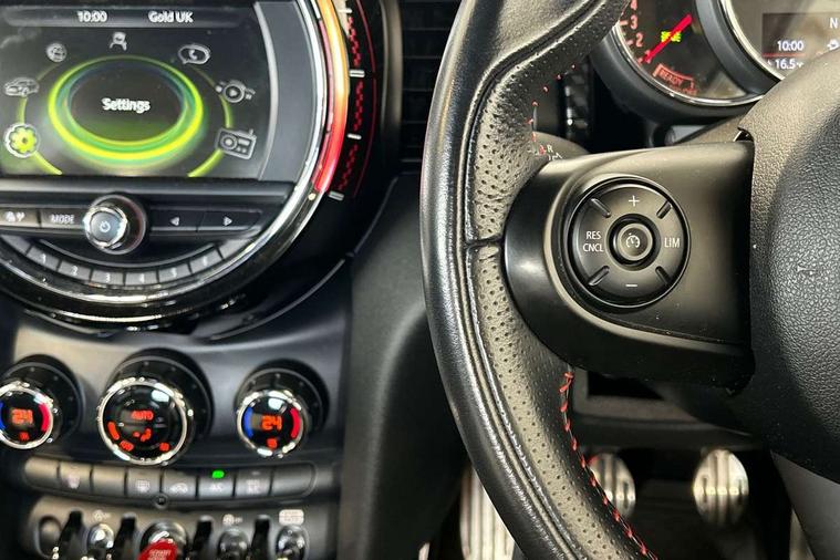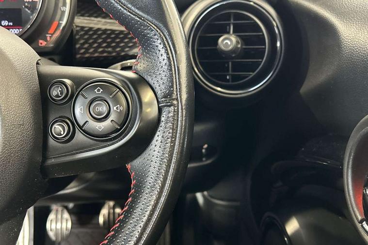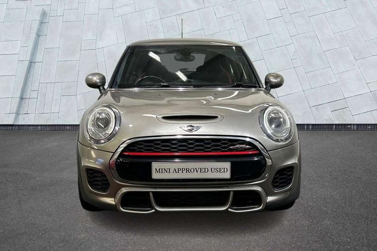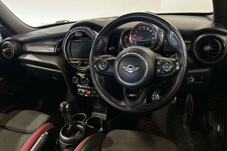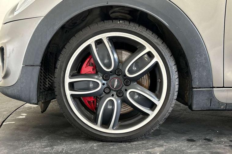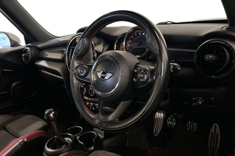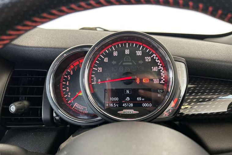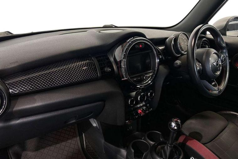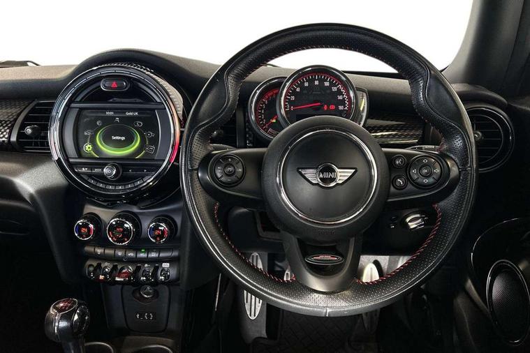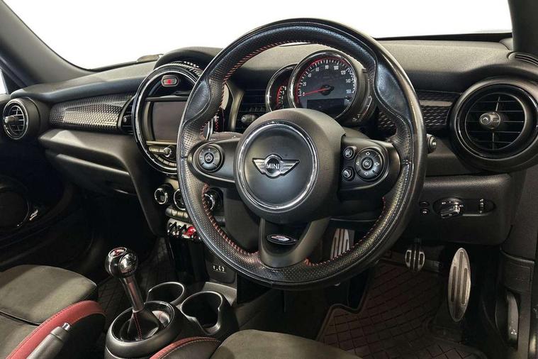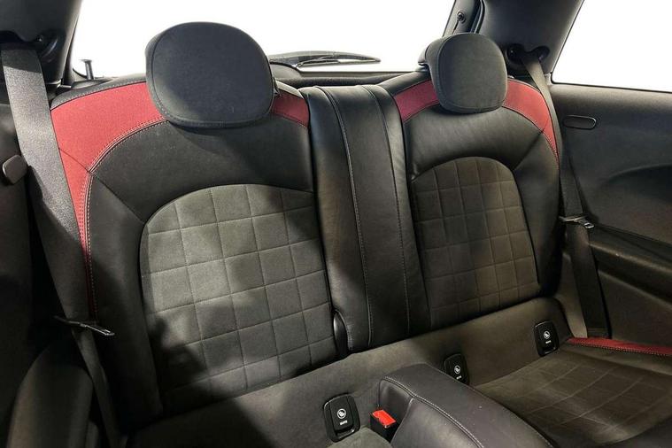 Acoustic seat-belt warning, Brake fluid level warning light, Brake pad wear indicator warning light, DTC - Dynamic traction control, Exterior temperature gauge, Intelligent emergency call, MINI Driving Modes - centre toggle switch to control driving setting (sport, mid and green), MINI TeleServices, Oil level indicator, On board computer, Push button starter, Service interval indicator, Servotronic PAS, Electronic differential lock, Performance Control, Auxiliary input socket, DAB digital radio module, 2 speed wipers+intermittent wipe, Anti dazzle mirror, Anti trapping/one touch open close front windows, Body colour scoop integrated into engine- compartment lid, Body coloured bumpers, Chili red grille bar, Chrome bezels around rear lights and headlights, Chrome door handles, Chrome plated fuel cap, Chrome plated trim on bottom edge of window, Chrome strip on lower grille, Electric front windows, Electrically adjustable door mirrors, Extended wheel arches, Follow me home headlights, Green tinted heat insulating glass, Heated door mirrors/heated windscreen washers, Heated rear window with auto timer, High gloss black tailgate, Honeycomb radiator grille, John Cooper Works roof spoiler, LED fog lights, Metal look door sill finishers, Rear apron, Rear wiper, Side scuttles, Twin chromed exhaust pipes, White indicator lights, 2 rear head restraints, 4 boot load lashing points, 6 way manually adjustable passenger seat, 6-way manually adjustable driver's seat, Active carbon filter, Air recirculation system, Anthracite headlining, Auxiliary socket in centre console storage compartment, Centre console storage, Driver's seat height adjuster, Driver/passenger sunvisors, Easy entry seats, Front and rear cupholders, Front head restraints, Front interior light, Front passenger grab handle, Front seat backrest storage nets, Front sports seats, Gear/selector and handbrake in artificial leather, Internal chrome door handles, Isofix child seat preparation, Luggage compartment lighting, Multifunction steering wheel, Passenger seat height adjuster, Reach + rake adjustable steering column, Rear grab handles, Rear storage trays, Split folding rear seats, Storage compartments in doors, Toolkit in luggage compartment, Vanity mirrors, 3 point seatbelts, ABS/EBD, ASC+T, Brake calipers in red, Cornering brake control (CBC), Crash Sensor - activates hazard/interior lighting + unlocks doors, Driver and passenger airbags, Driver/front passenger side airbags, DSC - Dynamic Stability Control, Fuel cut off safety device, Head airbags, Hill start assist, Passenger airbag deactivation system, Seatbelt pretensioners, Tyre pressure warning, Ventilated front disc brakes, Drive away door locking, Locking wheel bolts, Remote central locking/doors+fuel cap+tailgate, Second remote key, Thatcham category 1 alarm + immobiliser,