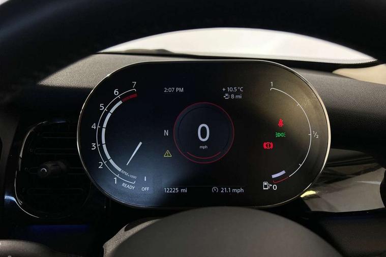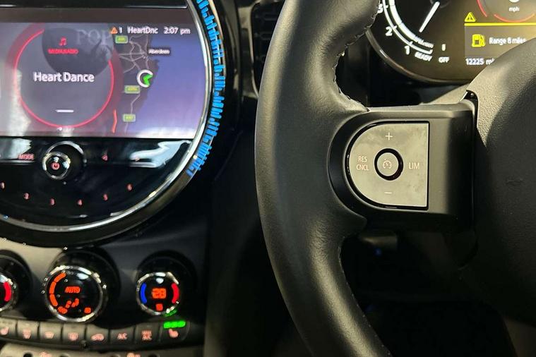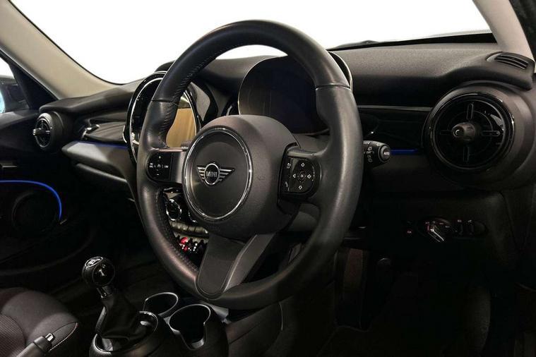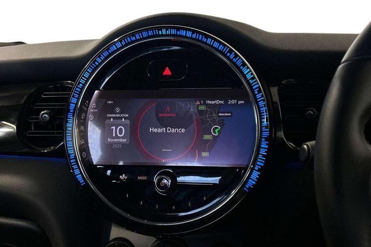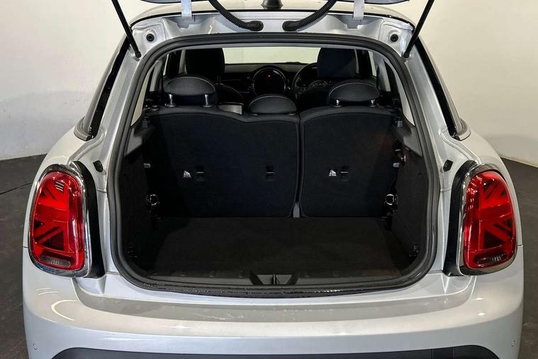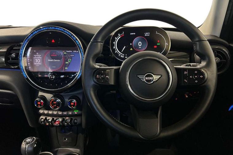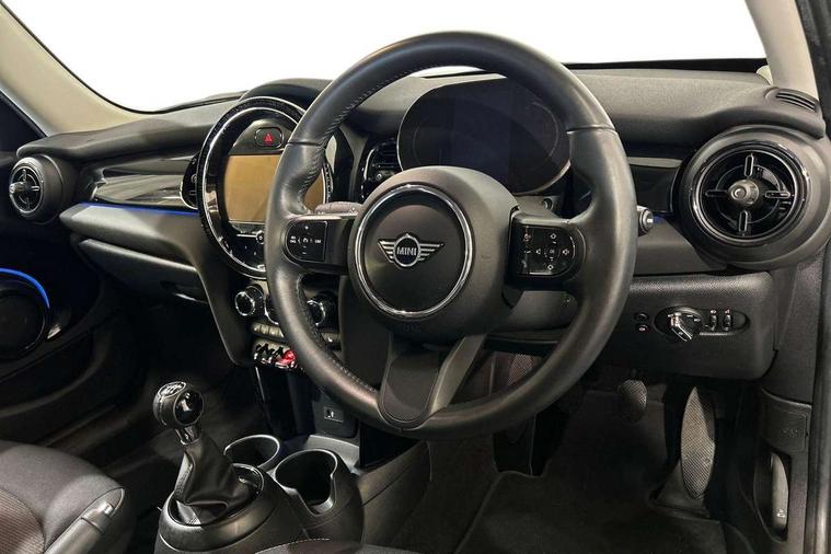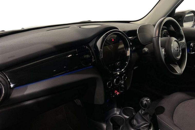 Automatic start/stop function with brake energy recuperation, Compatible mobile phone bluetooth with audio streaming, Cruise control with brake assist, Electro-mechanical speed dependant steering assistance, Flexible car sharing preparation, Instrument cluster, Mini E-call, MINI TeleServices, On board computer, Service interval indicator, 6 Speed manual transmission including gear change indicator display, Double Vanos system, Fully variable valve control, High precision injection, Performance Control, 6 speakers in front door trims and underneath front seats, 8.8" touchscreen with LED ring, FM tuner and DAB digital radio, Automatic headlight activation switch, Body colour fuel filler cap, Chrome border high gloss black slats radiator grille, Dynamic brake lights, Electric front+rear windows, Exhaust tailpipe on left with chrome finisher, Heated rear window, Heated windscreen washer jets, LED headlight with closed ring and daytime driving lights, Metal door sill strips with MINI imprint, Model logo Cooper on right of tailgate, Rain sensor window wipers, Rear fog lights, Rear LED lights with union jack design, Rear window wiper, Side scuttle panel with integrated indicator, Sun/heat protection glass, White indicator lenses, 12V Accessory socket in centre console, 4 lashing eyes in luggage compartment, 60/40 split folding rear seat, Ambient lighting, Carbon black colour line - Knee roll and door armrest, Chrome interior highlights, Cupholders, Front and rear head restraints, Front and rear isofix with front passenger airbag deactivation, Glove compartment, Height and length steering column adjustment, Interior lighting with 12 different colours across the dashboard, underneath door bezel with illuminated laser-engraved design on central display, Leatherette gearshift lever and handbrake gaiters, LED reading lights, vanity mirror lights, front foot well light and spotlight on front seats, Manual air conditioning, Mechanical seat adjustment - forward/back & backrest for front seats and driver seat height adjust, Multifunction steering wheel, Satellite grey headlining including grab handles and clothes hooks, Sport leather steering wheel with speed limiter and audio/communication controls, Storage compartments in doors, Sunvisors with vanity mirrors, Tool kit, Velour floor mats, 3 point seatbelts on all five seats, 6 Airbags - front, side, head and seat belt tensioners, Anti-lock braking system (ABS), DSC - Dynamic Stability Control, Front and rear disc brakes, Hill start assist, Single tone fanfare horn, Tyre pressure monitoring system, Alarm system with tilt sensor, monitoring doors, bonnet interior and tailgate, Electronic vehicle immobiliser, Start/stop toggle with keyless go, Piano black interior trim, Tyre repair kit,