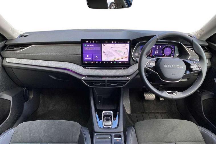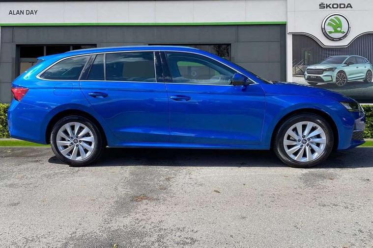 1x USB Typc C port in rear view mirror, 4x USB Type C ports - 2x in front centre console and 2x in rear (45W), Drive mode selection, Driver fatigue sensor, eCall emergency system, Electro-mechanical power steering, Front assist system, Traffic sign recognition, Turn Assist, Virtual Cockpit - 10.25" digital display, Voice control system, Wireless charging (15W) with cooling function, Wireless SmartLink for Apple CarPlay and Android Auto, 13" touchscreen display with navigation, DAB Digital radio, Aero front windscreen wipers with intermittent function, Auto dimming rear view mirror, Body colour bumpers, Body colour door mirrors and handles, Chrome grille surround, Chrome roof rails, Chrome strip in lower front bumper, Chrome window surrounds, Electric front and rear windows, Electrically adjustable, heated, folding and driver side auto-dimming door mirrors, Heated rear windscreen, High level third brake light, Ice scraper in fuel cap, LED daytime running lights, LED Headlights, Logo projection in front doors, Rain and light sensors, Rear fog light on one side and reversing lights on both sides, Rear privacy glass, Rear side wing doors, Rear spoiler, Rear window wiper, 12 volt socket in boot, 3 rear headrests, 3 seat bench in 2nd row, 4 foldable roof handles, Front head restraints, Heated front seats, Illuminated glovebox, Interior door handles in dark chrome, Jumbo Box storage, Luggage compartment lighting x2 lights, Mechanical rear seat release from boot, Single front passenger seat, Steering wheel in black leather with black stitching, Storage compartments in left and right of boot, Sun visors with mirrors, Sunglasses storage, Ticket holder, Two-spoke leather multi function steering wheel with paddles, Umbrella in door panel, Unsplit rear bench seat, split folding backrest with centre armrest with cupholder, Comfort package - Octavia Estate, Simply clever package premium - Octavia, 3x3 point rear seat belts, Alarm with interior monitoring, tilt sensor and back up horn, Curtain airbags and front side airbags, Driver and front passenger airbags, Drivers knee airbag, Electronic parking brake, ESC including ABS, EBV, MSR, ASR, EDS, HBA, DSR, Front central airbag, Hill hold assist, ISOFIX on front passenger seat and outer rear seats, Passenger airbag deactivate switch, Three point seat belts in front and rear, Two tone horn, Tyre pressure monitor, Visual and acoustic seat belt reminder, Warning reflectors in front door, Anti-theft wheel bolts, Keyless entry and start/stop, Remote central locking, Chrome air vent surrounds,