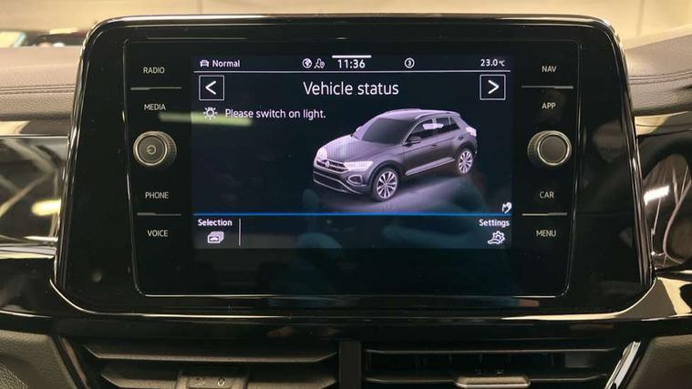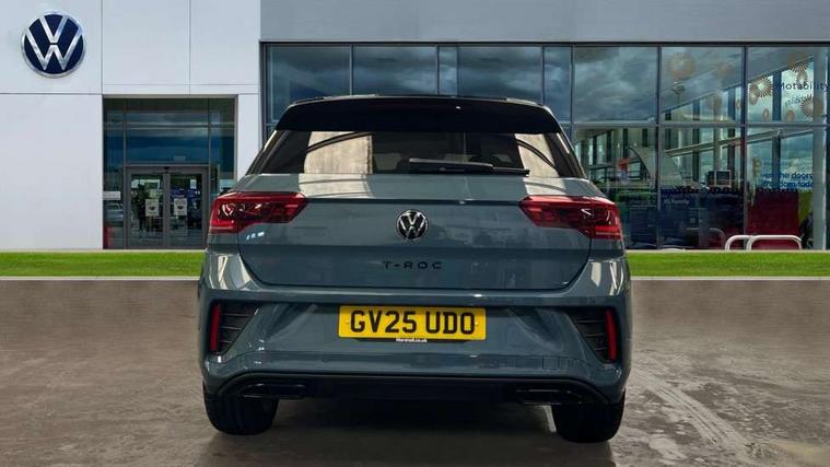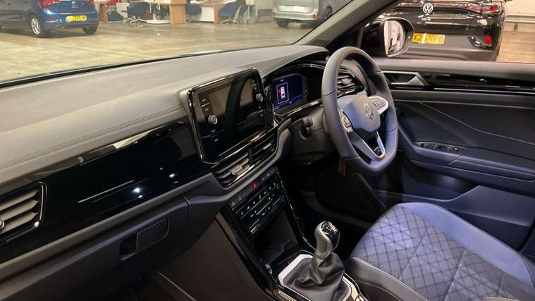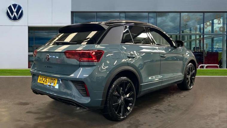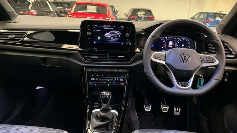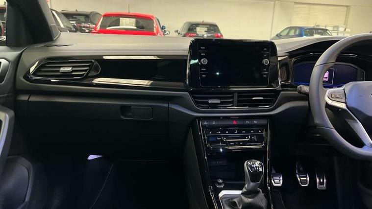 10.25" Digital cockpit pro, Advanced driver attention and drowsiness monitor, Emergency call service, Lane keeping system Lane Assist, Mobile phone interface, Modified key software - reduce switch off time for key status change to Long no motion, Online services, Park assist including front and rear parking sensors, Power assisted speed sensitive steering, Service interval indicator, Tailgate/trunk lid release from outside, Think blue trainer driver tips and journey analysis, Warning sound and light for front seatbelts unfastened, Wireless app connect, Battery regeneration during braking, Rear shock absorption chassis with increased ride height, Start/stop function with battery regeneration, DAB Digital radio, Diversity antenna for FM reception, Front and rear 6 speakers, Music playback - MP3, WMA and AAC files, Premium USB cable in choice of either Apple or Android smartphone compatibility, SD card slot, Simultaneous pairing of 2 compatible mobile devices, Title and cover art display, We Connect and We Connect Plus functionality, Auto dimming interior rear view mirror, Automatic hazard lights activation under emergency braking, Automatic headlight control with LED separate daytime running lights with coming/leaving home function, Dynamic cornering light, Electrically adjustable and heated door mirrors, Extended roof spoiler, Exterior mirrors aspherical on driver side, convex on front passenger side, External USB type C socket and charging sockets, Front windscreen wiper with intermittent wipe and 4 position delay, Heated rear window, Illuminated front grille, IQ LED matrix headlights, LED 3rd brake light, LED rear number plate lights, LED rear tail lights with dynamic turn signal, Light mode for poor weather, rain, fog or snow, Power windows with comfort operation and circuit breaker, R-Line design body coloured bumpers, Rain sensor, Rear exhaust tailpipe, Rear fog light on one side and reversing lights on both sides, Rear side wing doors, Rear wash/wipe with intermittent wipe setting, Remote electrically foldable door mirrors, puddle lights and reverse activated passenger's door mirror, 12V power socket in centre console, 3 rear head restraints, 3 seat bench in 2nd row, 4 load lashing points in luggage compartment, Air care climatronic air conditoning system with active combination filter and 2-zone temperature control, Artvelours cloth upholstery, Black roof lining, Chrome plated radiator grille inserts, air vent surrounds and light switch surrounds, Door and side trim panel with leatherette insert, Drawer under drivers seat, Driver seat height adjust, Driver's seat lumbar support, Front + rear carpet mats, Front centre armrest, Front comfort sports seats, Front cupholders x 2, Front footwell illumination, Front reading light, Front scuff plates with R Line logo, Front seat back storage pockets, Glove compartment door with light, Instrument lighting, white adjustable panel illumination, Interior ambient lighting and surround lighting, Interior light delay, Isofix child seat preparation, Leather gearshift handle, Load-through provision with cup holder when folded down ('Unsplit rear seat bench, split folding backrest, with centre armrest), Luggage compartment lighting, Non-folding front passenger seat backrest, Passenger seat height adjuster, Passenger seat lumbar support, Single front passenger seat, Stainless steel pedals, Storage compartment in left and right luggage area, Storage compartment in rear doors, Storage compartments in driver and front passenger doors, Sunvisors with illuminated vanity mirrors, Variable boot floor, height adjustable and removable, Winter pack without heated windscreen washer jets - T-Roc, 3 point height adj front seatbelts + pretensioners, 3 point seatbelts in outer rear with ECE label, ABS, Child locks on rear doors, City emergency braking and pedestrian monitoring, Driver and front passenger airbag with front passenger airbag deactivation, Driver and front passenger safety-optimised head restraints, Drivers seatbelt reminder, Electronic parking brake, Electronic Stability Control (ESC) inc EDL (Electronic Differential Lock) and ASR (Traction Control), Front and rear passengers curtain airbag system including front side airbags, Front disc brakes, Hill start assist, Predictive pedestrian protection, Rear disc brakes, Two tone horn, Tyre pressure loss indicator, Volkswagen roadside assistance, Tool kit, Trims for alloy wheels, Tyre mobility kit including compressor and sealing foam,