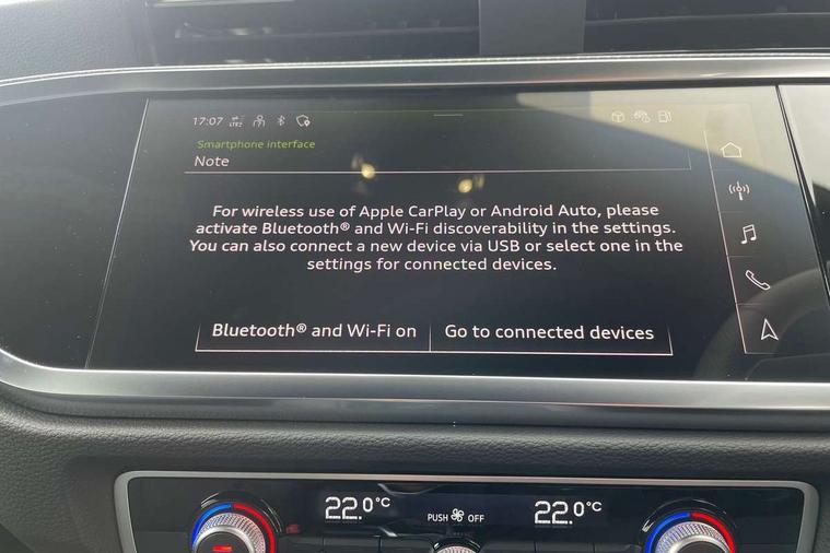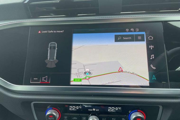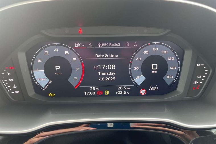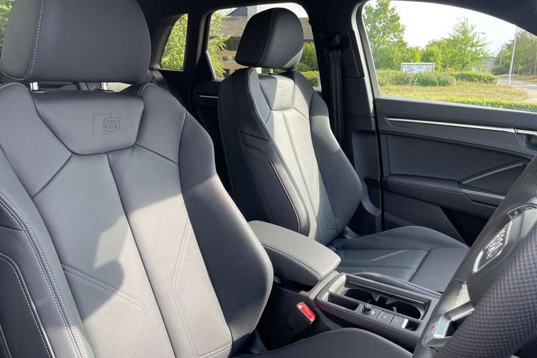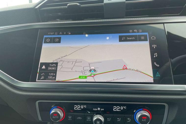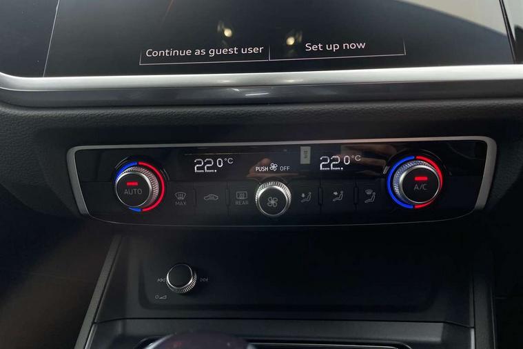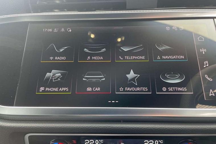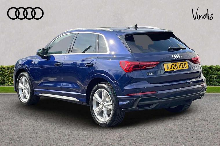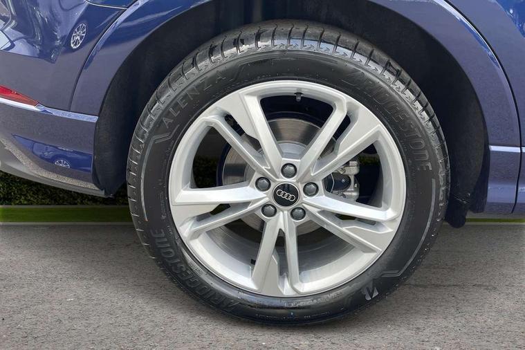Amazon alexa Integration, Audi connect safety and service, Audi drive select, Audi lane departure warning, Audi Virtual Cockpit - 10.25" display, Bluetooth interface, Camera based traffic sign recognition, Distraction and Fatigue warning, Legal emergency call, MMI Navigation Plus with high resolution 10.1 inch touchscreen colour display, Power operated tailgate, Progressive steering, Service interval indicator, Smartphone interface includes wireless Apple carplay/Android Auto, Start stop system with recuperation, Voice control system with natural language interaction, Sports suspension, 2 USB-C ports with charge and data functions, 6 passive loudspeakers, DAB digital radio module, Acoustic windscreen, Aluminium roof rails, Aluminium window trim, Anthracite black radiator grille, Auto dimming door mirrors, Auto dimming frameless rear view mirror, Body colour front spoiler blade, Electrically folding, adjustable and heated door mirrors with integrated LED side indicators and kerb view function for passenger side, Front and rear electric windows, Front fog lights, Front side air inlets in matt platinum grey, Grille vertical bars in aluminium silver/Matt, High gloss black finish B and C pillars, LED Dynamic rear indicators, LED headlights with LED daytime running lights, LED rear lights, LED third brake light, Privacy glass dark tinted rear and rear-side windows (from B-pillar backwards), Rain and light sensors, Rear diffuser grille in grained matt black, Rear diffuser strip in matt anthracite black, Rear side wing doors, Rear wiper, S line badges on front wings, S Line front and rear bumpers and side skirts, Side skirt insert in matt Platinium grey, Variable front intermittent wipers, 12V socket in rear centre console, 3 seat bench in 2nd row, 3 spoke leather multifunction steering wheel features S badging and grips in perforated leather with contrast stitching, 40:20:40 folding with manual adjustment for 60:40 forwards/backwards position and backrest angle, Adjustable rear seat bench/backrest with centre armrest and cupholder, Black carpet mats, Black cloth headlining, Dual zone electronic climate control, Electric lumbar support, Front and rear black floor mats with contrast stitching in rock grey, Front and rear headrests, Front centre armrest, Height and reach adjustable steering wheel, Horizontal trim strip in matt platinum grey, Illuminated door sill trims with S logo, ISOFIX child seat mounting for front passenger with airbag deactivation and outer rear seat including top tether attachment point for outer rear seats, Luggage compartment sill protection in stainless steel, Manual front seats with height adjustment, Perforated leather gearknob, Single front passenger seat, Stainless steel pedals, Twin leather upholstery with front sport seats + S embossing, Non smoking pack - Q3, 3x3 point rear seatbelts, 6 airbags - Driver, front passenger, curtain and side windows, Audi pre-sense front with pedestrain and cyclist recognition, Electrically operated child locks on rear doors, Electromechanical parking brake, Electronic stabilisation control including ABS, ASR and EDL, Front seatbelt reminder, Hill descent control, Hill hold assist, Pre sense basic, Seatbelt monitoring, Tyre pressure warning, Warning triangle and first aid kit, Anti theft wheel bolts, Immobiliser, Remote central locking, Thatcham approved category 1 anti theft alarm, Aluminium look interior elements, Dark matt brushed aluminium inlay, Detail dashboard around MMI touch colour display in glass look, black with surround in aluminium look, Leatherette door armrest,