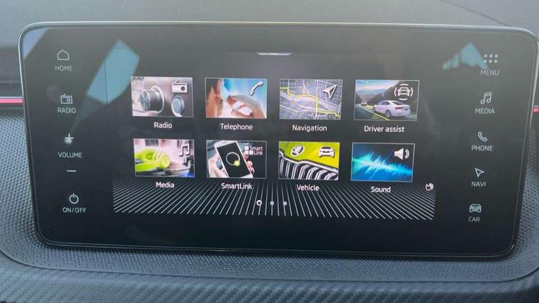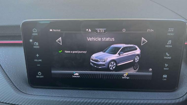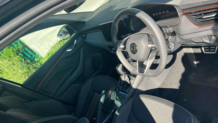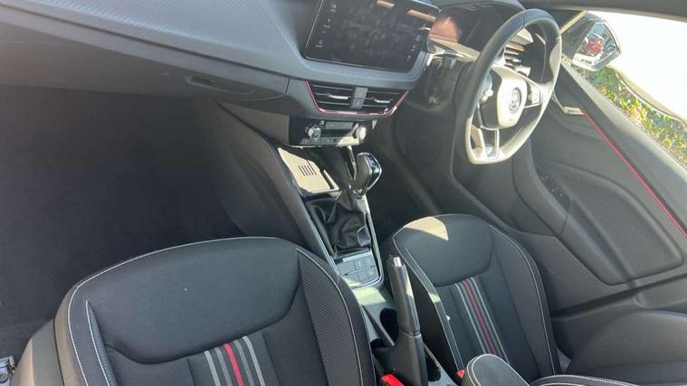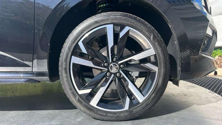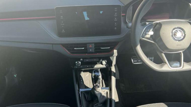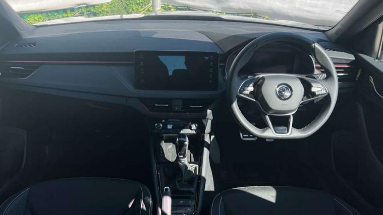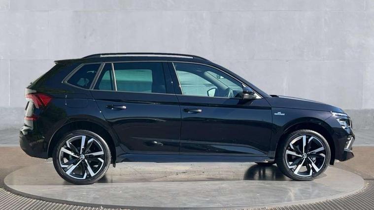 Advanced driver attention and drowsiness monitor, Bluetooth system, E-call, Front assist system, PAS, Rear parking sensors, Rear view camera, Service indicator, Speed limiter, Traffic sign recognition, Virtual cockpit with 10.25" display, Voice control system, Wireless smartlink, 4 USB C ports, 8 Speakers, 9.2" Skoda navigation display, DAB Digital radio, Auto dimming rear view mirror, Automatic headlight control with coming home and leaving home feature, Black door mirrors, Black radiator grille, Black rear diffuser, Black roof spoiler, Body colour bumpers, Body colour door handles, Boot lettering in black, Extended tailgate glass, Front and rear electric windows, Heated rear window, LED daytime running lights, LED high beam, LED low beam, LED third brake light, Light sensors, Monte carlo plaque, Panoramic sunroof with black roof rails, Privacy glass, Rear side wing doors, Rear wiper, Ticket holder inside windscreen, 12V socket in luggage compartment, 3 seat bench in 2nd row, Aluminium pedals, Ambient lighting in white/red, Art leather carbon decor inserts, Art leather carbon door inserts, Black roof lining, Cargo elements, Chrome inner door handles, Driver and passenger sun visors with vanity mirror, Dual zone climate control, Front and rear roof lights, Front centre armrest, Front head restraints, Glove compartment with illumination, Height adjustable driver seat, Height adjustable front passenger seat, Ice scraper, Inner circulation control with pollen filter, ISOFIX on front passenger seat, Isofix preparation for back seats, Leather gearknob and handbrake lever, Manual lumbar support for front seats, Monte Carlo cloth upholstery, Net package and top tether hooks in boot space, Net under rear shelf, Pocket on the back of both front seats include mobile phone pockets, Rake/reach adjustable steering wheel, Reading lights, Rear centre armrests, Red hotstamping, Single front passenger seat, Sports seats, Textile floor mats, Third rear headrest, Top tether for front passenger seat, Umbrella in driver's door, Light and view plus package - Kamiq, 3x3 point rear seatbelts, Airbags - driver and front passenger, Disc brakes, ESP, Extended and predictive pedestrian/cyclist protection, Front passenger airbag deactivation switch, Front side airbags with curtain airbags, Hill hold control, Manual leather parking brake, Manual rear child locks, One tone horn, Seatbelt reminder for driver an co-driver, Traction control, Tyre pressure monitor, Anti-theft alarm system with interior monitoring, backup horn, towing protection and remote central locking with SAFE system, Anti-theft wheel bolts, Electronic engine immobilizer, 18" Ursa black diamond cut alloy wheels,