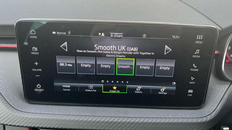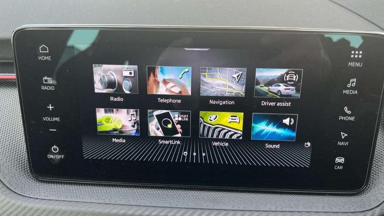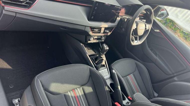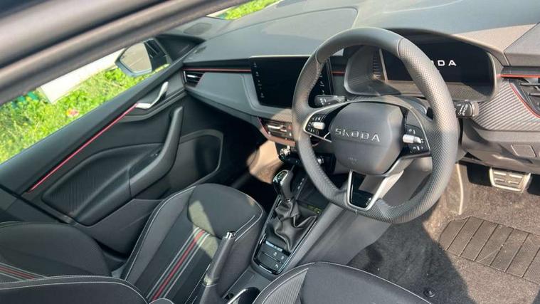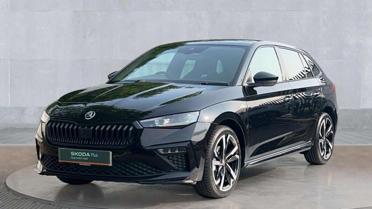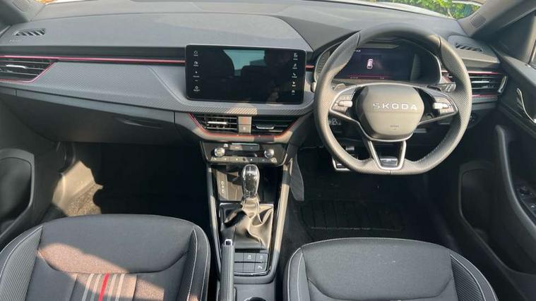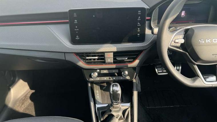 Advanced driver attention and drowsiness monitor, Bluetooth, e-Call (emergency call), Front assist system, PAS, Rear parking sensors, Rear view camera, Speed limiter, Tailgate, Traffic sign recognition, Virtual Cockpit - 10.25" digital display, Voice control system, Wireless smartlink, 4 USB C ports, 8 Speakers, 9.2" Skoda navigation display, DAB radio, Auto dimming rear view mirror, Automatic headlamp activation with Coming home and Leaving home feature, Automatic high/low beam, Automatic intermittent wipers, Black door mirrors, Black lettering on boot lid, Black radiator grille, Black rear diffuser, Black roof spoiler, Body colour bumpers, Body colour door handles, Chrome moulding around grille, Extended tailgate glass, Front and rear electric windows, Heated rear window, LED 3rd brake light, LED brake lights, LED daytime running lights, LED high beam, LED low beam, Light sensors, Monte carlo plaque, Panoramic glass roof, Privacy glass, Rear LED fog light, Rear side wing doors, Rear wiper, Tinted windows, Unique dark chrome design logo on alloy wheels, 12V socket in luggage compartment, 3 seat bench in 2nd row, Aluminium pedals, Ambient lighting in white/red, Black / White armrest stitching, Black ceiling, Black roof headlining, Cargo elements, Chrome inner door handles, Door inserts in art.leather carbon, Driver and passenger sun visors with vanity mirror, Dual zone climate control, Front and rear roof lights, Front centre armrest, Front head restraints, Height adjustable driver seat, Height adjustable passenger seat, Ice scraper, Illuminated glove compartment, Inner circulation control with pollen filter, ISOFIX for front passenger seat, Isofix preparation for back seats, Leather gearknob and handbrake lever, Luggage net under rear parcel shelf, Manual lumbar support for front seats, Monte Carlo cloth upholstery, Net package and top tether hooks in boot space, Pocket on the back of both front seats, incl. mobile phone pockets, Rear centre armrest, Red hotstamping, Single front passenger seat, Skoda lettering on steering wheel, Sport seats, Textile floor mats, Third rear headrest, Ticket holder, Top tether for front passenger seat, Umbrella in driver's door, Light and view plus pack - Scala, 3x3 point rear seatbelts, ABS, Child locks, Curtain airbags and front side airbags, Disc brakes, Driver and front passenger airbags, ESP, Hill hold control, Manual leather parking brake, One tone horn, Passenger airbag switch off function, Seatbelt reminder for driver and front passenger, Tyre pressure monitoring system, Anti theft alarm system with interior monitoring, backup horn and towing protection, Anti-theft wheel bolts, Remote central locking with 2 remote folding keys, SAFE function for remote central locking, Carbon effect decorative inserts, 18" Ursa black diamond cut alloy wheels,