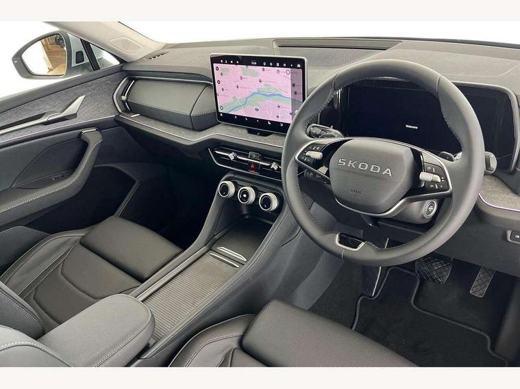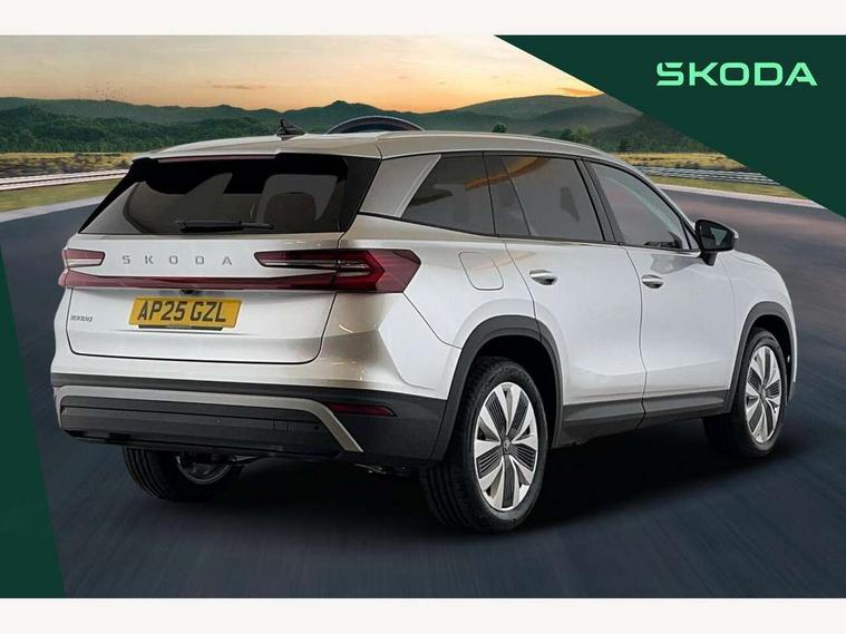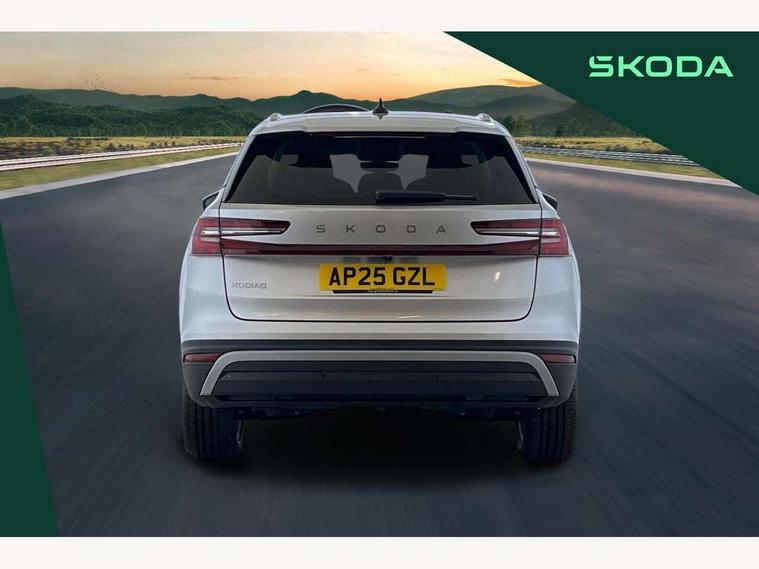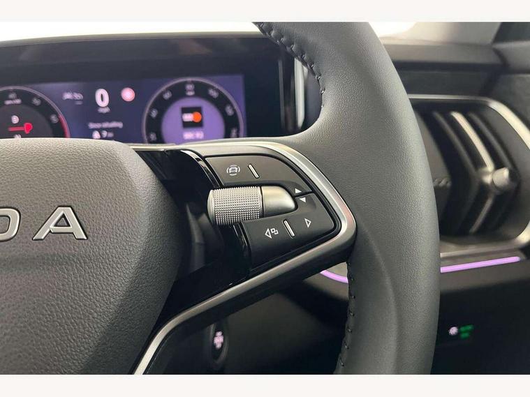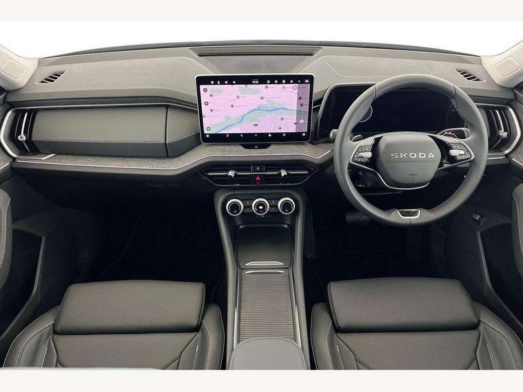 13" satellite navigation touchscreen display, Blind spot detection with door exit warning, Bluetooth system, ChatGPT functionality, Driver alert - Fatigue and drowsiness monitor, Dry display cleaner, Emergency call, Front and rear parking sensors, Front cross traffic assist, Lane assist, PAS, Rear traffic assist, Tailgate unlocking from outside, Traffic sign recognition, USB C Port x 2 in front centre console, Virtual Cockpit - 10.25" digital display, Voice control system, Wireless charging for two smartphones (15W) with cooling function, Wireless SmartLink for Apple CarPlay and Android Auto, Stop/start function, 2x USB-C in the rear, DAB Digital radio, Aero front windscreen wipers with intermittent function, Auto dimming rear view mirror, AWL (all weather lighting) and all weather light with cornering function, Black wheel arch surrounds, Body colour bumpers, Body colour door mirrors and handles, Cornering light and poor weather light, Electric folding /adjustable/separted heated/folding door mirrors, auto dimming with boarding sports and memory function, Electric front and rear windows, Exterior black decorative trims, Heat insulating glass in windshield, Heated rear window, Ice scraper in fuel tank cap, Invisible tailpipe, LED daytime running lights, LED third brake light in rear spoiler, Light assistant with automatic headlight control and coming home feature, Logo projection in door mirrors, Privacy glass, Rear roof spoiler, Rear side wing doors, Rear window wiper, Red decorative strip between rear LED lights, Safety reflectors on front and rear doors, Unique dark chrome design logo on alloy wheels, Window control switches with black trim, Windscreen wipers with rain sensor, Without engine designation, 1.5l bottle holder points in all door, 1x centre rear reading light, 2 seat bench in 3rd row, 3 configurable smart dials with 32mm coloured display, 3 seat bench in 2nd row, 4 foldable roof handles with rear coat hooks, Ambient interior lighting - Dashboard, front-door stowage compartments, front and rear door panels and footwell lighting, Automatic gear selector on steering column, Chrome interior door handles, Driver/front passenger reading lights, Fabric headlining, Fixed bench 40:60:40 split folding backrests, Front and rear floor mats, Front centre armrest with jumbo box storage compartment, cup holder and 12V socket, Height adjustable front headrests, Isofix child seat fittings in outer middle row rear seats and front passenger with top tether, Manually adjustable steering column, Pollen filter, Rear centre armrest with cupholders, Rear seat boot backrest release, Single front passenger seat, Skoda lettering on steering wheel, Storage pocket including mobile phone pockets on the backs of the front seats, Sunvisors with illuminated vanity mirrors, Three rear height adjustable headrests, Ticket holder on A Pillar, Tri zone climate control, Umbrella in door panel x1 made from sustainable materials, Upper and lower glovebox with card holder and coin compartment, USB C port by rear view mirror for charging only (15W), Exterior styling pack - Kodiaq, Auto door release and activation of warning lights in the event of an accident, Driver and front passenger airbag with knee airbag and front passenger airbag deactivation, Electric child locks, Electronic parking brake, ESC (incl. ABS+EMD+MSR+ASR+EDL+HBA+DSR+RBS+ESBS+MCB+TSA+XDS), Front assist with braking reaction to vehicles, pedestrians and cyclists, Front disc brakes, Fuel cut off safety device, Height adjustable front 3 point seatbelts + pretensioners, Hill hold assist, Junction assist with automatic emergency braking, Rear disc brakes, Safety vest holder in door, Seat belt reminder for all seats, Three point rear seat belts, Two tone horn, Tyre pressure monitor, Anti-theft wheel bolts, Immobiliser, Remote central locking with 2 keys,